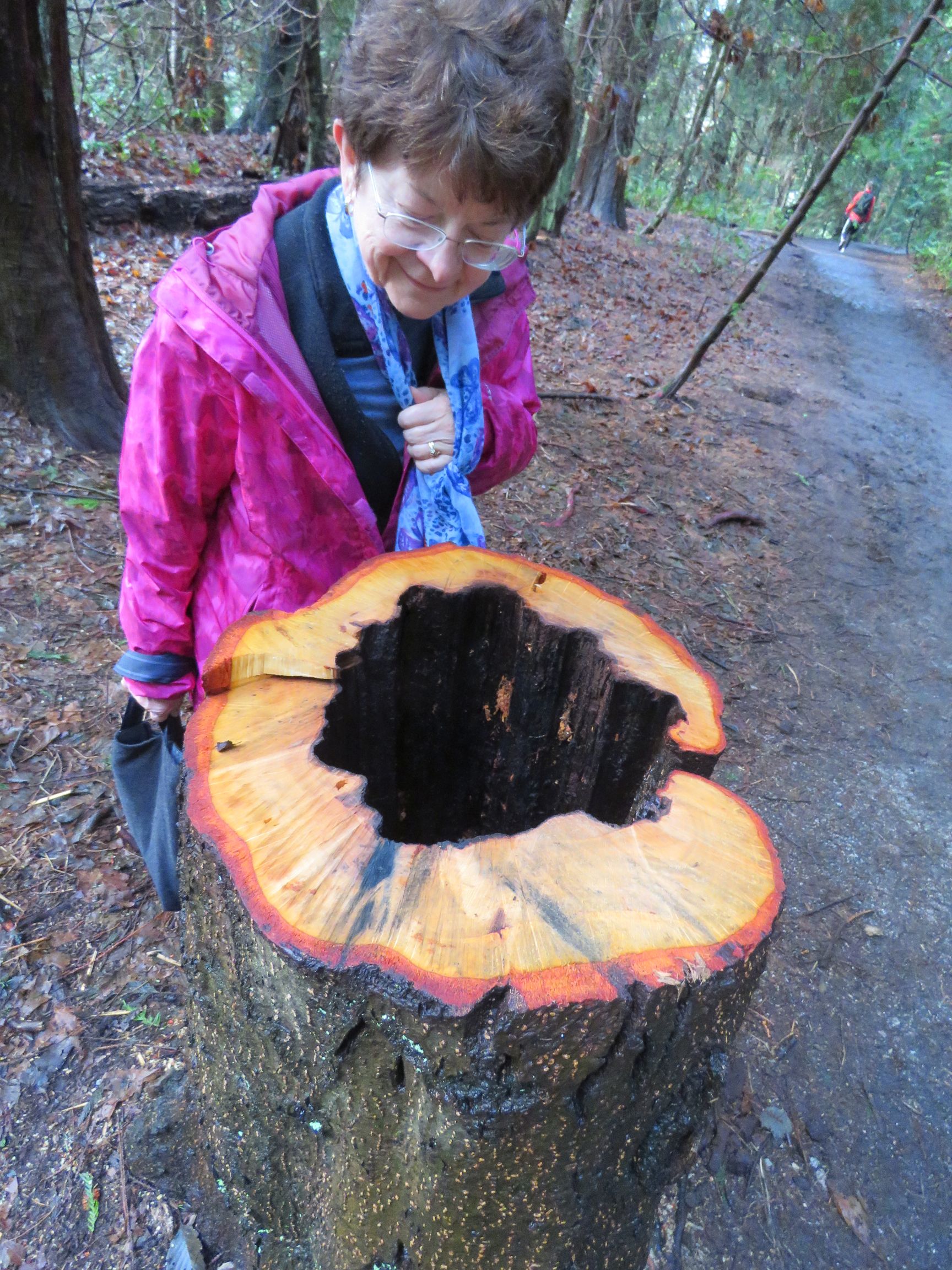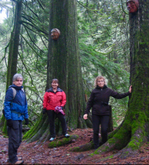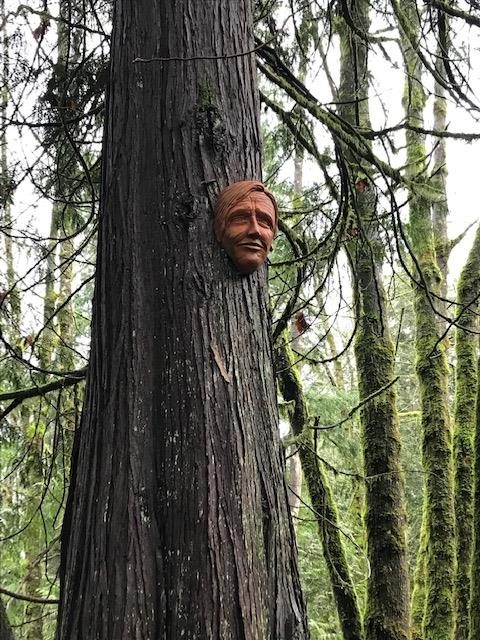 We ventured out to Harrison to seek the Spirit Trail, which is situated 2 km outside the village. The overhead conditions were cloudy and damp. Carolyn suggested this walk as a local artist had placed clay faces onto the trees. Personally I found it rather spooky, with them watching our every move..!
