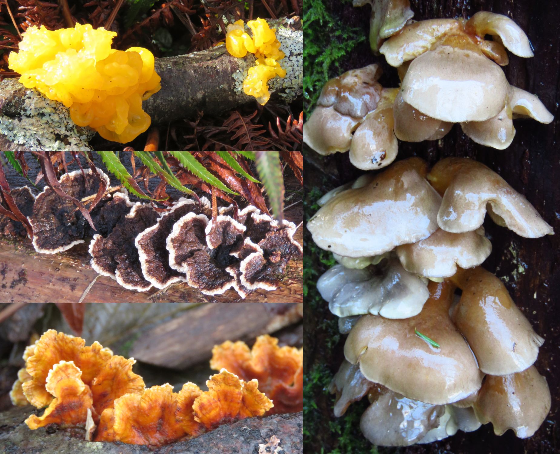 Pacific Spirit provides a good variety of both woods and terrain. The section south of Chancellor is a swamp area and mostly deciduous trees. There are also a number of holly bushes. The north side is more rugged, with several canyons cutting through it, and still a few very large trees about. We observed a good variety of fungi along the way. All in all a very satisfying (and dry) outing.