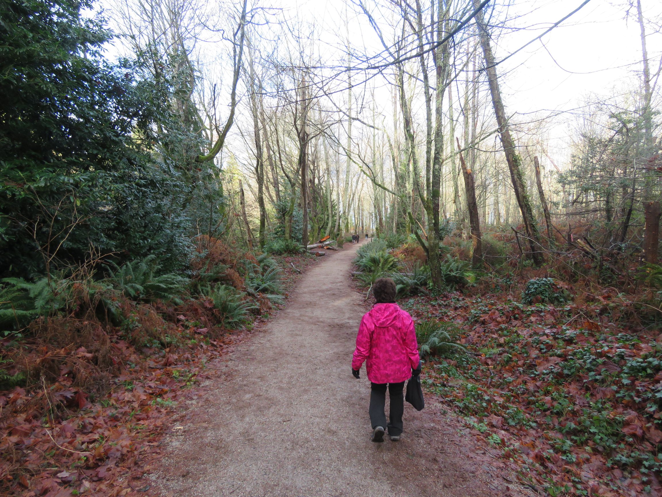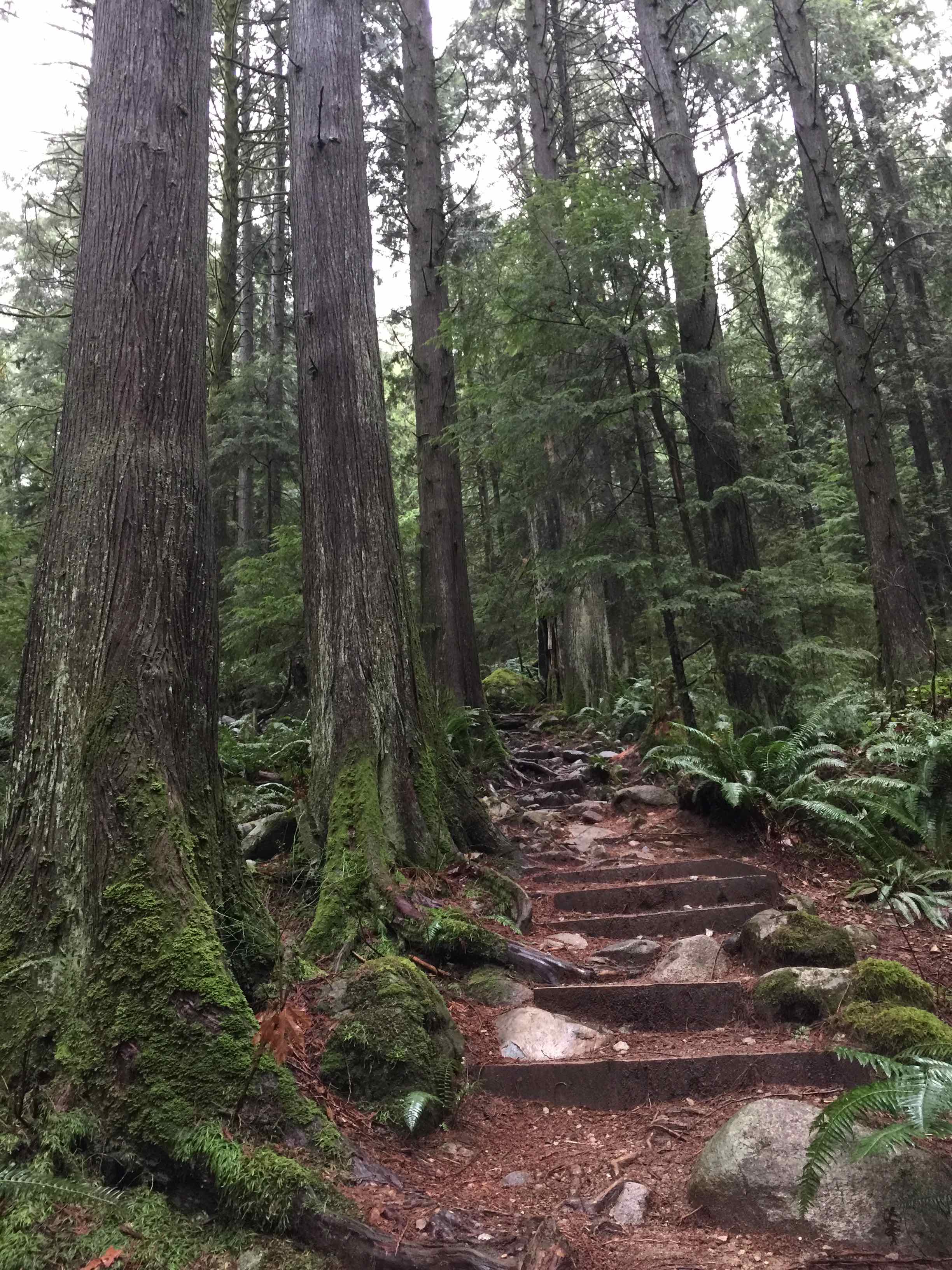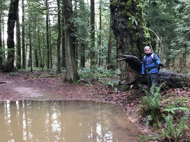 I went for a forest walk through Pacific Spirit Park. The hardest part was deciding what to wear, since the weather report online said it should be OK, but the weather out the window was a downpour at 10:00 am. I took rain gear, but didn’t need it. It was very lightly raining when I started but got better as I went on.