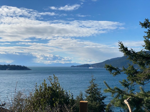 Continuing on the Whyte Lake trail, we crossed the old Highway 1 bridge over Nelson Creek and headed downhill to the Seaview Walk. This is a scenic stroll with striking water views on a repurposed railway line that more or less parallels Marine Drive (experienced by a number of Loopers in 2019: see https://transcanadatrail2019.home.blog/2019/01/06/2018-january-6-horseshoe-bay-to-stearman-beach/). There were more people and dogs on the return trip but no wildlife.