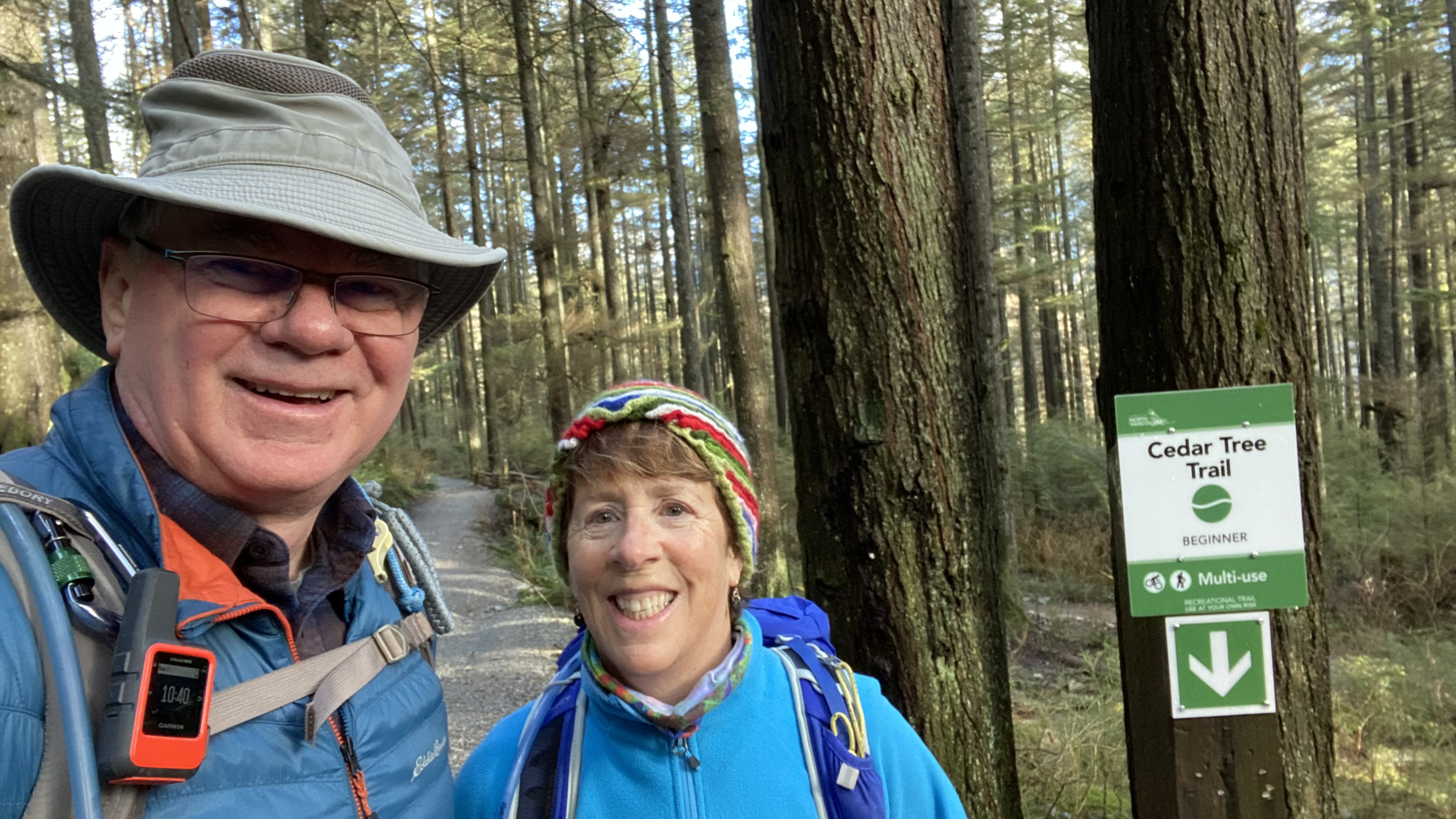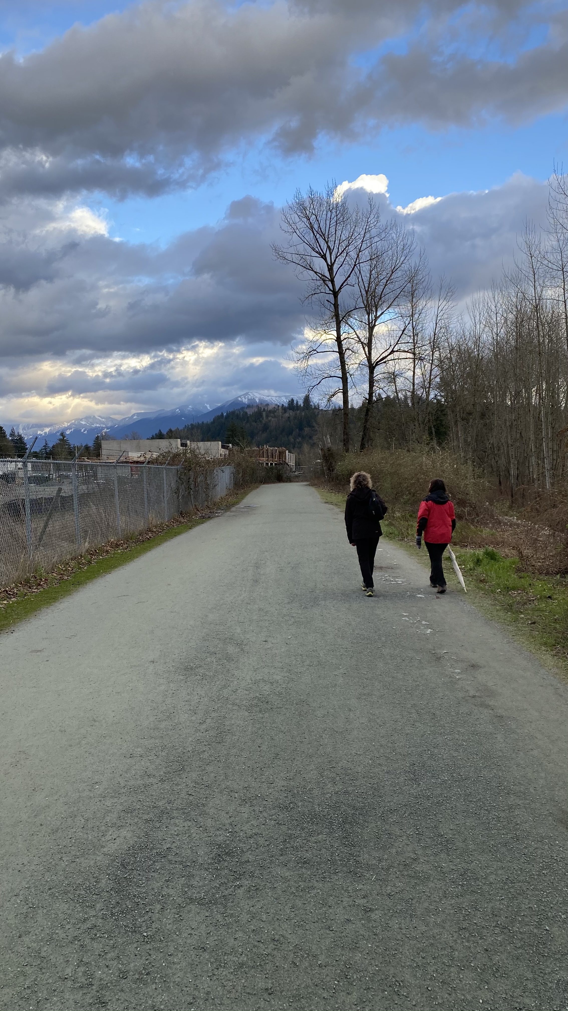 It seems, in fact, that this February’s walks set what is possibly a new numbers record: more than 26 Loopers and their confrères walked “Together-Apart”, in 13 separate expeditions, in parks and on shorelines scattered all over the Lower Mainland, ranging from the North Shore to south Surrey, and from the Vedder River in the east, to the Ladner dikes in the west. Later that day, many of us gathered virtually, via Zoom, to share our stories (see above). Here, in approximately random order, are illustrated accounts of our outings. Karina starts off, since she has Special News to share!