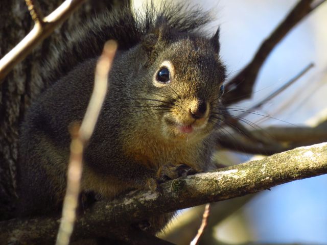 The first part of the Baden Powell is uphill and with delightful forested sections, particularly attractive with sun dappling the trees. We turned off at the Whyte Lake junction and took the side trip to Whyte Lake itself. There was ice at the edges of the lake, which might explain why nobody was swimming.