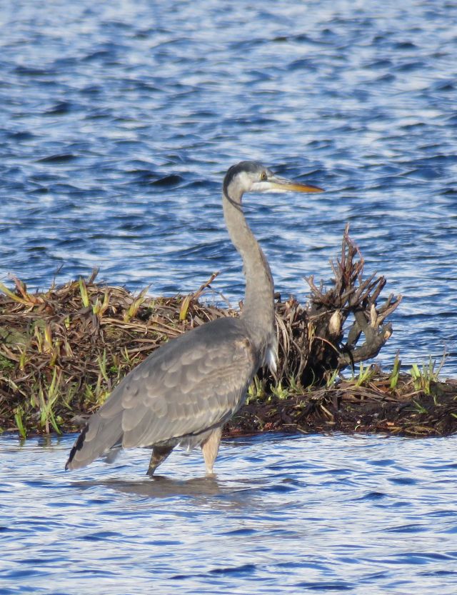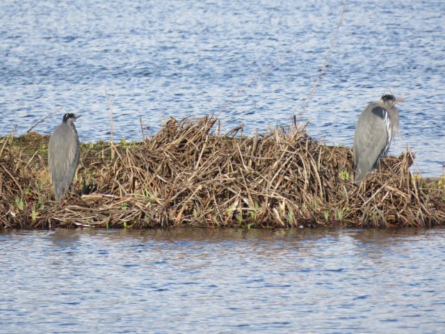 Pressing on, we stopped for a mid-point selfie on the Cariboo dam at the east end of the lake before heading west down the south side. The south side was a little less busy than the north, and a little more rustic. About 2/3 of the way along we ran into a fellow Looper, Janet Smith, who was headed the other way with some friends. This was the second month in a row our paths have crossed! Pressing on, we found a spot with good views across the lake and over to the north shore mountains. I finally spotted 3 herons on a small island in the lake, having despaired to that point at not seeing any – the day was saved!