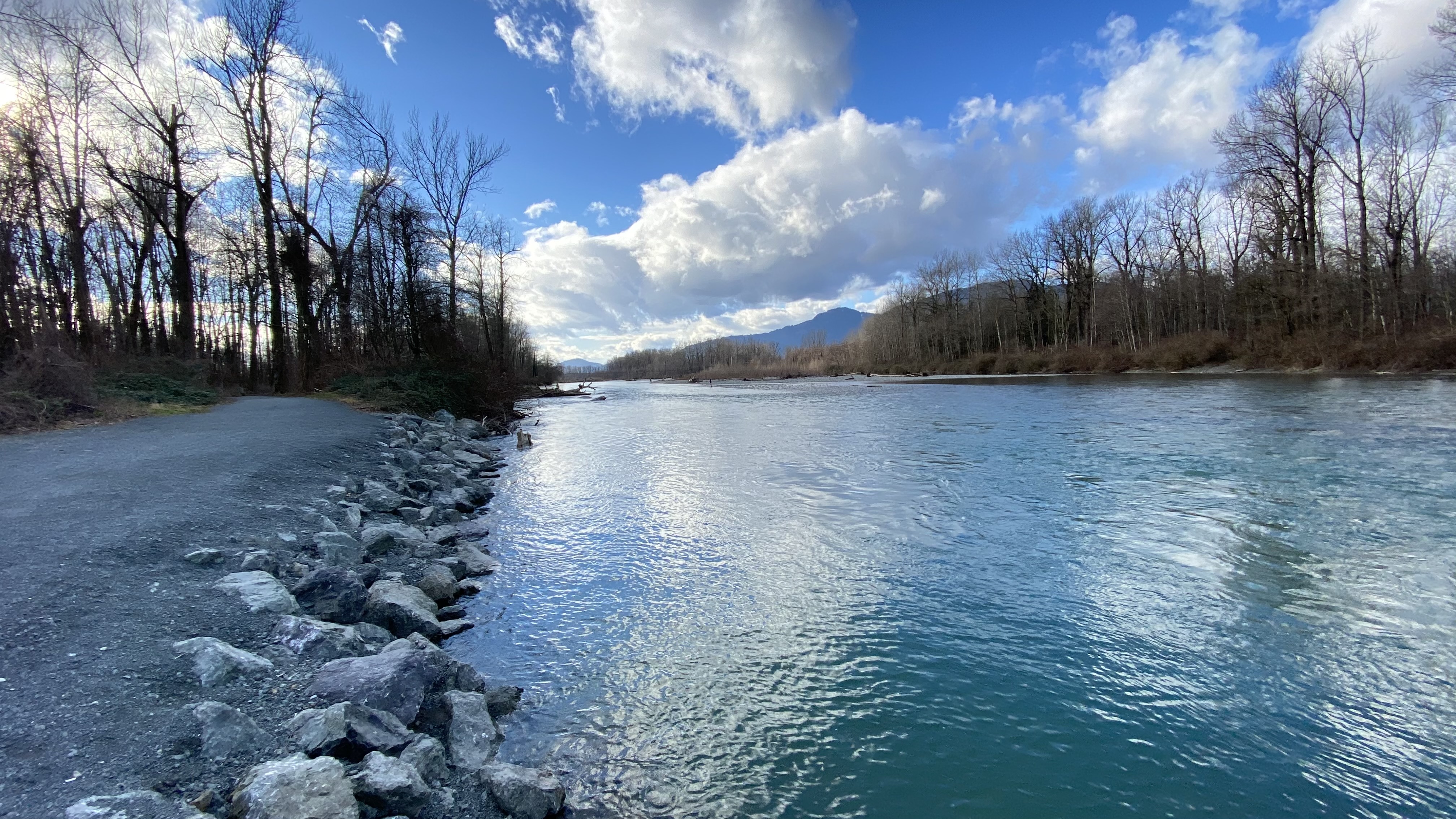 A bright and breezy excursion along the Vedder River trail in Chilliwack. It was a cold day for a walk, but Anne and Carolyn braved the elements. First stop coffee, then off following the river. A few people were fishing the waters, however we did not see anyone catch any… Walked from the Vedder Road bridge to the rail crossing from the south side, then back tracking the north side.