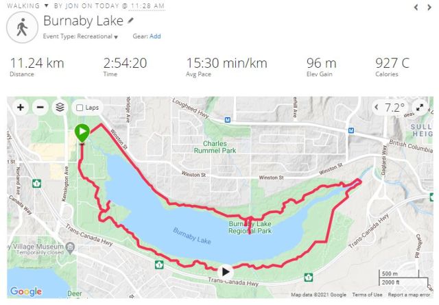 I did a 5km walk from Safeway at Parkgate, up Indian River Rd, onto some paved then forest/bike trails. Meandering a bit and headed into the Cove for tea. Unfortunately, but not unexpected, it was too busy, so I headed home from there. The End