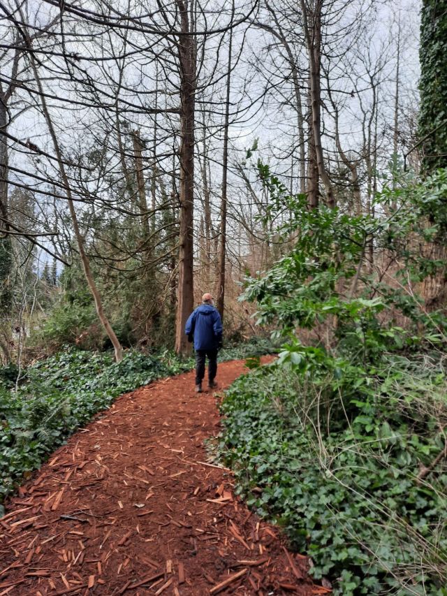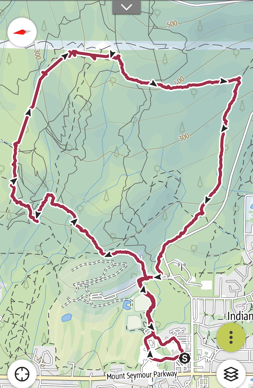 Angela has a knee problem, so the route we chose was in two parts. We walked half the distance together — a 6 km loop rooted at Hill Road and made up of various pieces of Mary Kirk Access Trail, the Baden Powell Trail and Bridle Path — and Dave then walked the second part on trails from Hill Road to Deep Cove.
