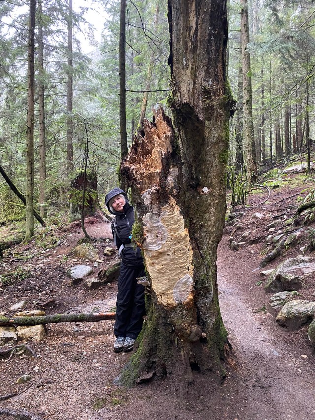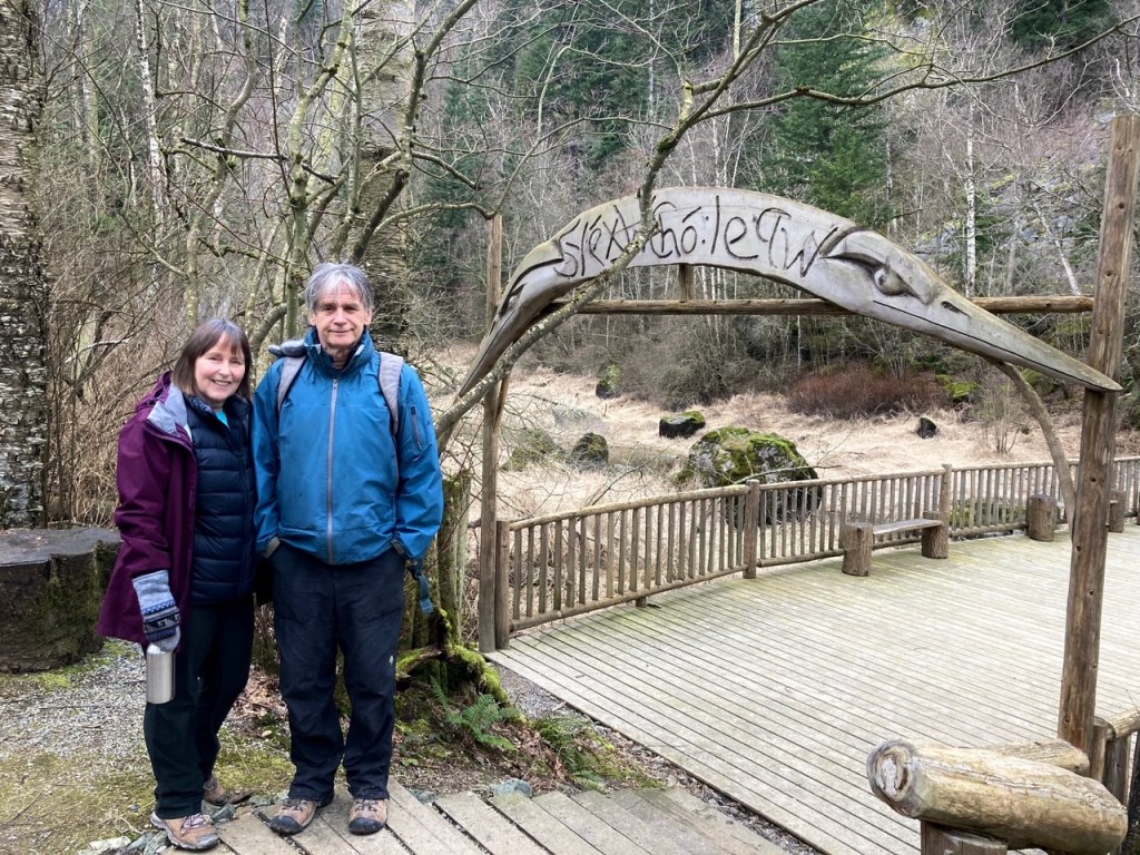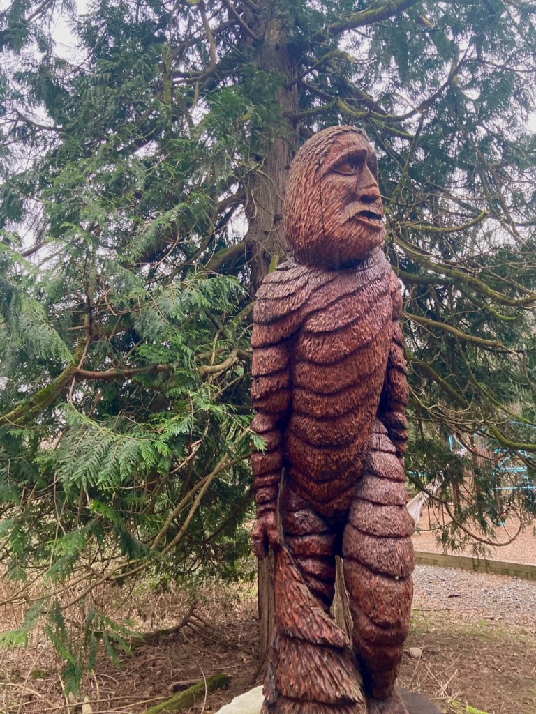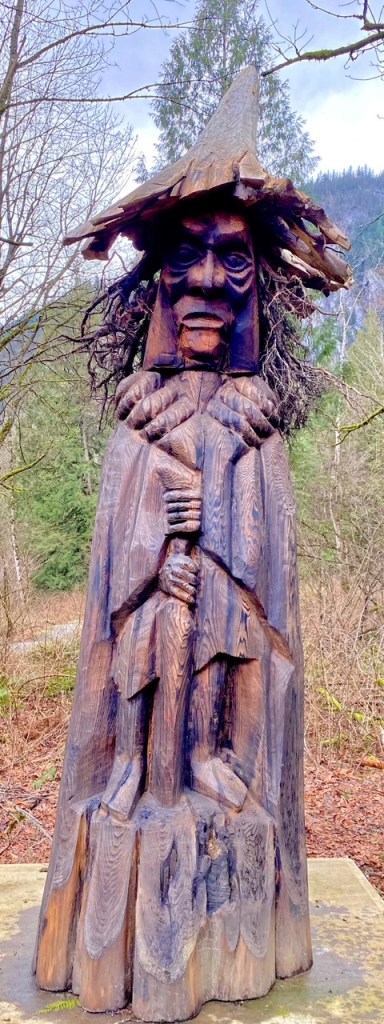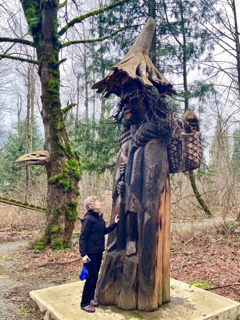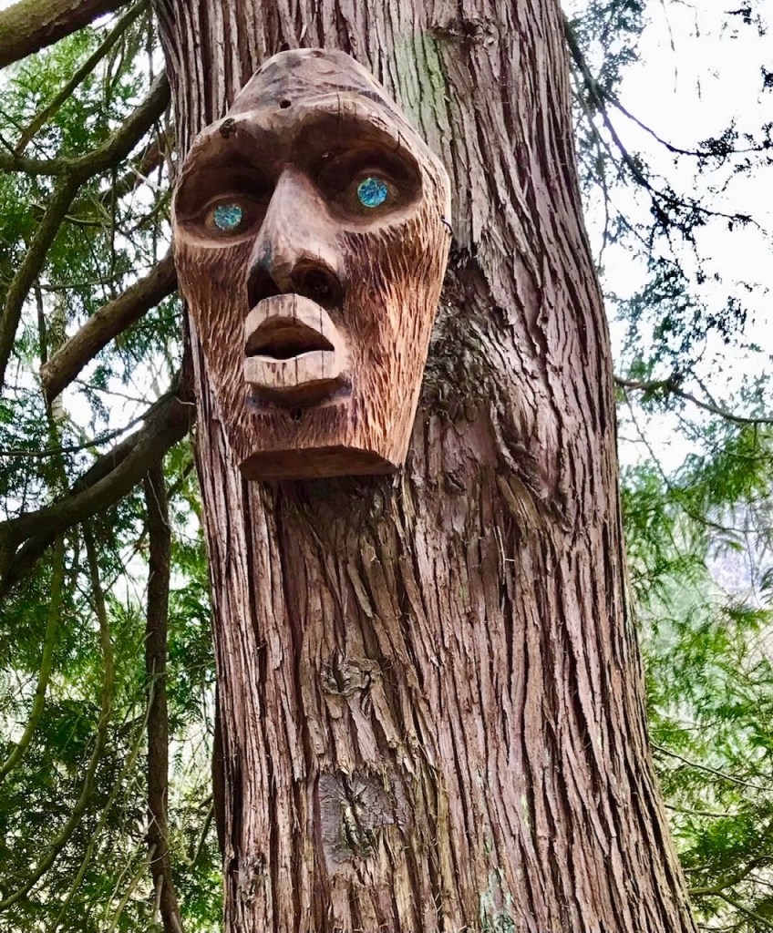 and amazingly carved trees, whose spirits have been brought to life as Stolo legends, along the winding paths. Many times we looked over our shoulders as we passed by the watching eyes…