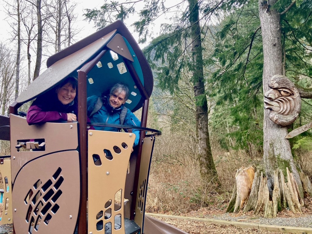 And as we scuttled away from her, the sky brightened once again and we discovered we are never too ‘mature’ to enjoy the whimsy of a playground!