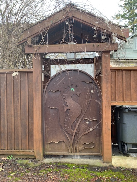 We had fish and chips for lunch, half-way, and then made our way back to the car more inland. We walked down an interesting alley where a crow looked down on us, and a seahorse met us along the way. We then peeked into great old Camp Alexandra – to relive summer camp memories.