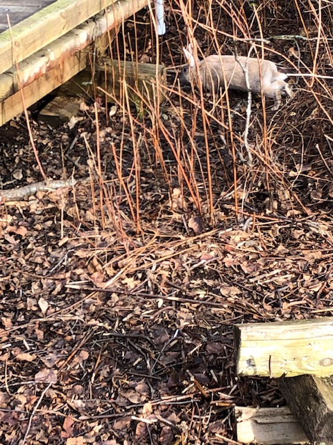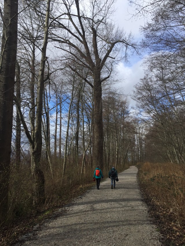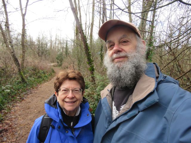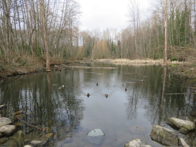This month we went to the Richmond Nature Park, just off Westminster Highway. The weather was sunny and spring is in the air. We walked all the trails – Bog Forest Trail, Quaking Trail, the Time Trail and the Pond Trail. Some of the trails close to the Nature House are elevated boardwalk to enable those in strollers and wheelchairs access to nature. Other trails had new bark mulch and occasional mud! We saw lots of birds, several squirrels and a rabbit at a place with lots of bird feeders.