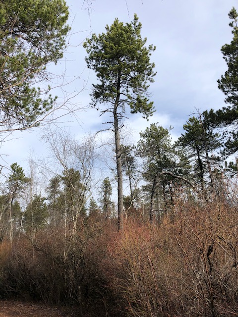 We learned what happened to the area many millennium ago and the impact of the highway on the area when it was built – loss of water. We came across a group of volunteers endeavouring to get rid of invasive blueberry bushes by covering them in black tarp cloth – basically cutting off their light source. The forest is a mix of silver birch trees and Shore Pines. We chose a baby Shore Pine Tree because first and foremost it was easy to photograph and we liked its bonsai shape. A great walk!