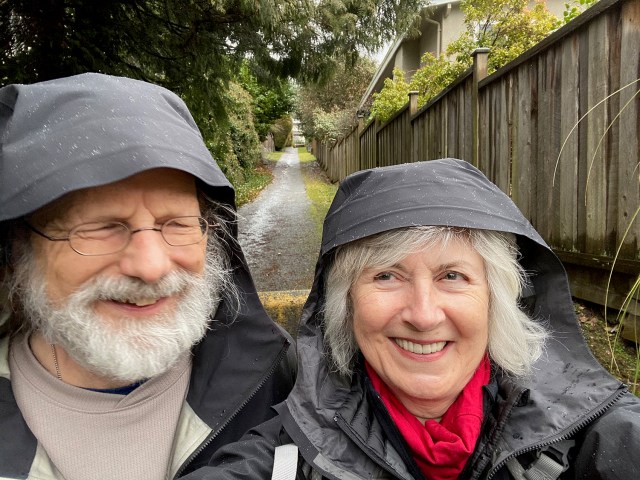 Our walk ended in heavy rain.