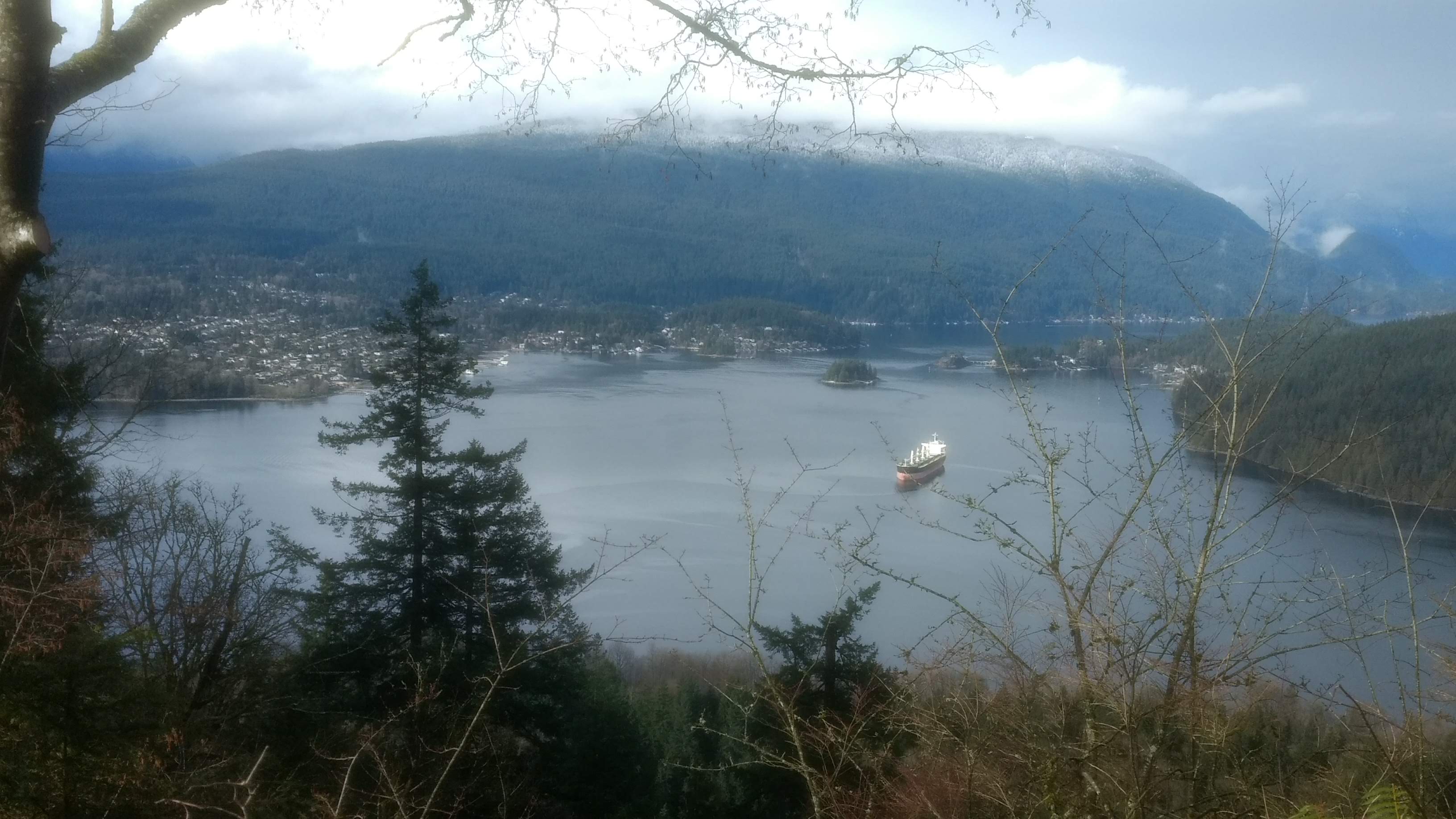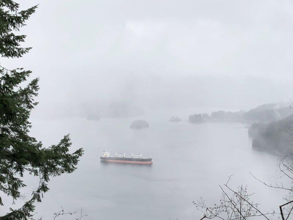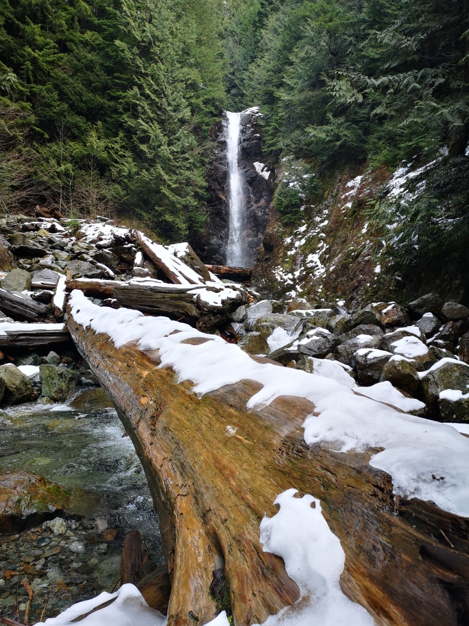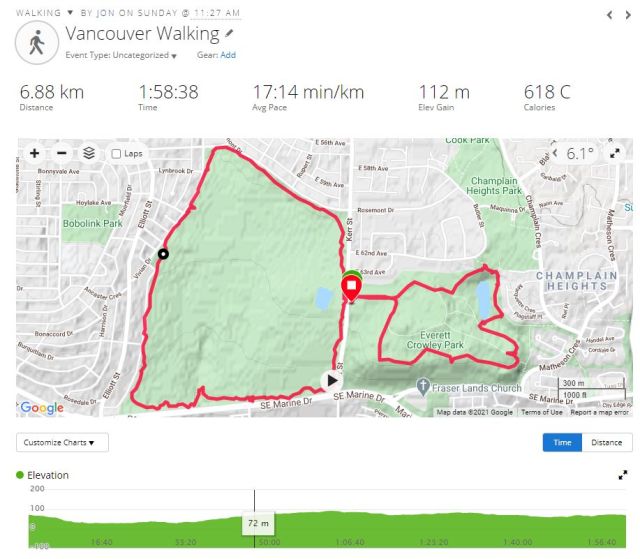 We met up by Horizons Restaurant, then hiked together along the TCT to SFU, and part way around. Then Julie headed back to the car, via the SFU Academic Quadrangle, while I continued on the TCT to Cardiac Hill, through SFU, the park, and back down to the starting point (taking the more direct, less interesting but less slippery bike route) where Julie picked me up.