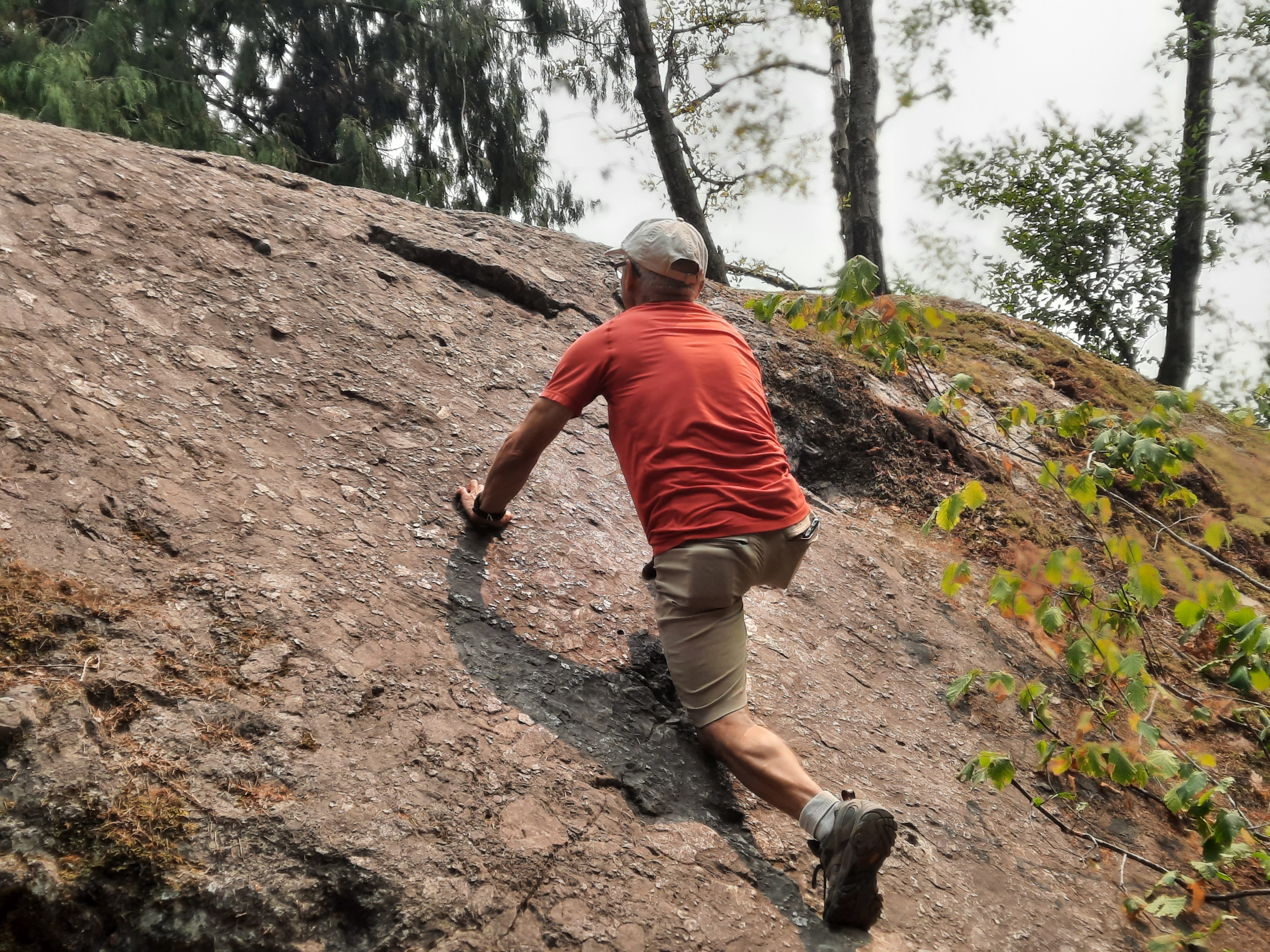 Perhaps the most memorable feature of this park was a large, virtually unscalable rock now nicknamed Mount Improbable, which many of us were tempted to try and ascend. Only one Looper, though, had the fortitude and the strength of character to make it to the top; we are now considering a petition to rename Mount Improbable as Fred’s Peak. A squadron of admiring Loopers assisted Fred in his descent.