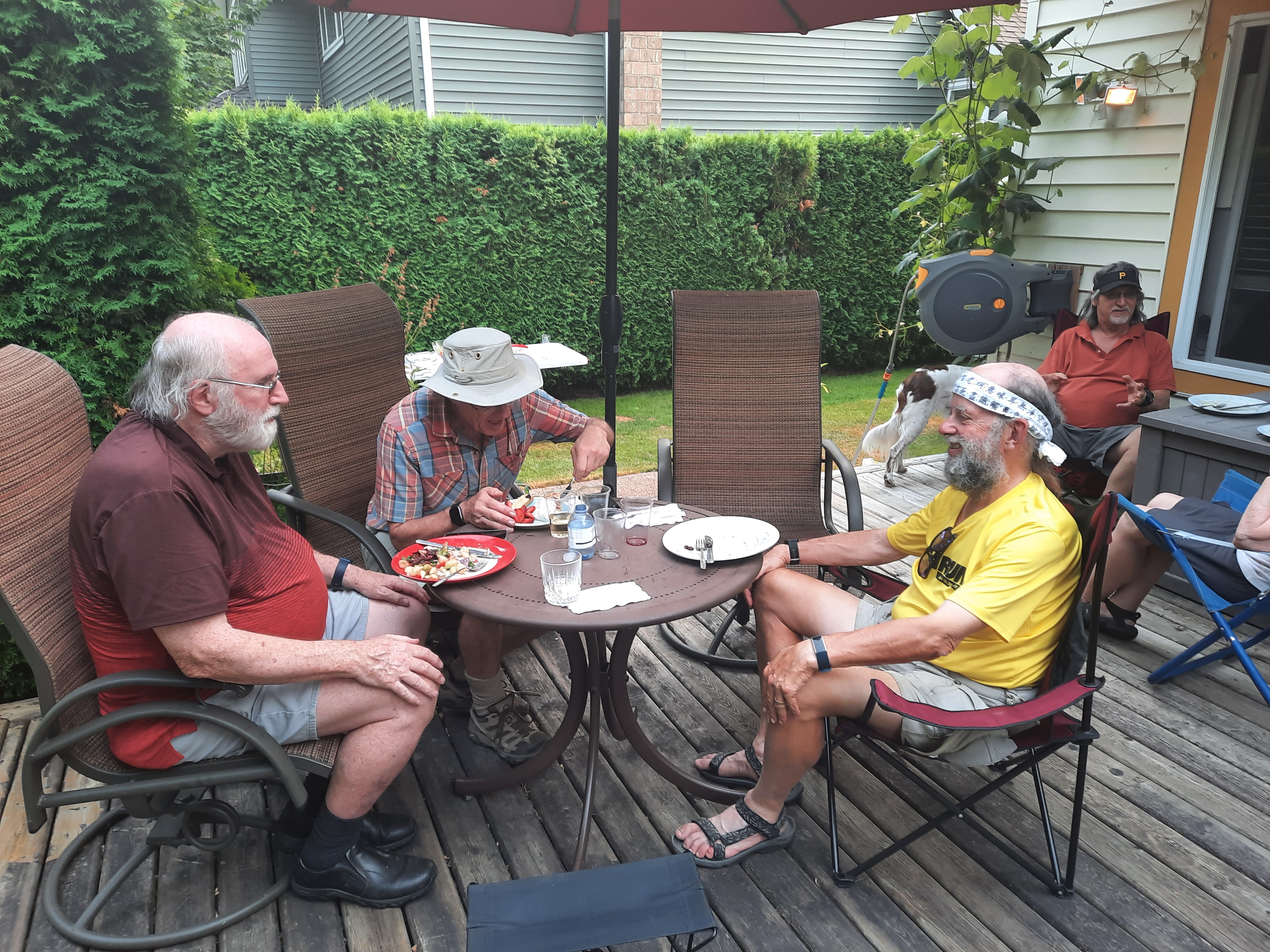 Aldergrove Regional Park was chosen for this month’s walk because its location coordinated nicely with plans for what has become an annual Looper tradition: a post-walk BBQ at the home of Ralph, Tina and Maki. This brave trio once again hosted a splendid pot-luck BBQ in their back yard. Entertainment for the event was again provided by Larrie the Robotic Lawnmower, who worked diligently away at his assigned task while the rest of us relaxed. The famous Samurai Chef Jon once again presided at the grill. A variety of delicious salads, and impossible-to-resist desserts, were contributed by various Loopers to complete the feast. A huge thank you to our hosts, and to all who contributed, and assisted. A good time was had by all!