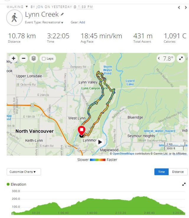 At Twin Falls Bridge we took the trail turning to the right, heading uphill and away from Lynn Creek, leading us deeper into the mystic forest. At a fork in the trail we followed the Baden Powell Trail down, back towards Lynn Creek, before heading uphill once again, eventually emerging from the underbrush at Lillooet Road, where a certain amount of anarchy — and what might be described as “Looper fragmentation” — ensued.