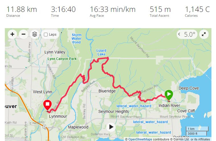 We continued ascending until we met Powerline and then followed that down to Lillooet Road. Some followed the road down to Seymour’s Pub and some walked through the cemetery to pick up cars and thence to the pub.