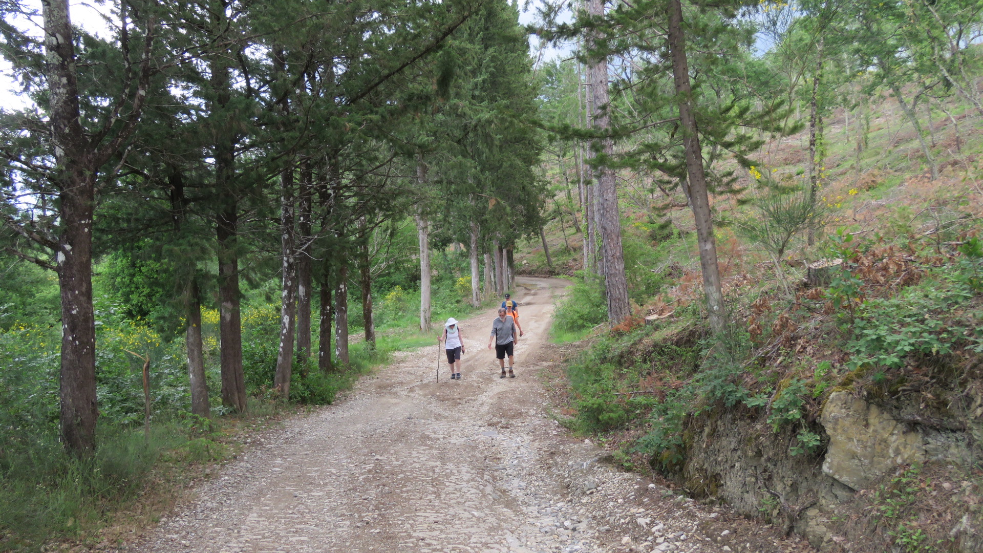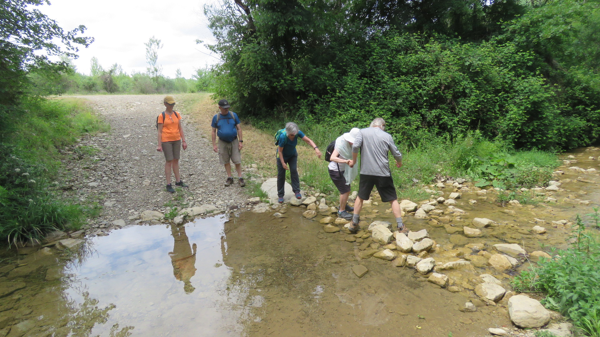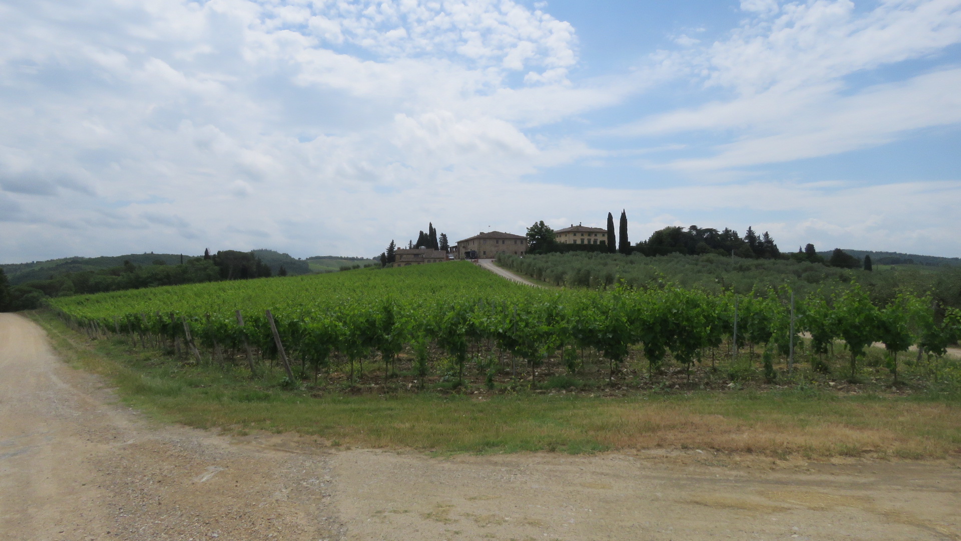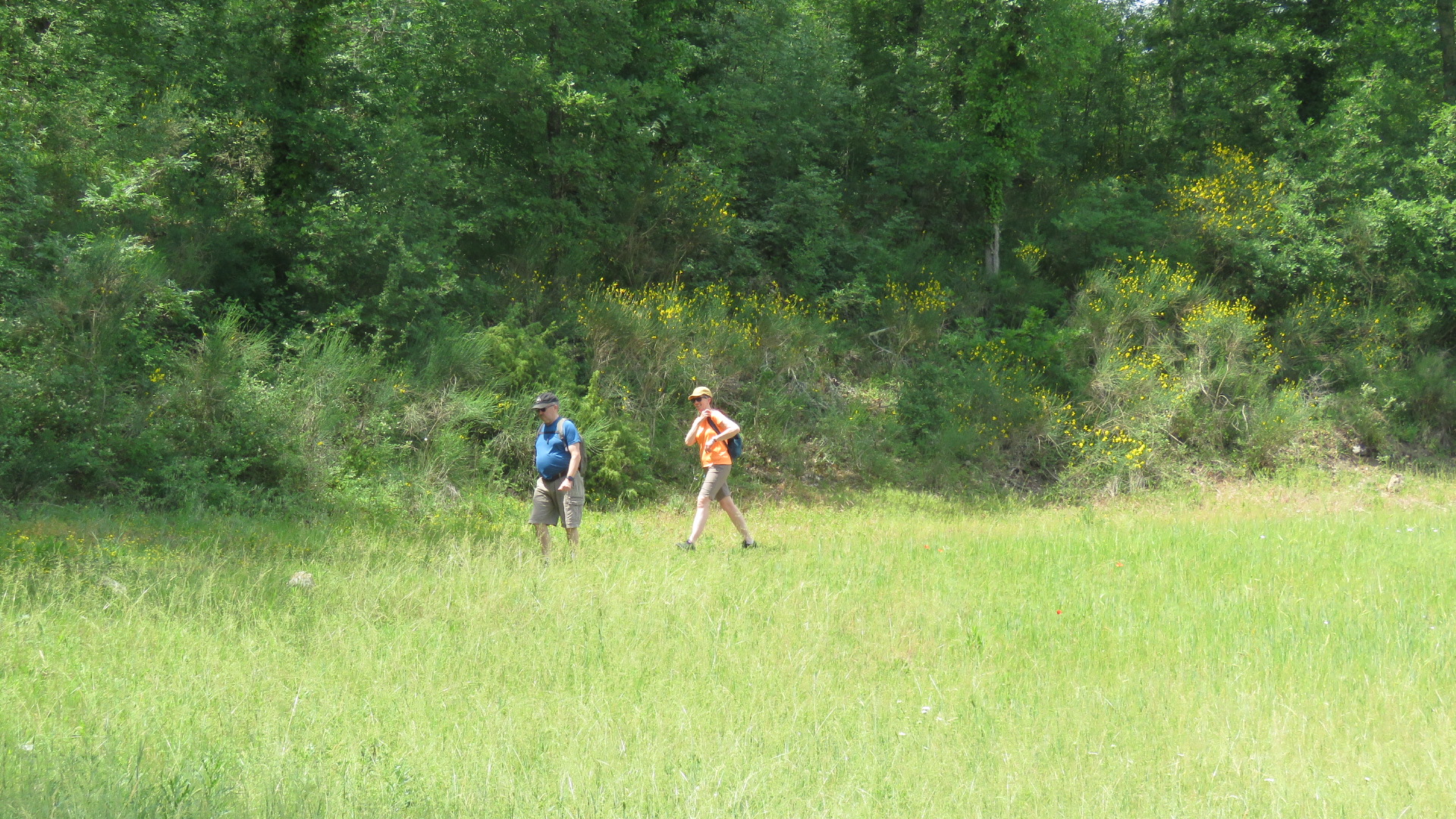 Because we would be all going our separate ways on the official looping Sunday, the Tuscan contingent did our walk early. On May 30, a beautiful sunny day, six Loopers set out from our villa in San Donato. (Two stayed home to mind the fort.) Our route took us uphill past some vineyards and into rolling hills, sometimes along roads and sometimes trails.