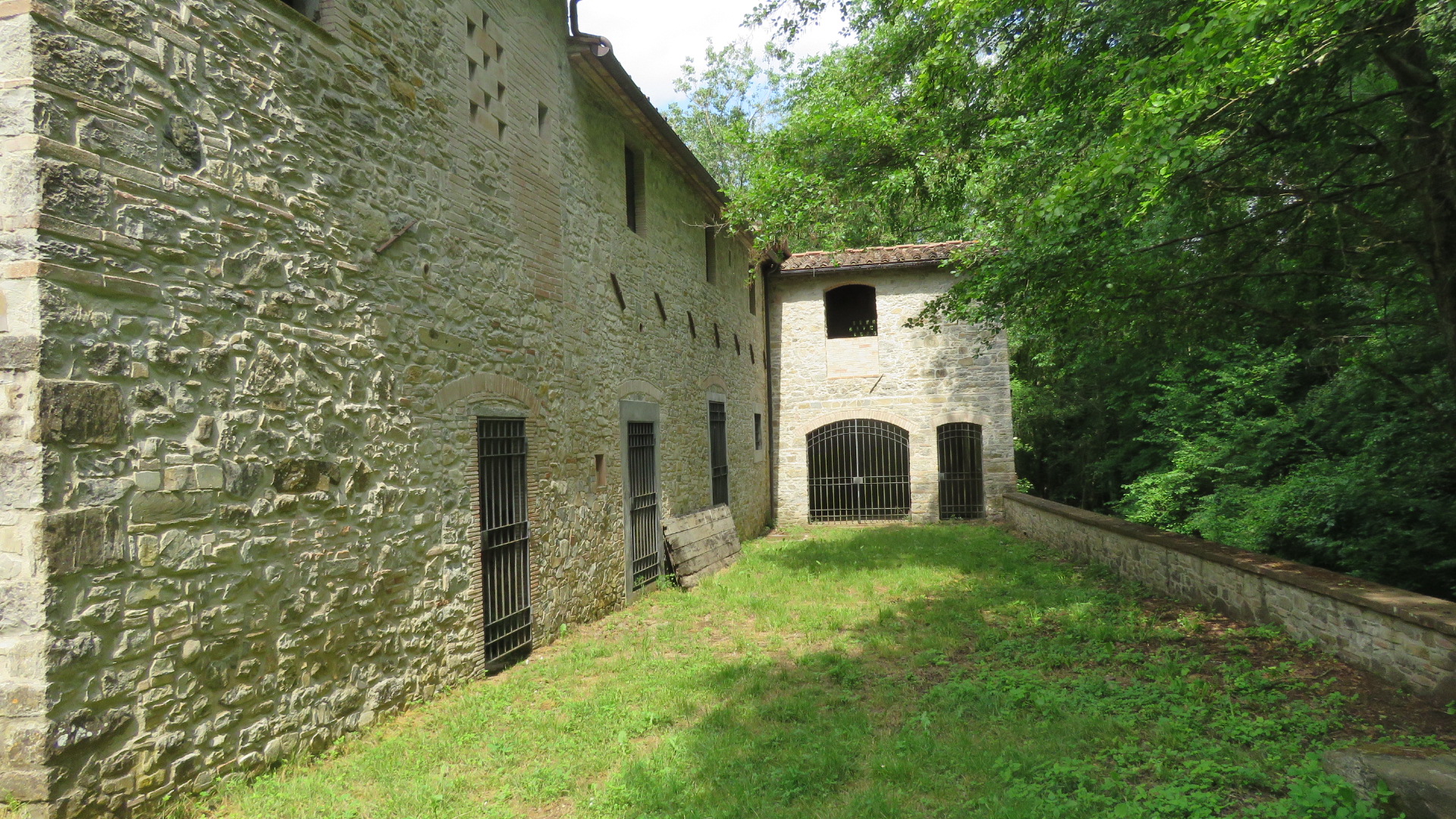 Toward the furthest part of the walk we ascended beside a stream, and knowing we needed to cross, we searched for a good spot. Unable to find an obvious trail, we backtracked a bit and got back on route. On our return home we passed several abandoned buildings including a villa by the stream and a church atop a hill.