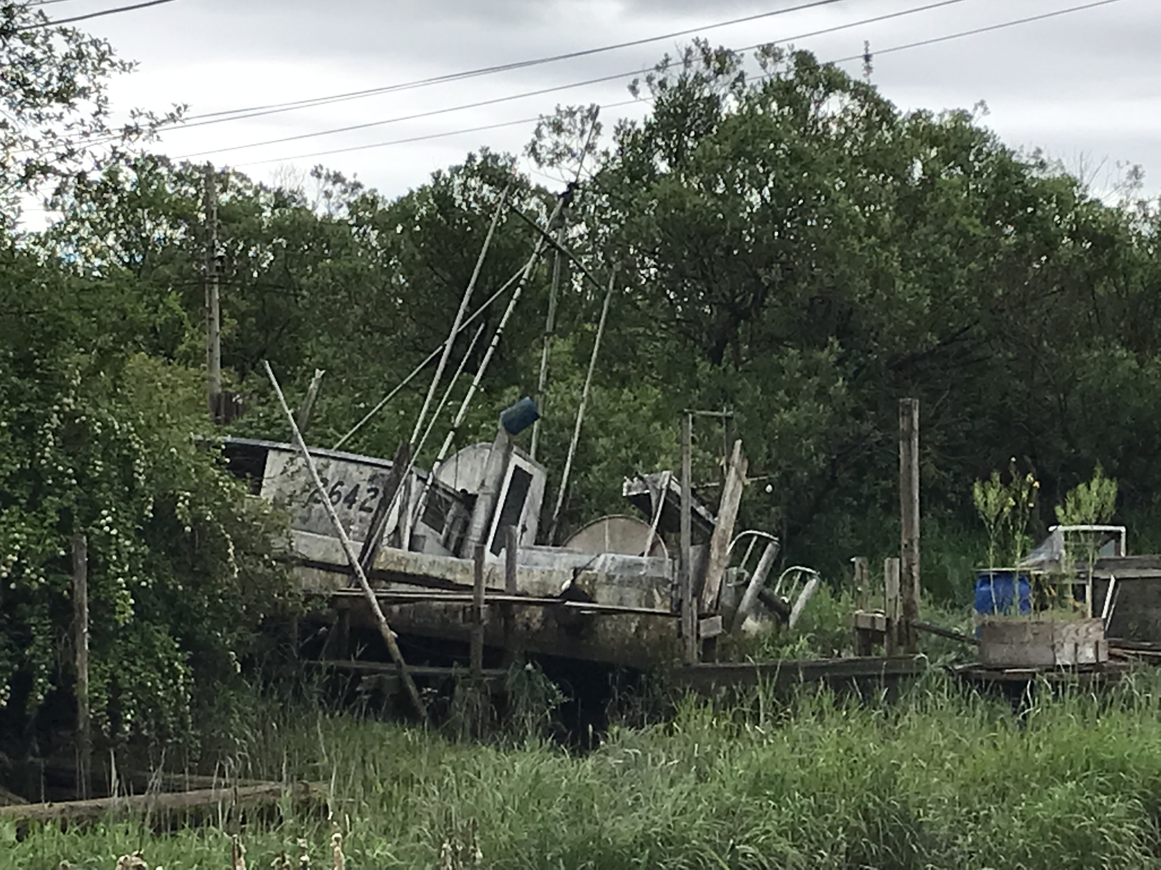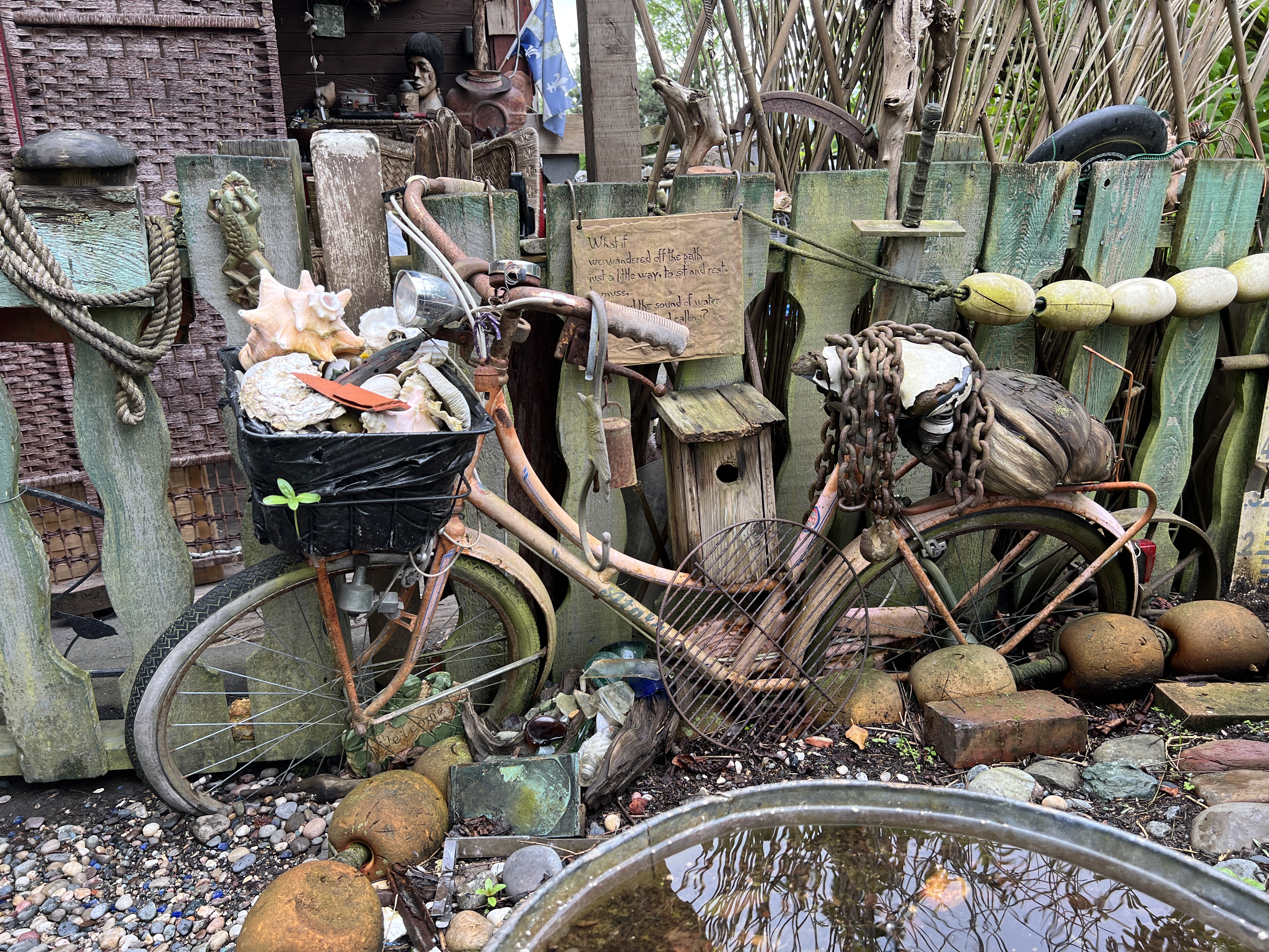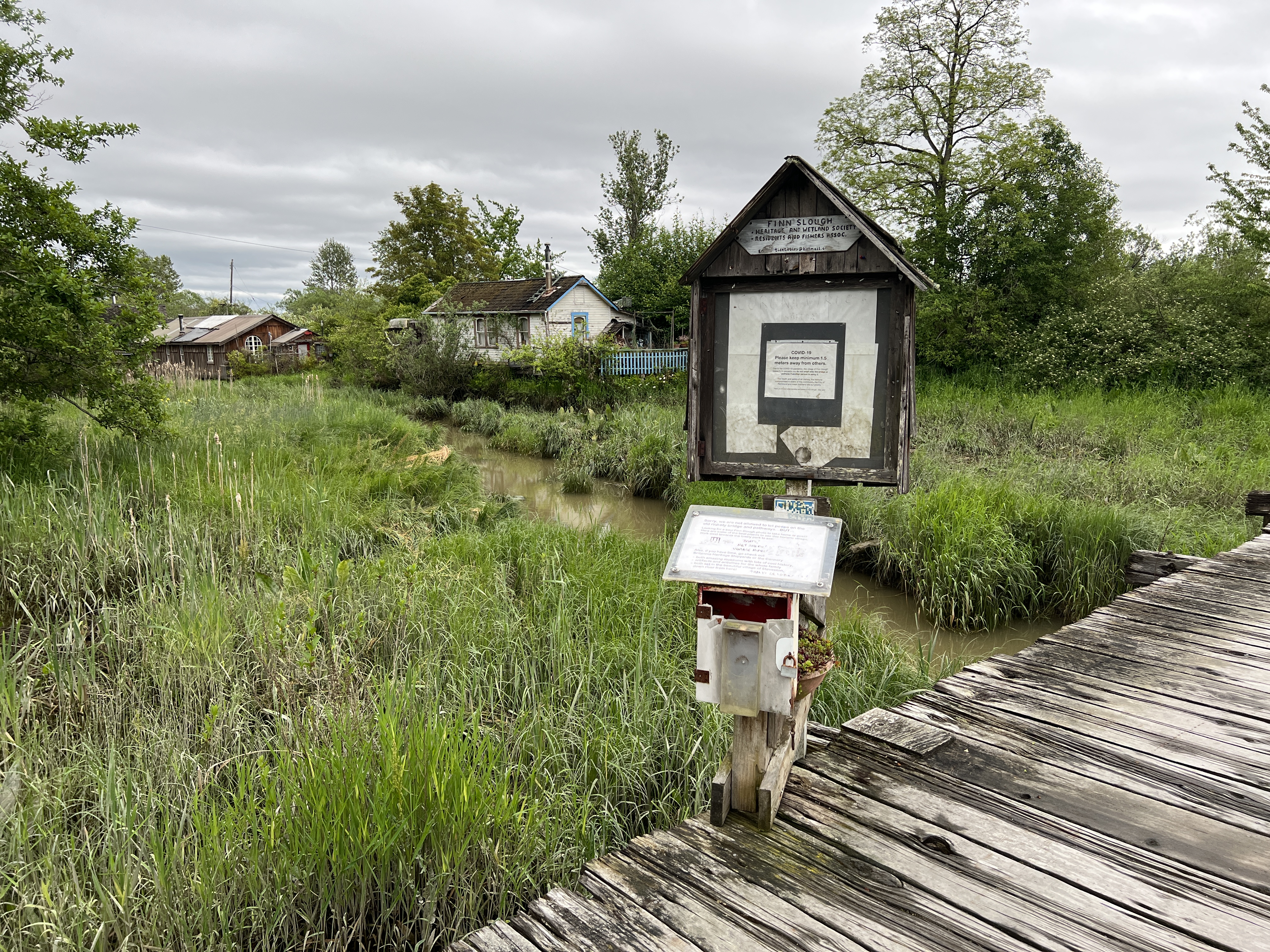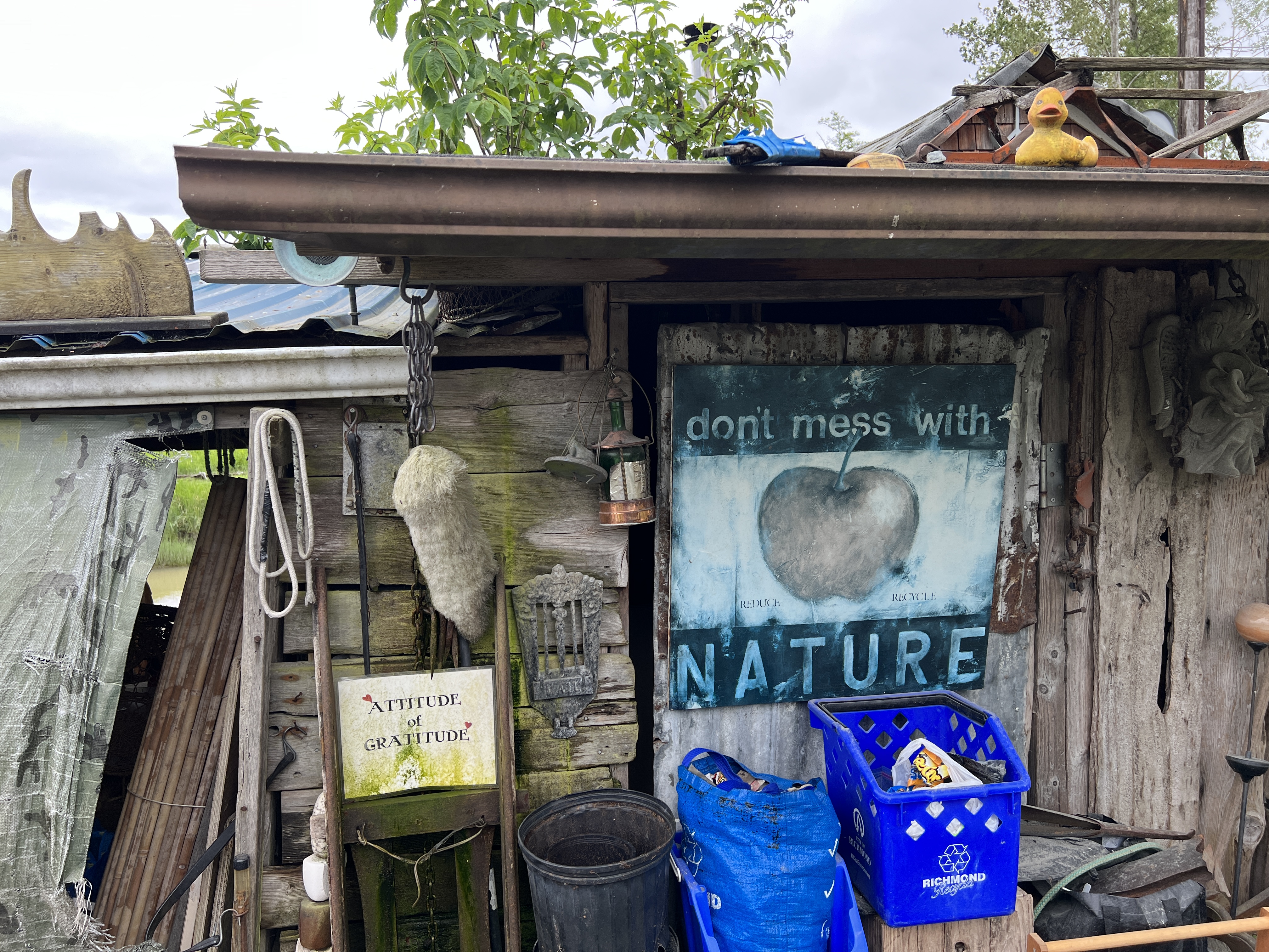 A highlight of this particular walk was historic Finn Slough, with its eclectic display of artifacts and various bits of gimcrackery, all rusting and rotting peacefully beside the road for the viewing pleasure of passersby.