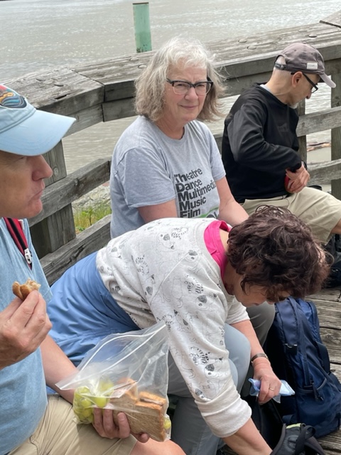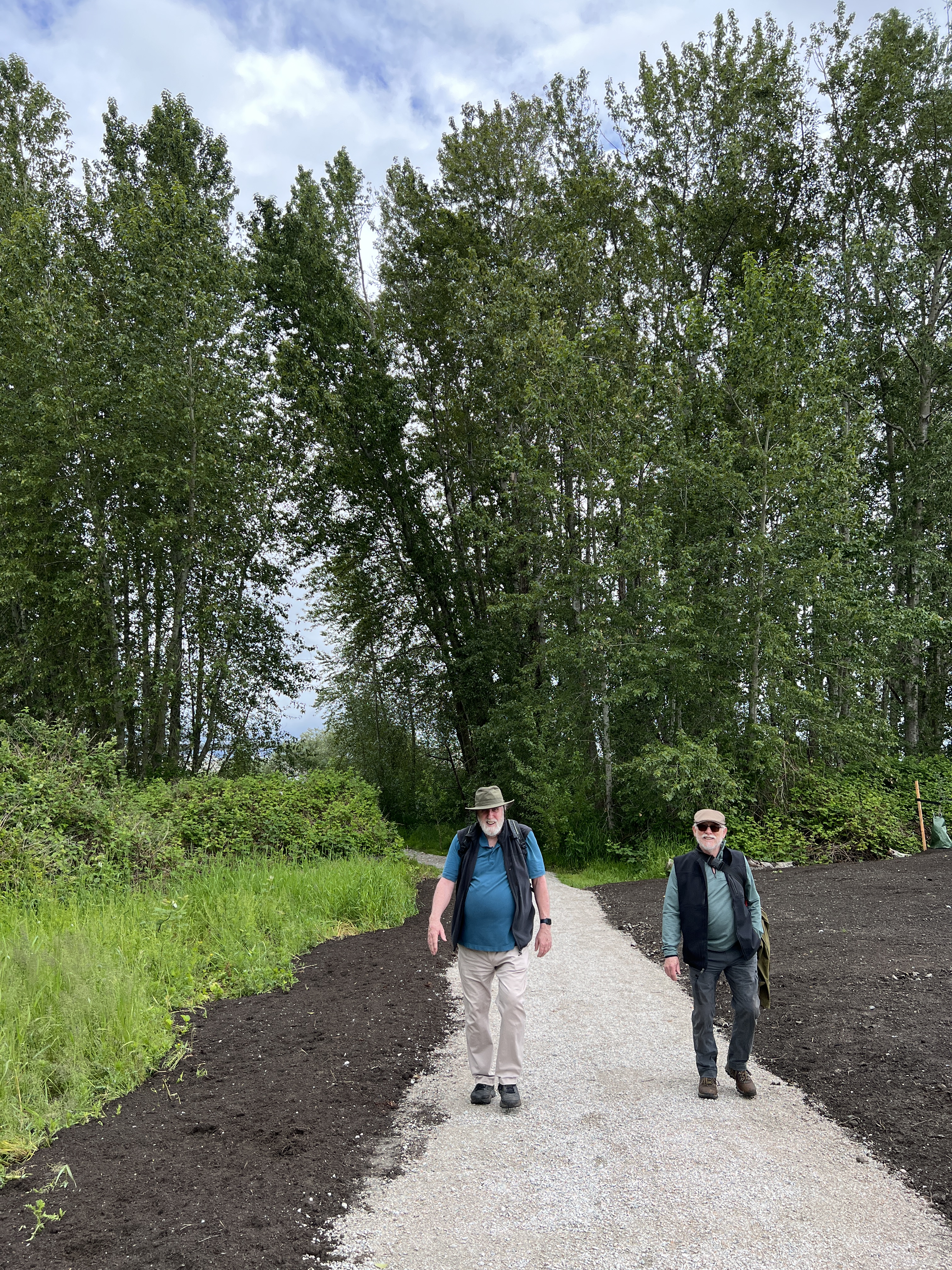June’s walk took us along the dikes from the north side of the Massey Tunnel, westward to the village of Steveston, an 11 km route that was essentially the reverse of our July 2015 walk, which is described in two previous blog entries: the original walk (from July 5th) and a redux walk (from July 12th). Surprisingly, the river was on our left this time, rather than our right; is this perhaps due to global warming? Speaking of which: we noted that the ongoing work to raise the dikes has progressed (this work is part of Phase 3 of Richmond’s Master Plan for flood control on Lulu Island, which aims “to raise the dikes to 4.7 m CGVD28 to allow for 1 m of sea level rise plus 0.2 m of land subsidence”; for those interested, a good overview of these plans can be found here).