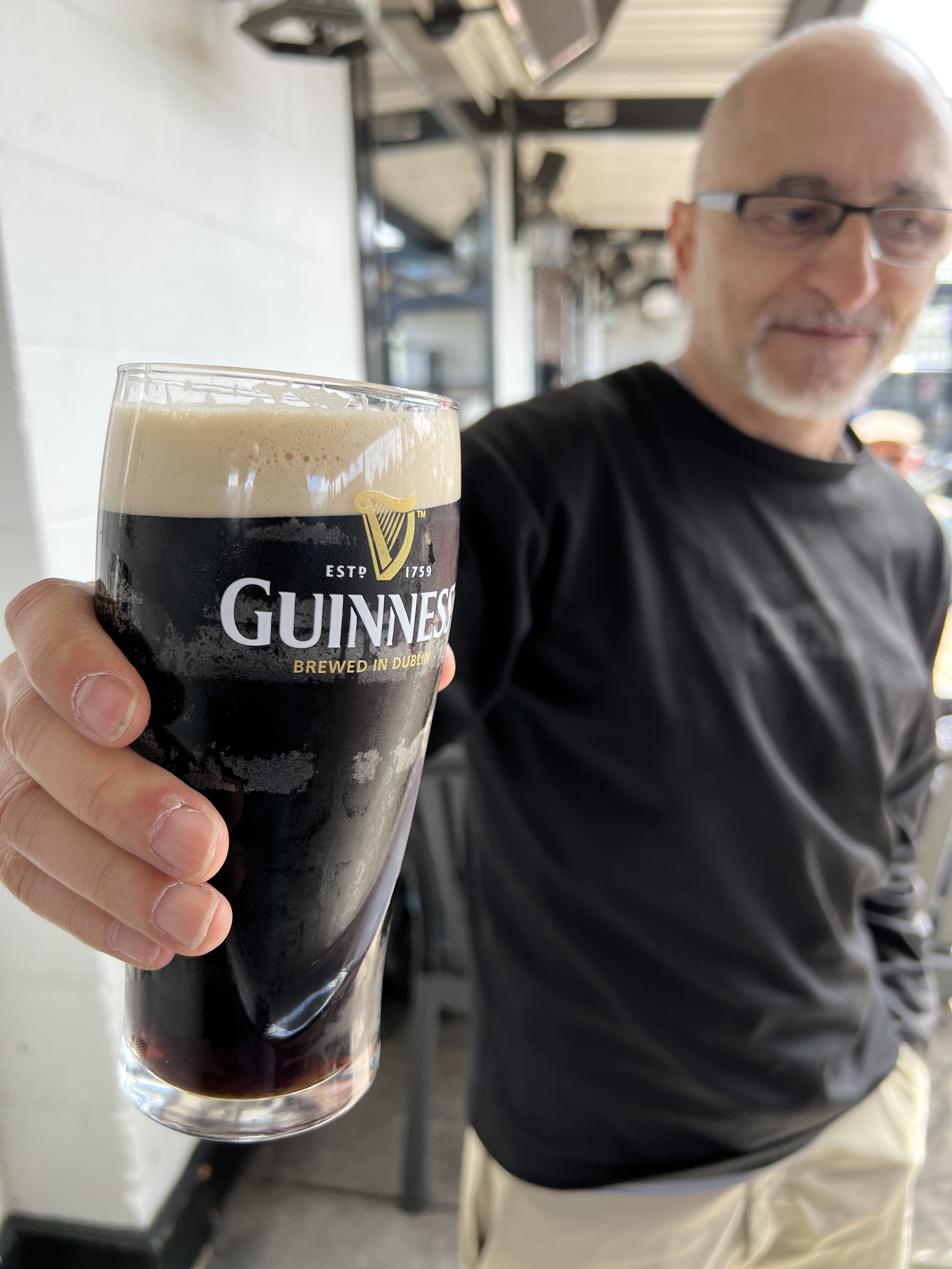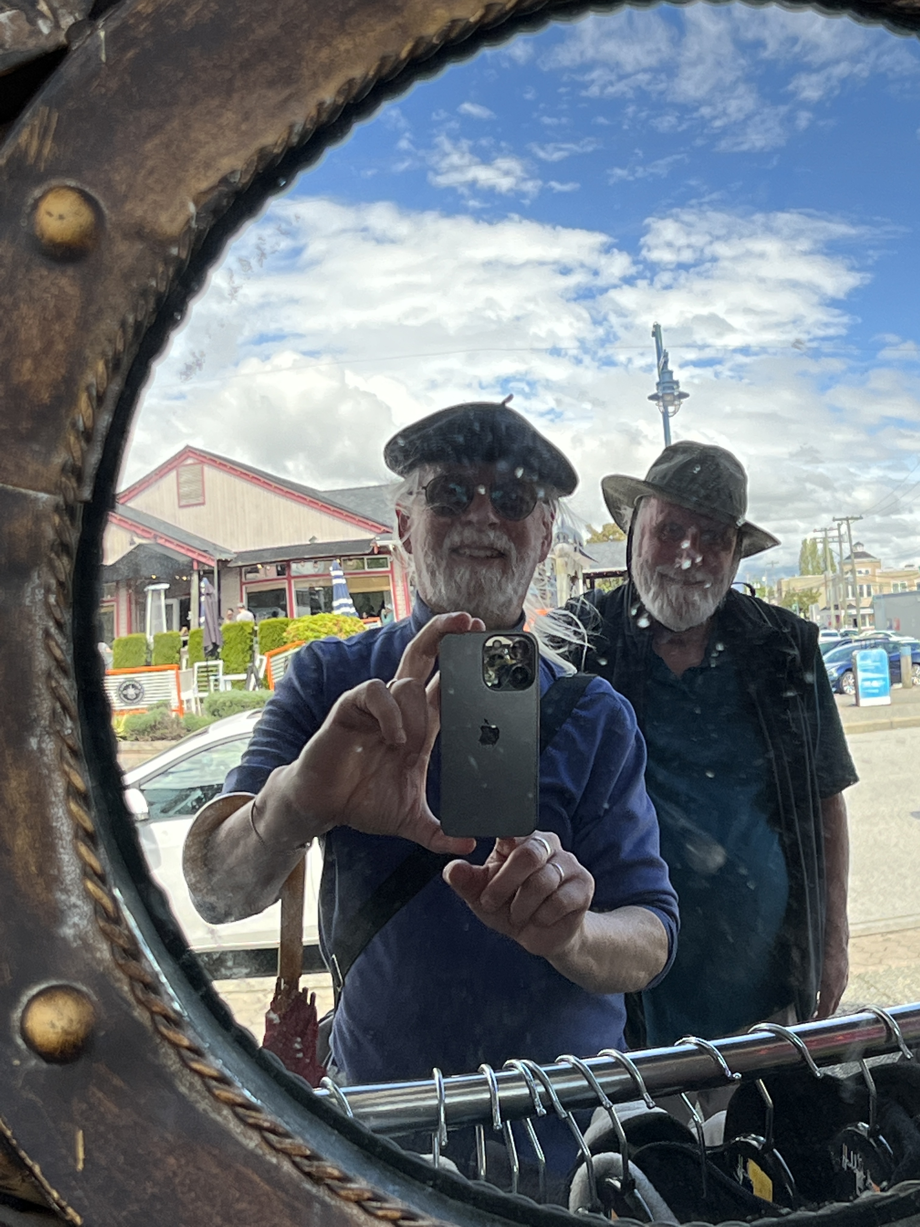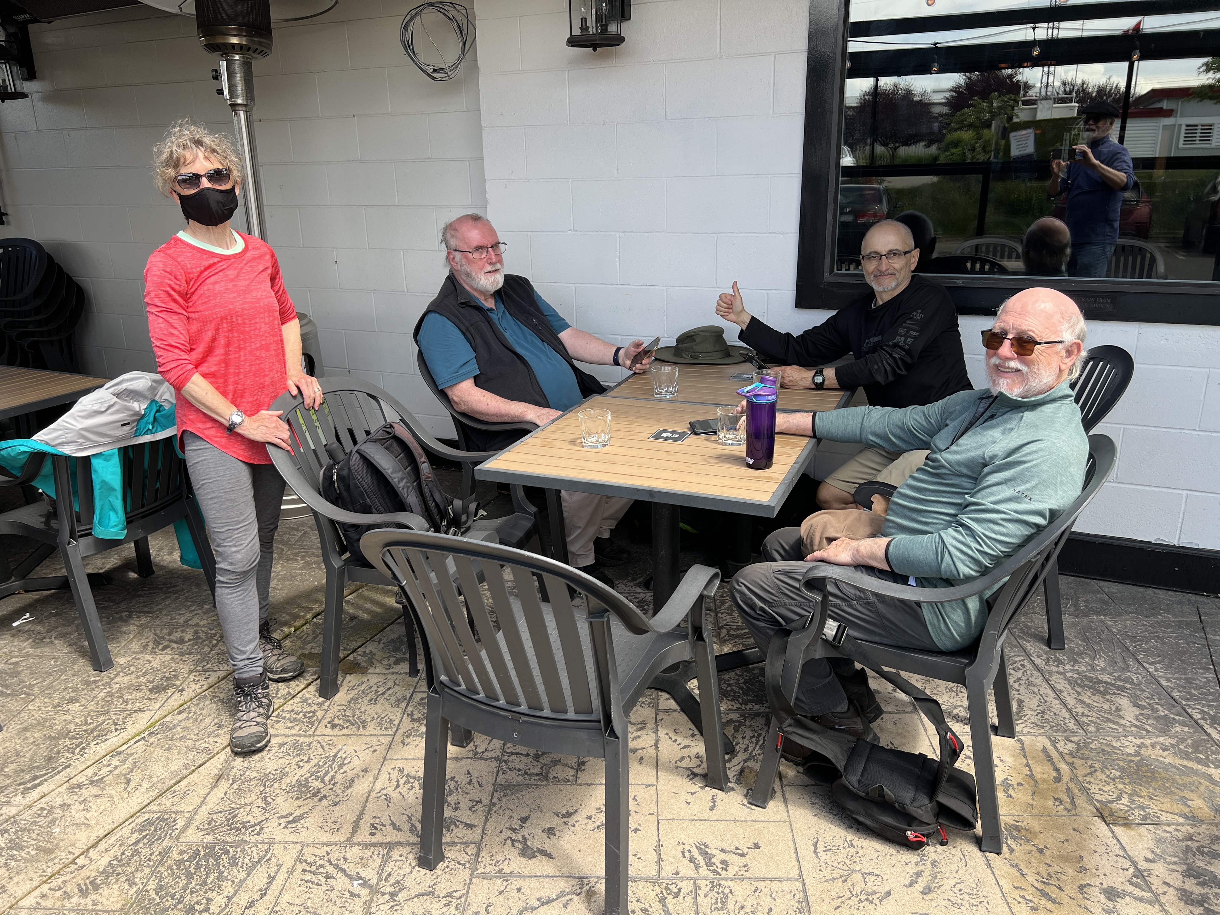 Soon afterwards we reached Steveston village, where afters were consumed on the outside (back) patio of the Buck & Ear Bar and Grill, the workplace of Gord’s first cousin once removed (sadly, no one thought to photograph Gord’s first cousin once removed when Gord brought him outside for a viewing). Gord’s first cousin once removed being otherwise occupied, our afters were served by an efficient (and lavishly tattooed) wait-person, who handled the multitudes with aplomb. After our afters, the morning drivers were returned to their parked cars (near the Model Airplane Park), and ordinary (non-Looper) life resumed.