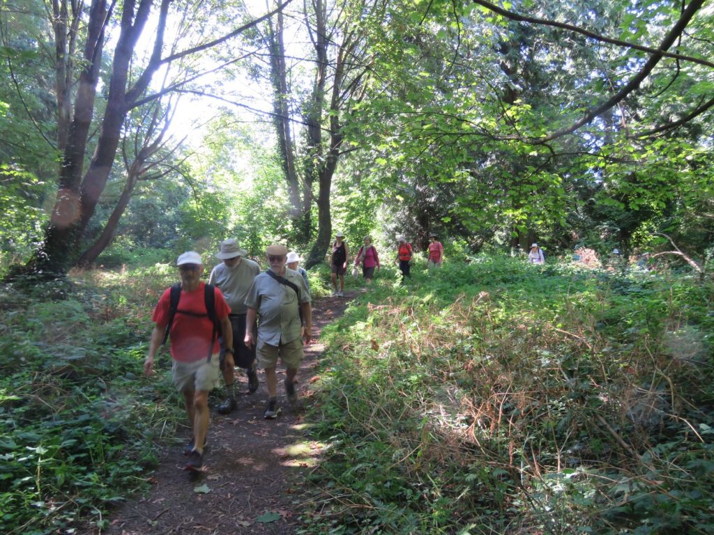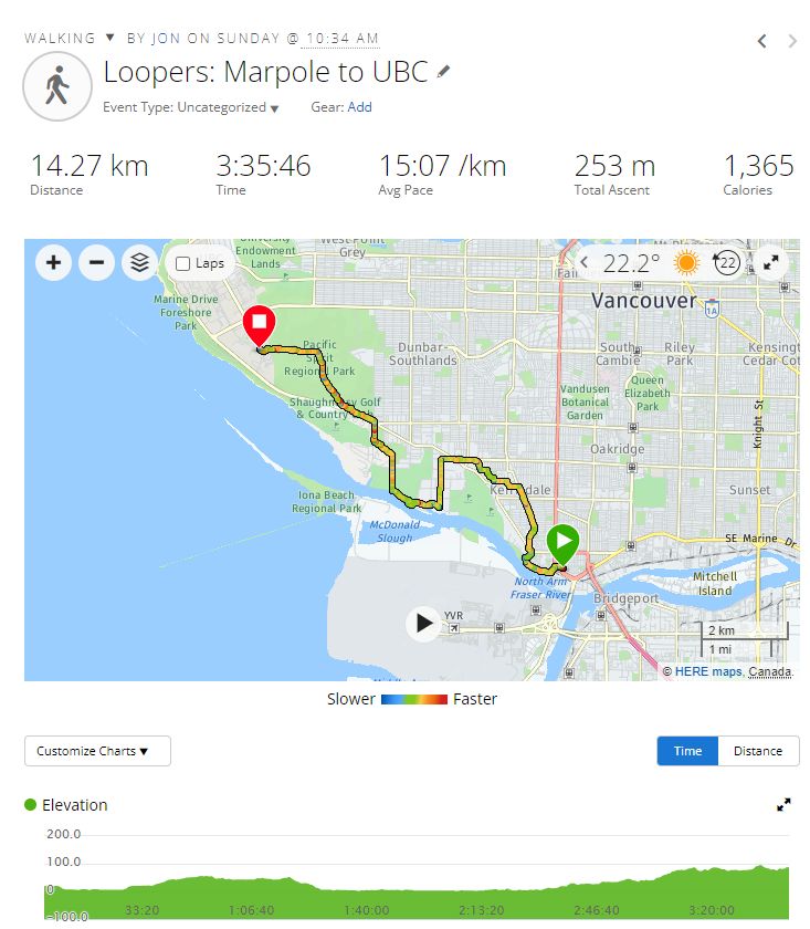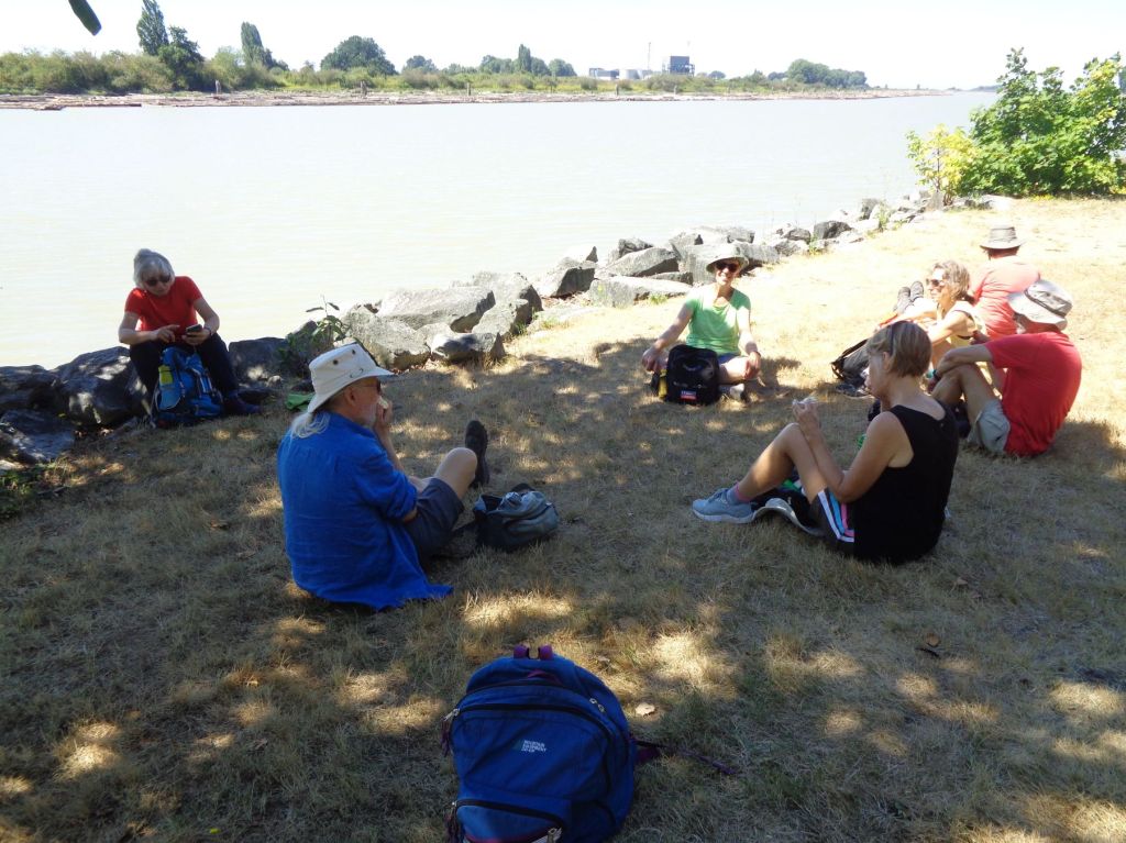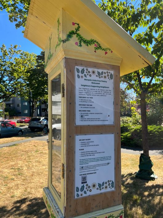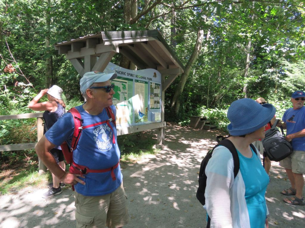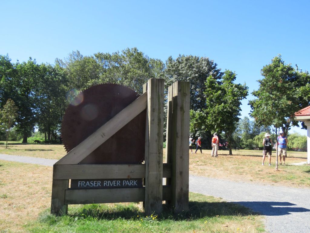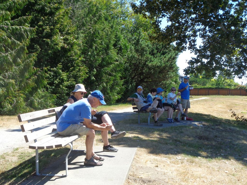 18 Loopers assembled near Nobel Park in Westbrook Village at UBC, sorted ourselves into 4 cars and departed for our starting point, the Marpole Midden, a National Historic Site located in Marpole Park. After a shady starting selfie by the midden monument the group headed out. At the western corner of the park was a Little Free Pantry (a minor disappointment to Michael who was expecting a Little Free Library).