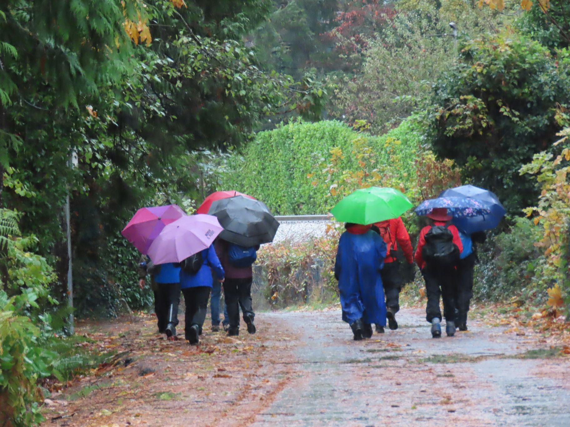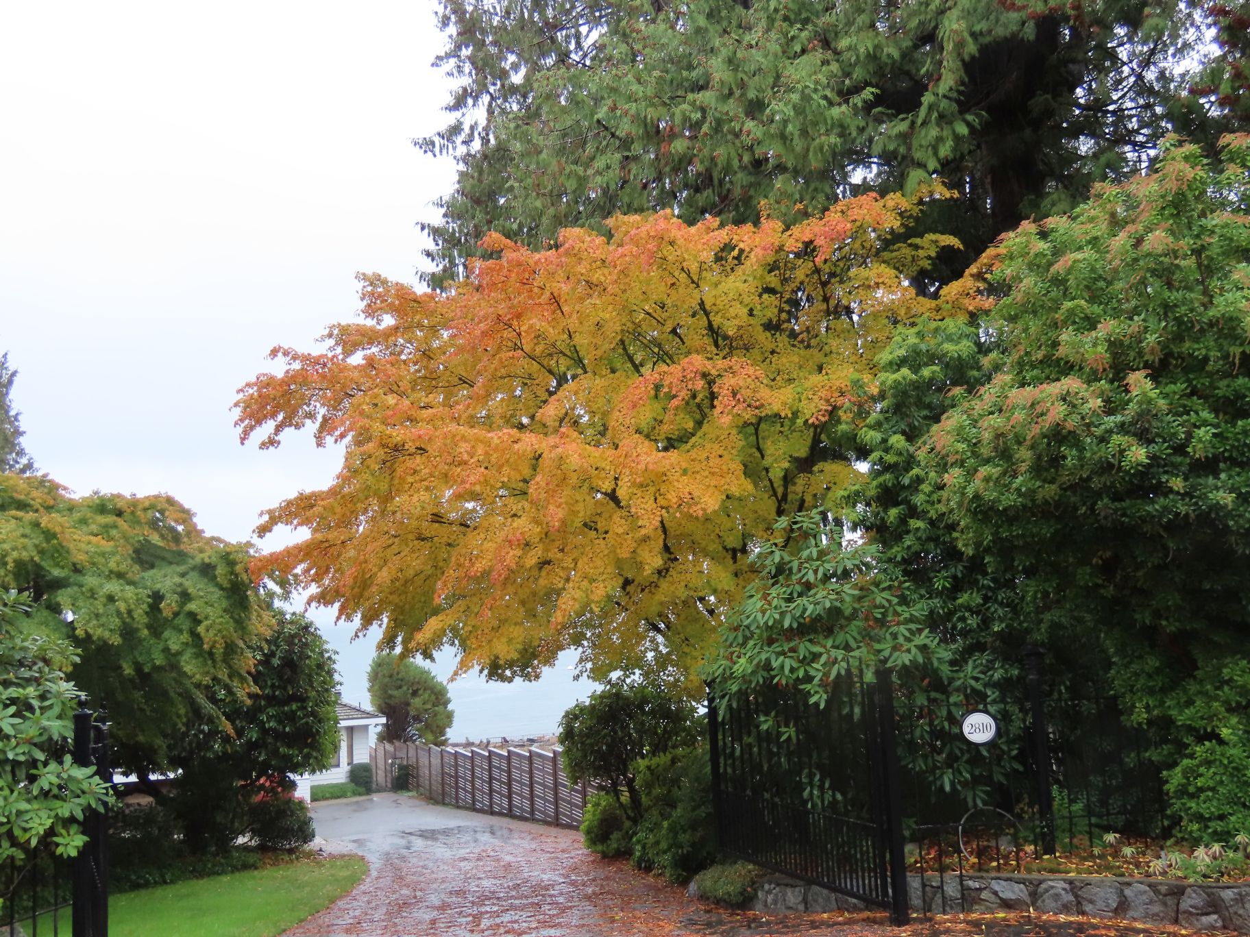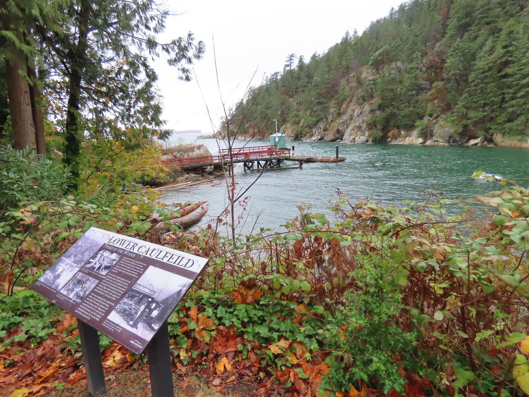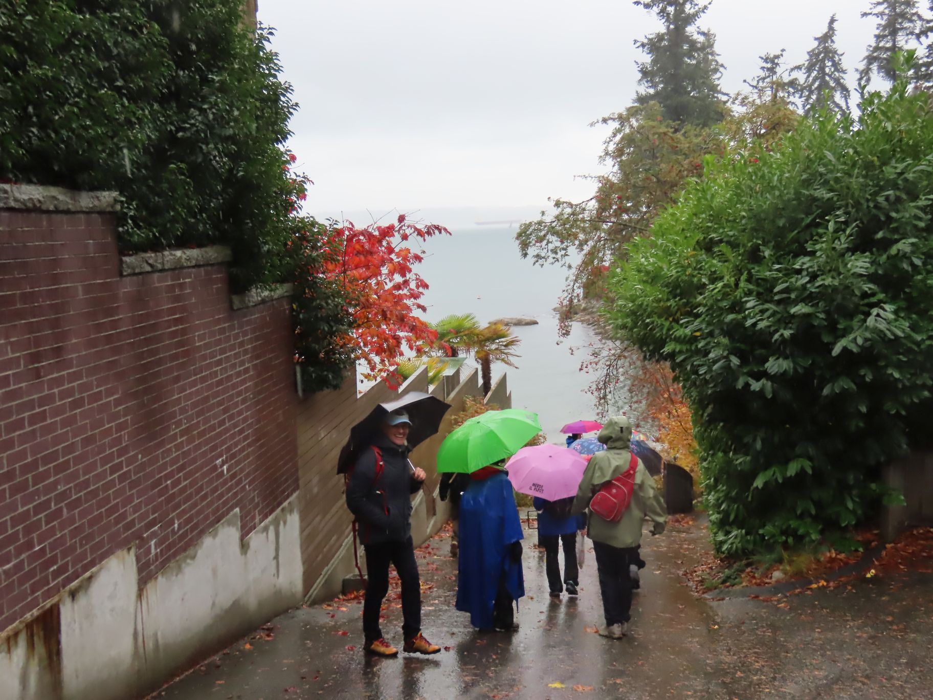 From Dundarave our route took us along several side streets and lanes below Marine Drive with occasional views down to the water and some fine examples of Fall foliage. Upon reaching West Bay Park people decided not to descend into the park, but instead crossed Marine Drive and regrouped under the railway overpass.