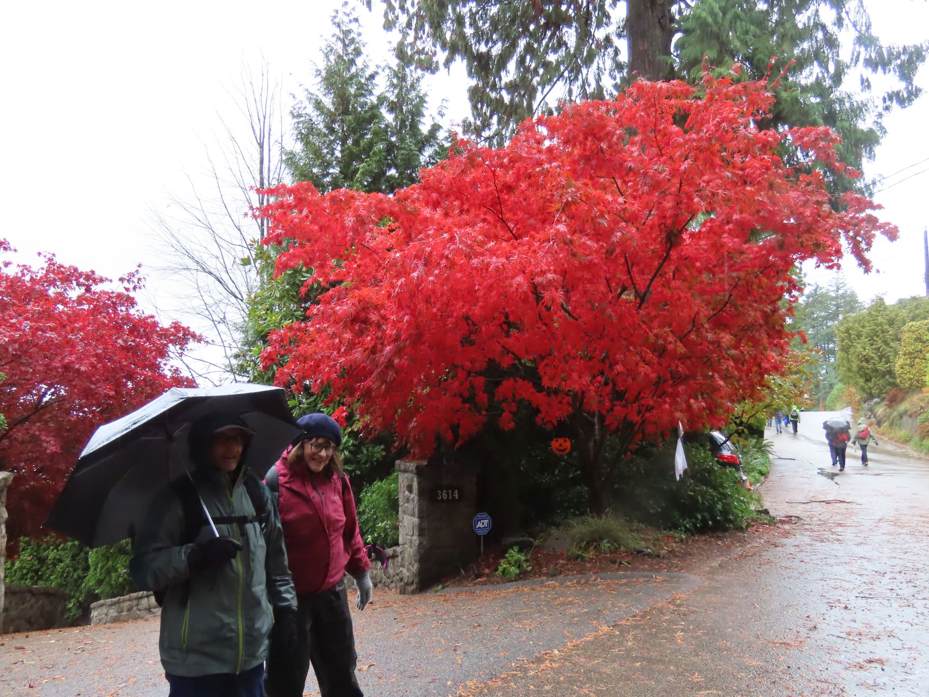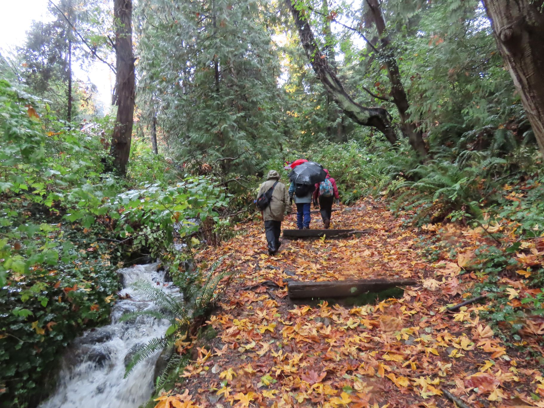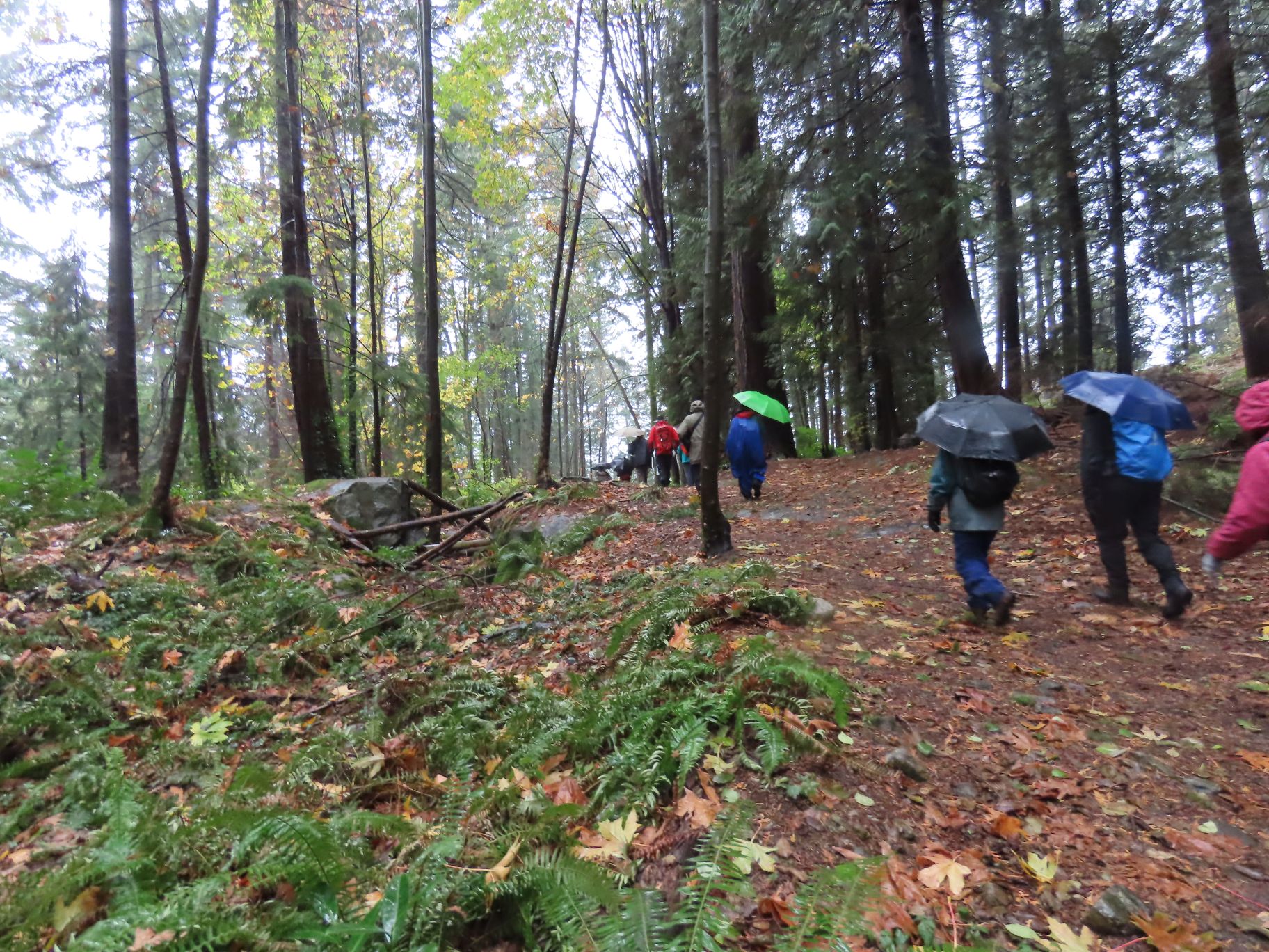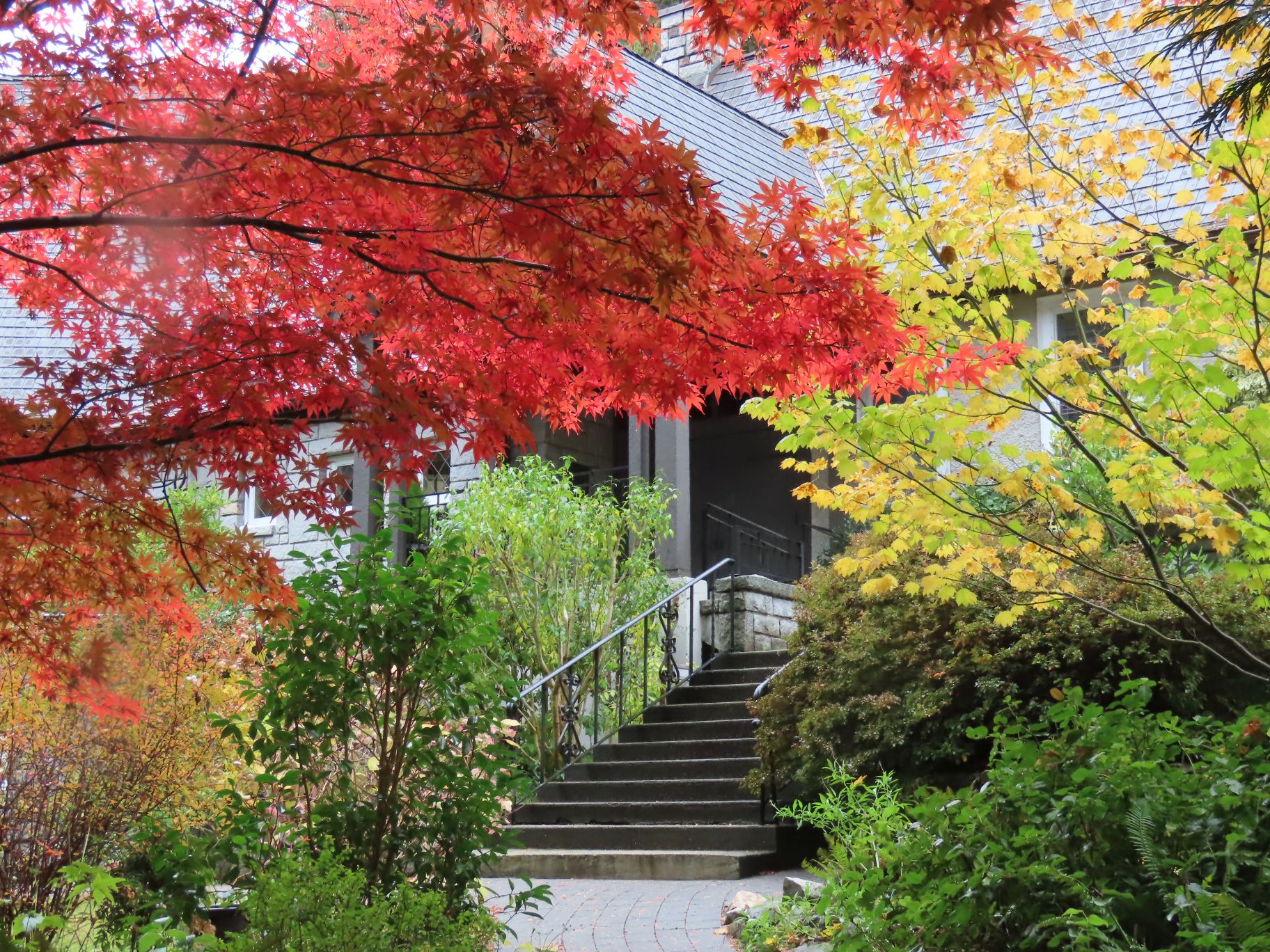 From Dundarave our route took us along several side streets and lanes below Marine Drive with occasional views down to the water and some fine examples of Fall foliage. Upon reaching West Bay Park people decided not to descend into the park, but instead crossed Marine Drive and regrouped under the railway overpass.