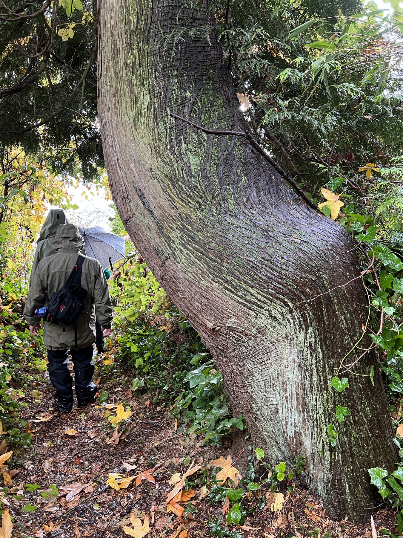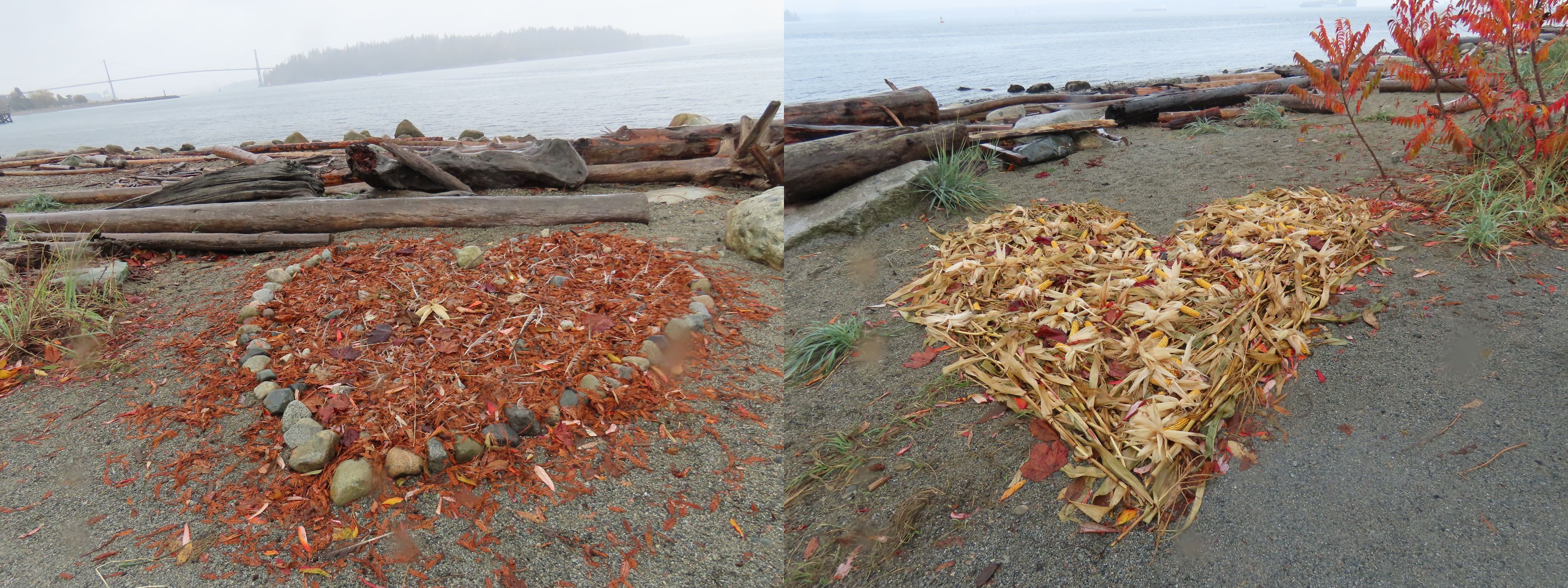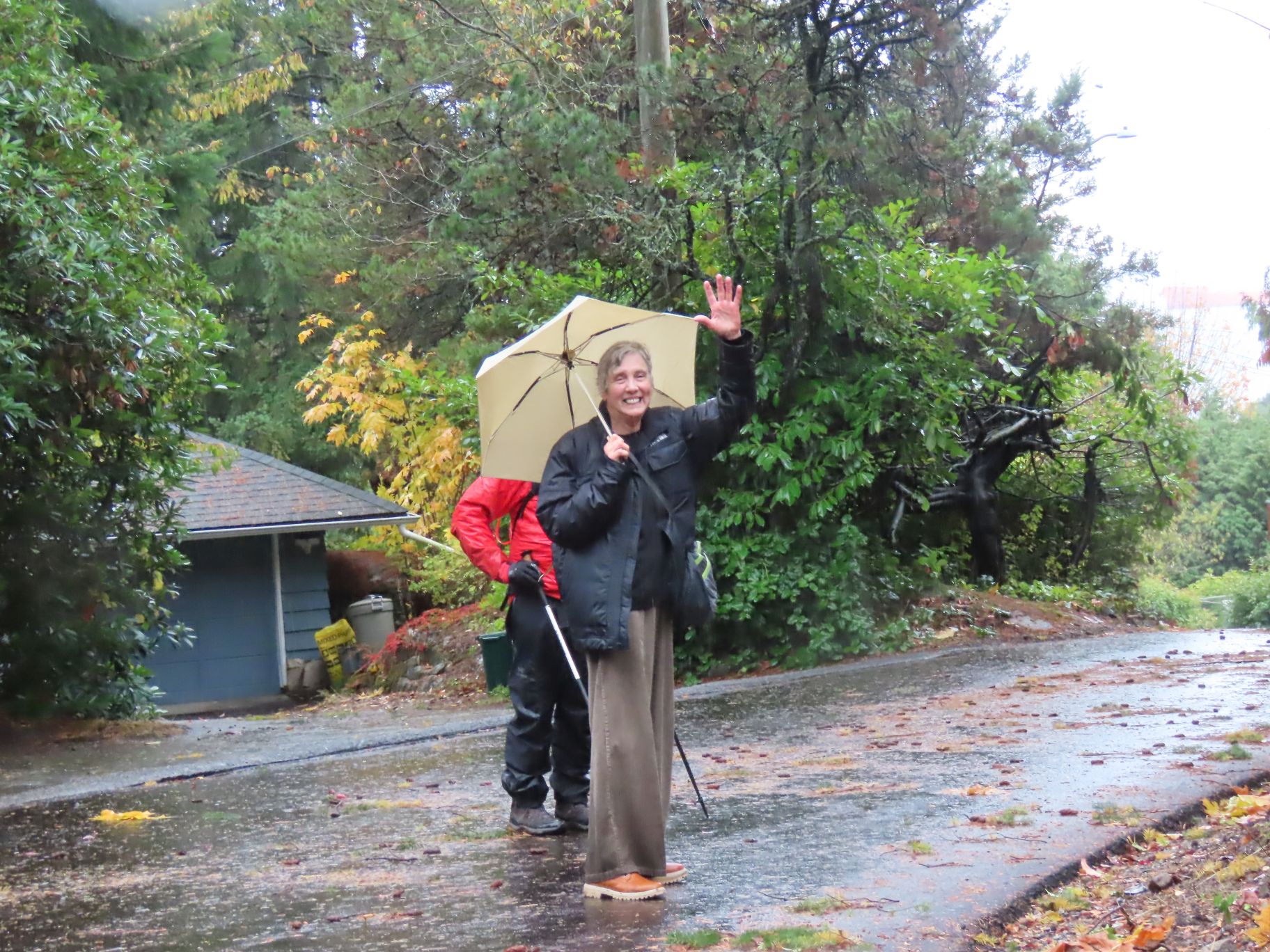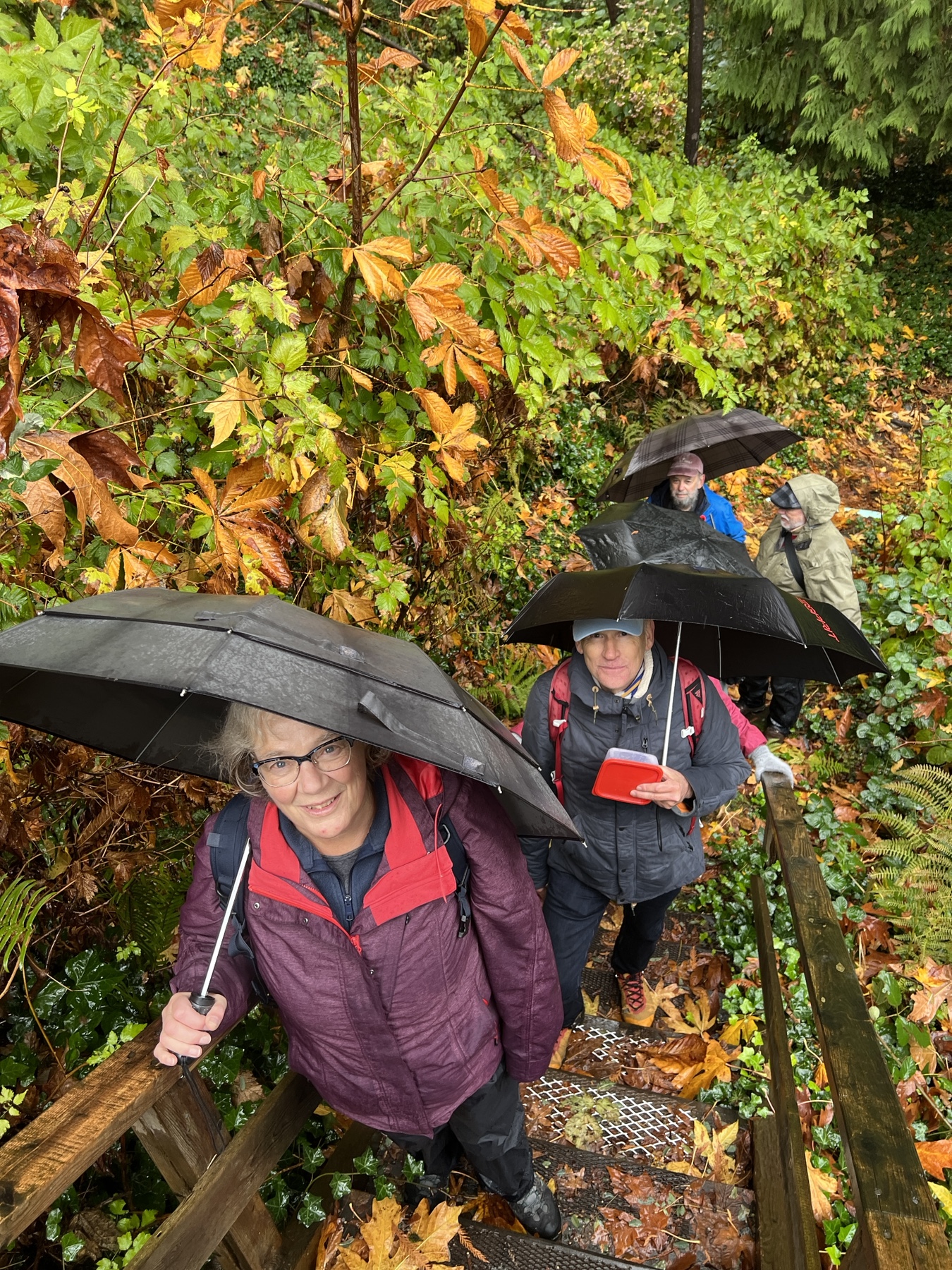 From Dundarave our route took us along several side streets and lanes below Marine Drive with occasional views down to the water and some fine examples of Fall foliage. Upon reaching West Bay Park people decided not to descend into the park, but instead crossed Marine Drive and regrouped under the railway overpass.