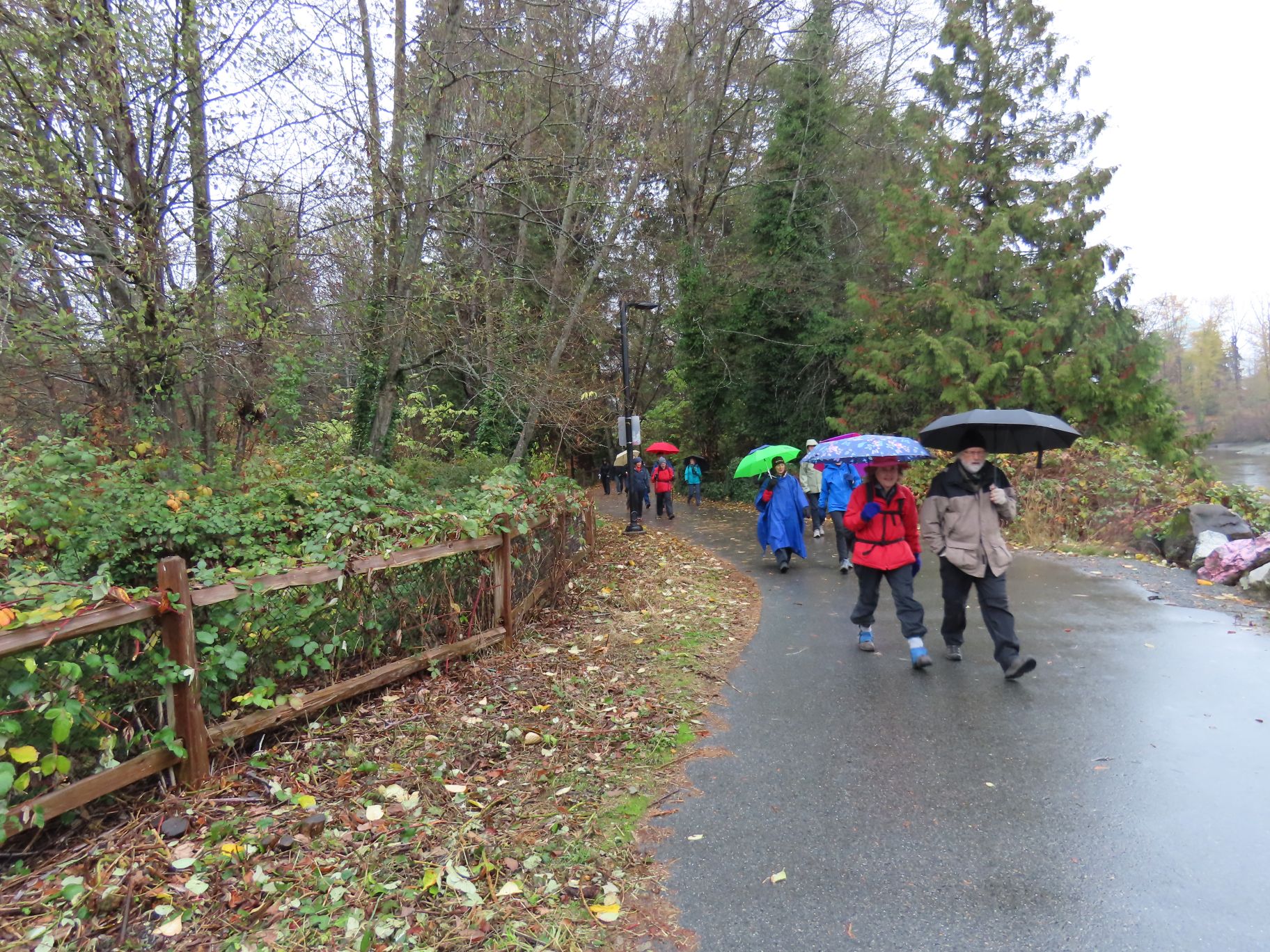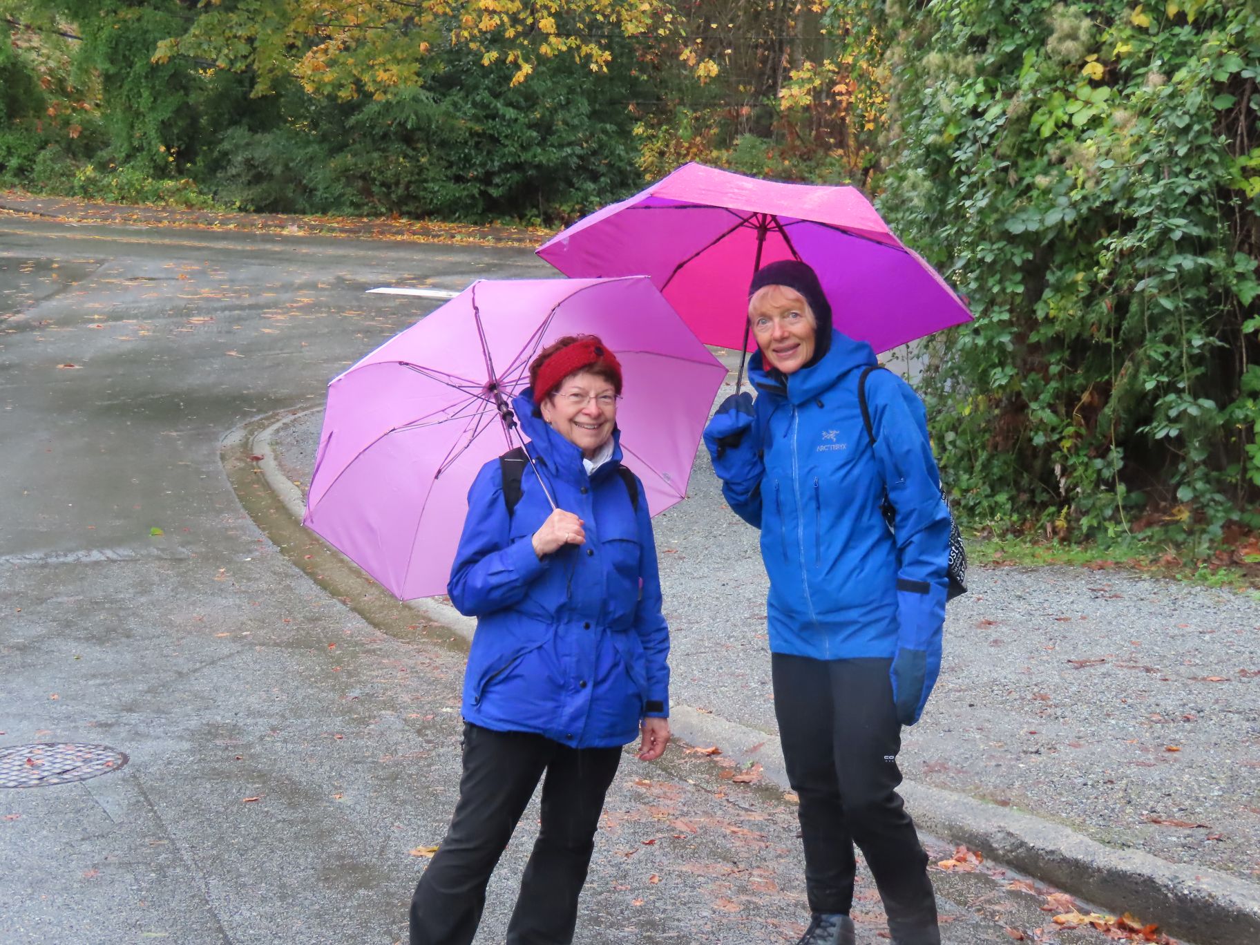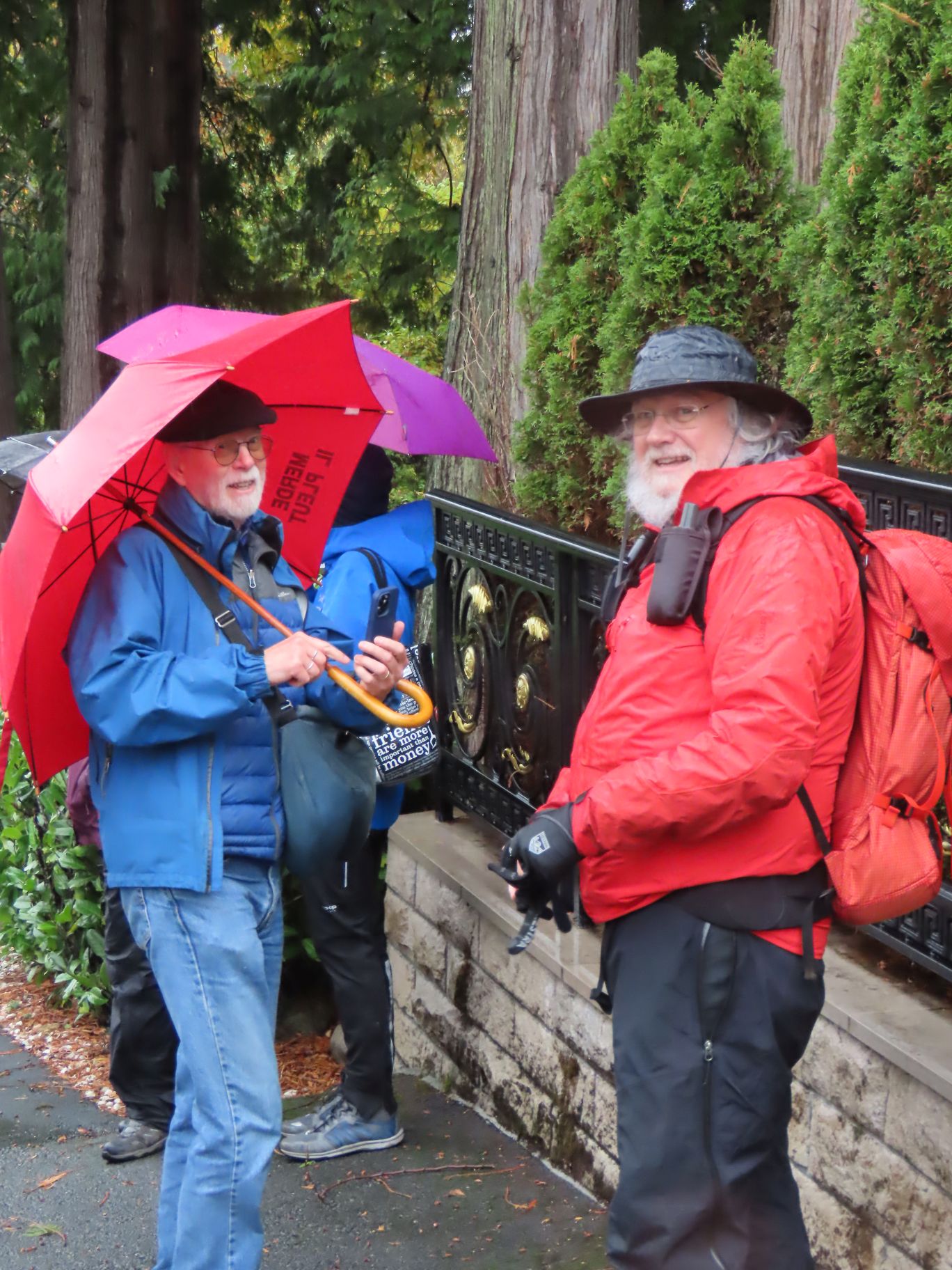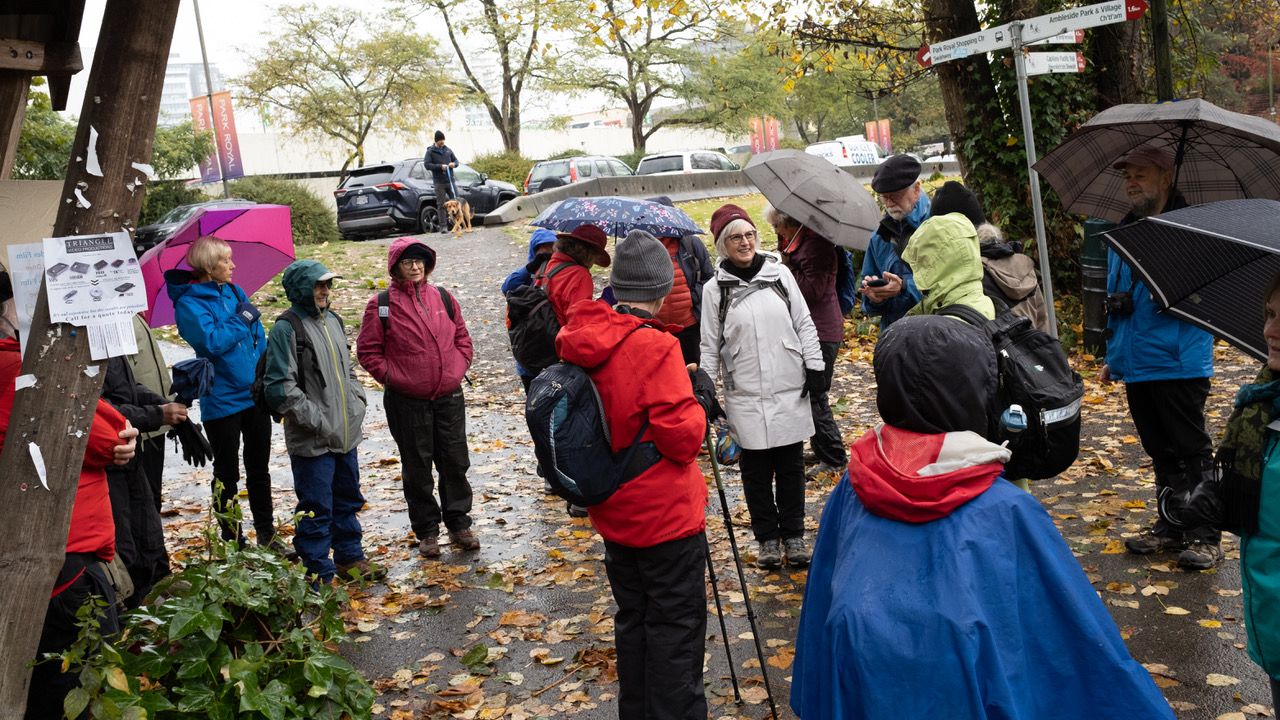 21 Loopers gathered for this month’s walk on the Spirit Trail just south of the Park Royal Mall. With umbrellas deployed, the group headed down to Ambleside Park and westward along the shore of English Bay. We strolled through Ambleside Park, past Ambleside Village, and along the seawall walk to Dundarave. The crew broke into several groups along the way (repeated in variations over the day). We all regrouped upon reaching Dundarave where people took the opportunity for snacks and wardrobe adjustments.