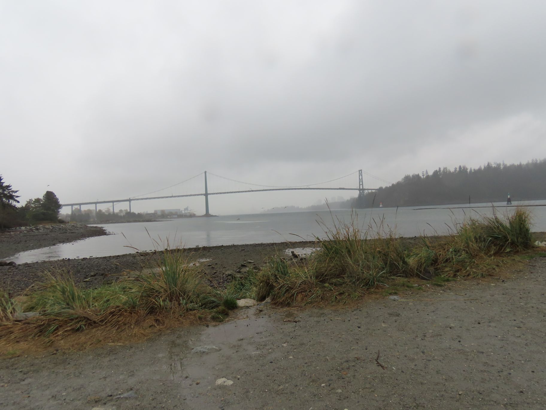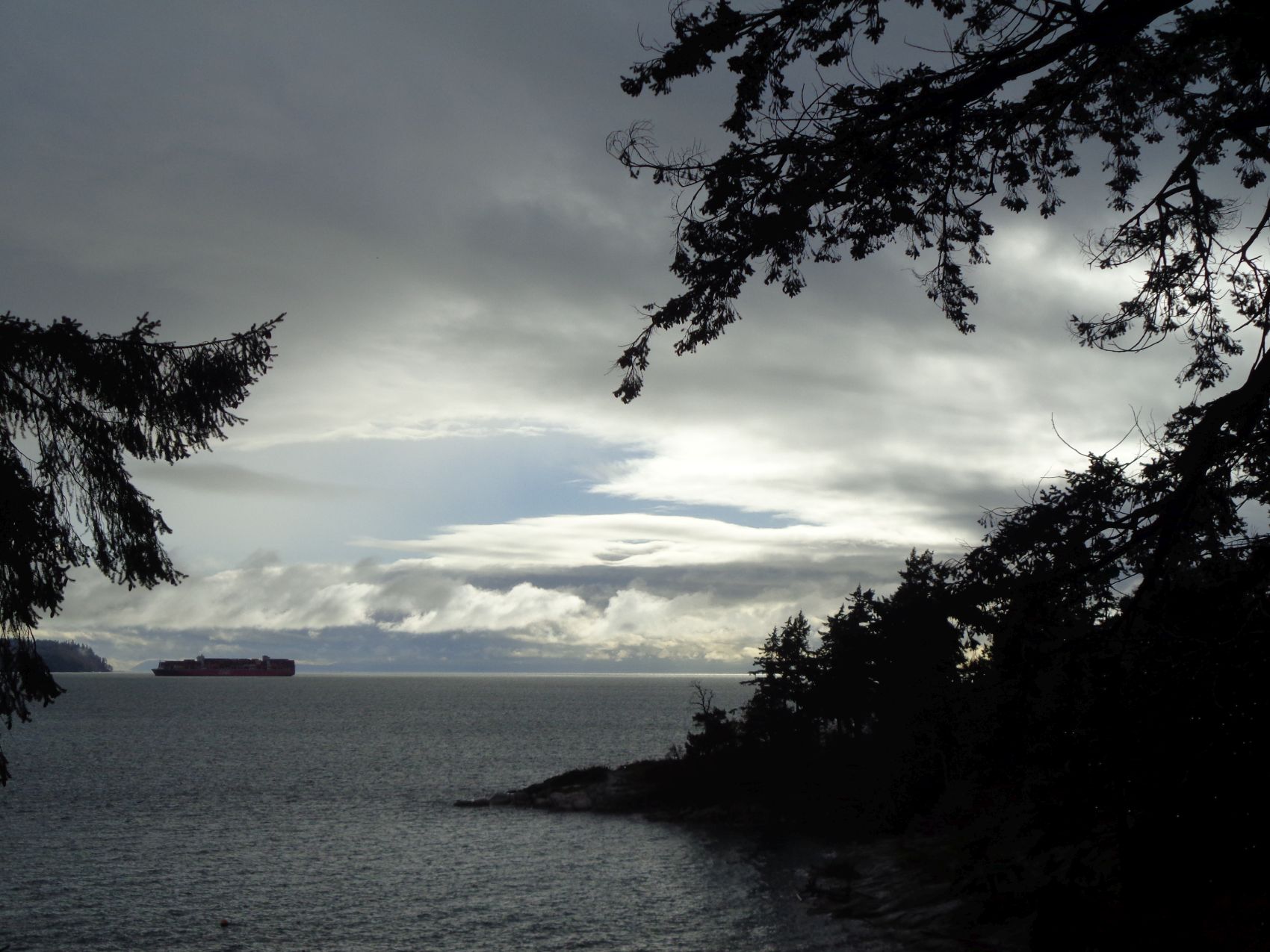 Heading down some roads to a small beach, we determined that the tide was too high to walk along the beach so we were forced back up to Marine Drive for a final short stretch. We then followed a trail back down to the shore where we could walk along the rocky shore on Caulfeild Bay. At this point the rain had finally stopped. Crossing over to the quaintly named Tiddley Cove, we passed by St Francis-in-the-Wood Church. (For those interested, a brief history of the early days of Caulfeild Village and the church can be found here.)