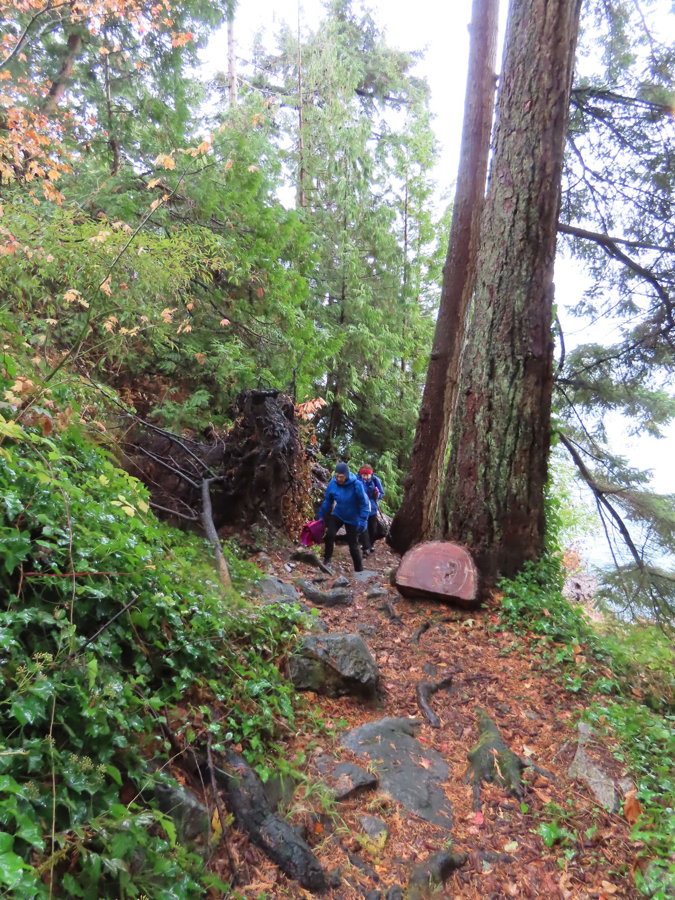 From here it was a brief walk up the road to where we entered Lighthouse Park for a final climb through the woods to our destination, the parking lot at Lighthouse Park. The final stretch proved to be a little more challenging than anticipated due to a number of fallen trees – the aftermath of the recent high winds.