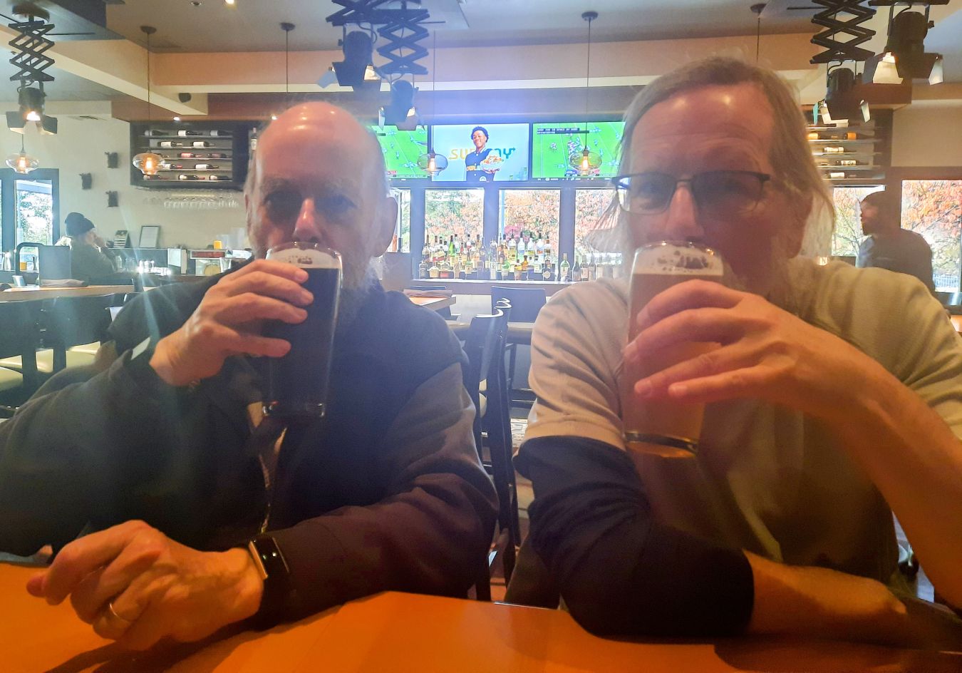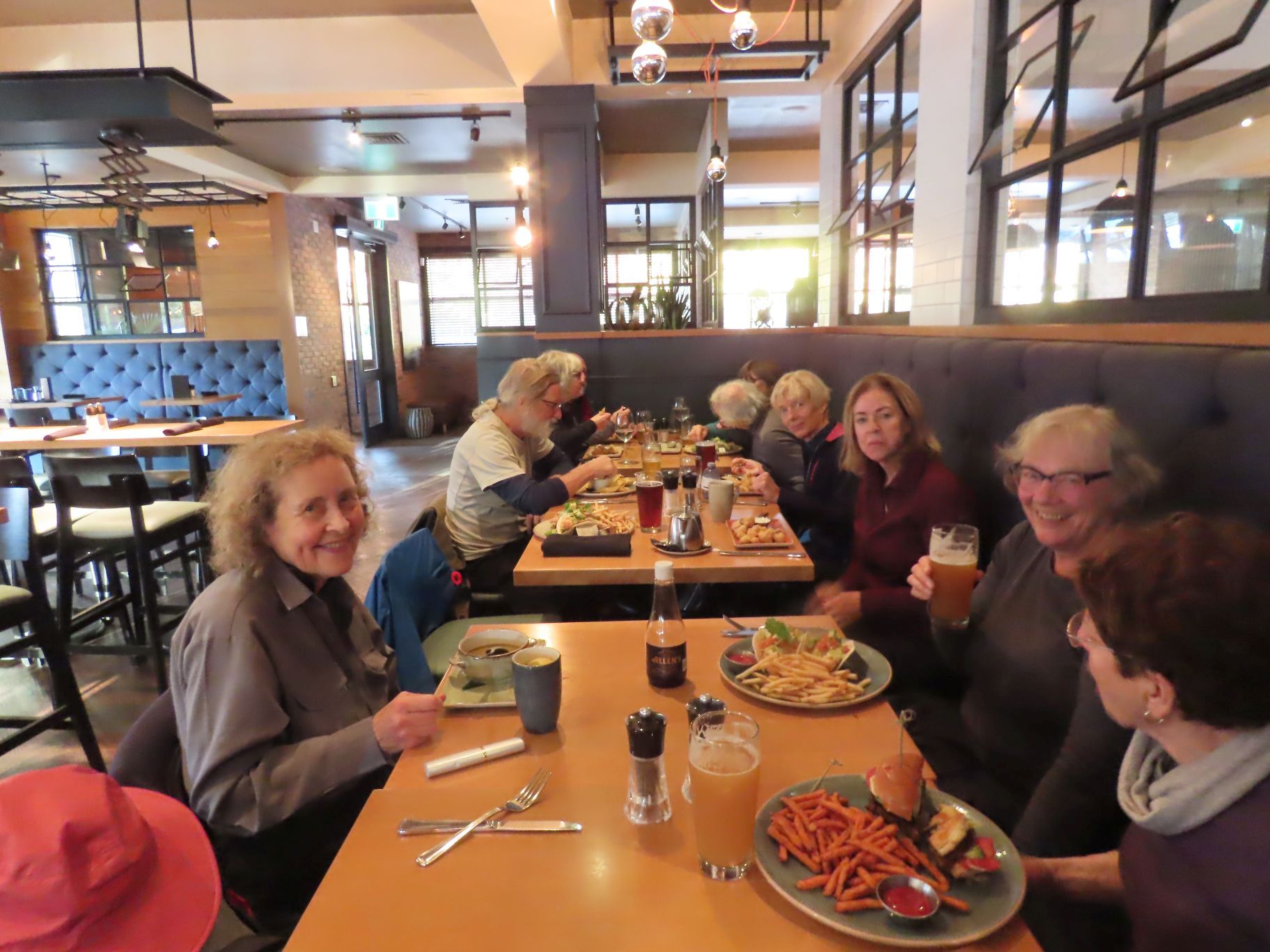 Fortunately, enough cars had been left at the parking lot so bussing from there was not required. A few people departed at this point, while two groups opted for post-walk refreshments. The coffee crew headed to Isetta for coffee and treats. The other group convened at Milestones in Park Royal for more potent potables and various appies.