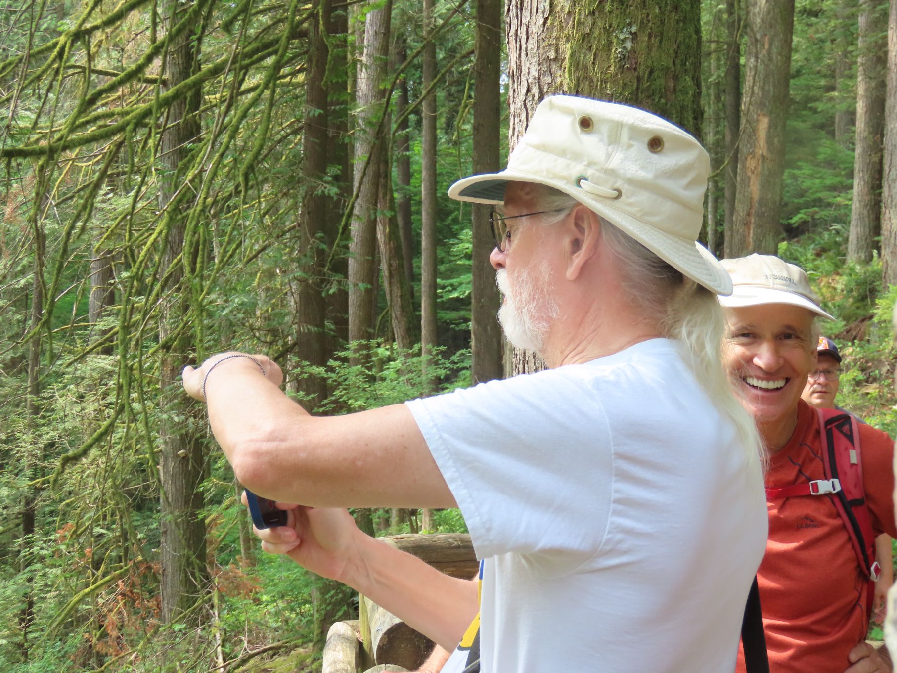 This month’s group walk was a land-based version of the salmon’s migration route: making our way upstream until encountering a dam, then downstream again (your task is to itemize the many ways in which our route was not like the salmon’s; to start you off: no spawning was observed while we took our snack break at Cleveland Dam).