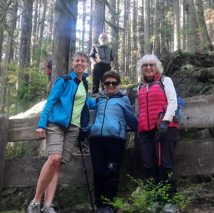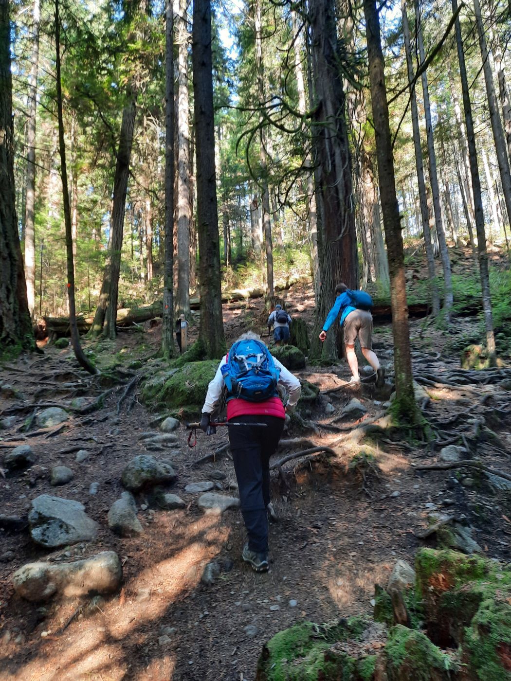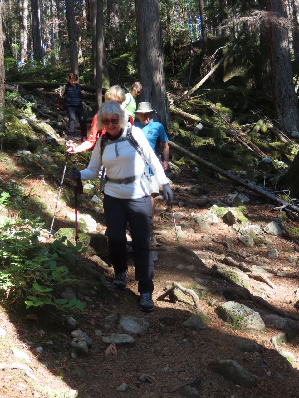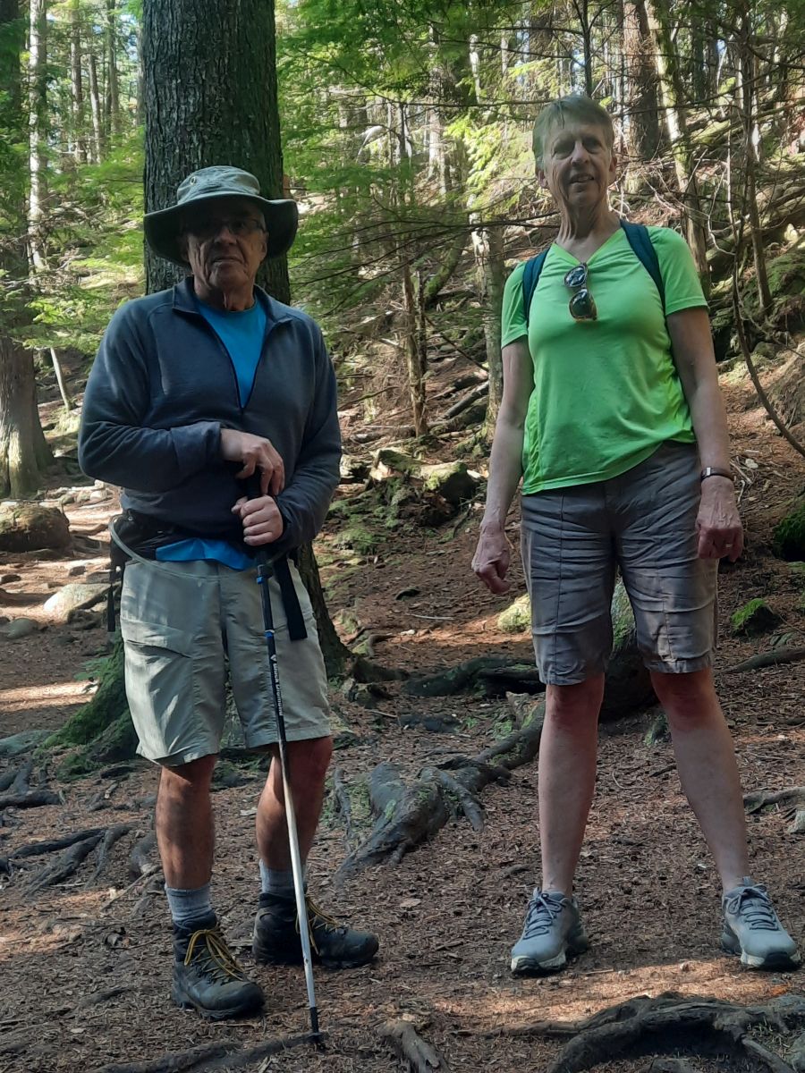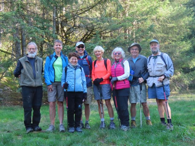 Retracing our steps, we passed the point where we had initially reached the road and continued on a different trail to the west of the one by which we had ascended. That trail provided a gradual descent back to the parking lot. As we approached the end of the hike we met a fellow who asked, in front of his two young daughters, if we were a school group. Without hesitation, Adrienne replied: “No, we are out on a day pass”.