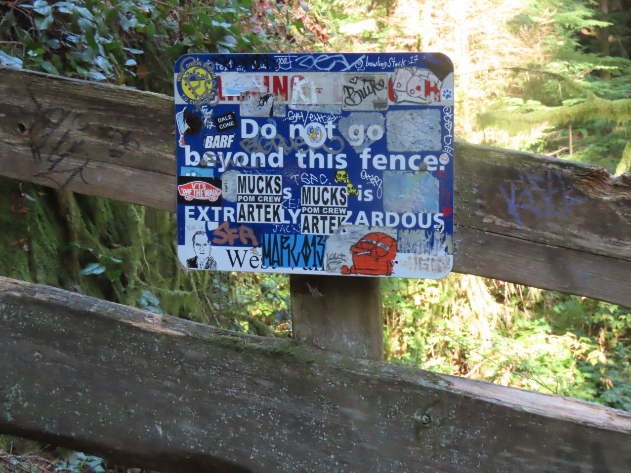 Returning to the first waterfall: of course, the aforementioned fence was no deterrent to a determined group of dedicated Loopers, who immediately crossed to get a better view of the falls. A little further up another lookout spot, complete with fence and signs (again ignored), provided views from the top of the falls.