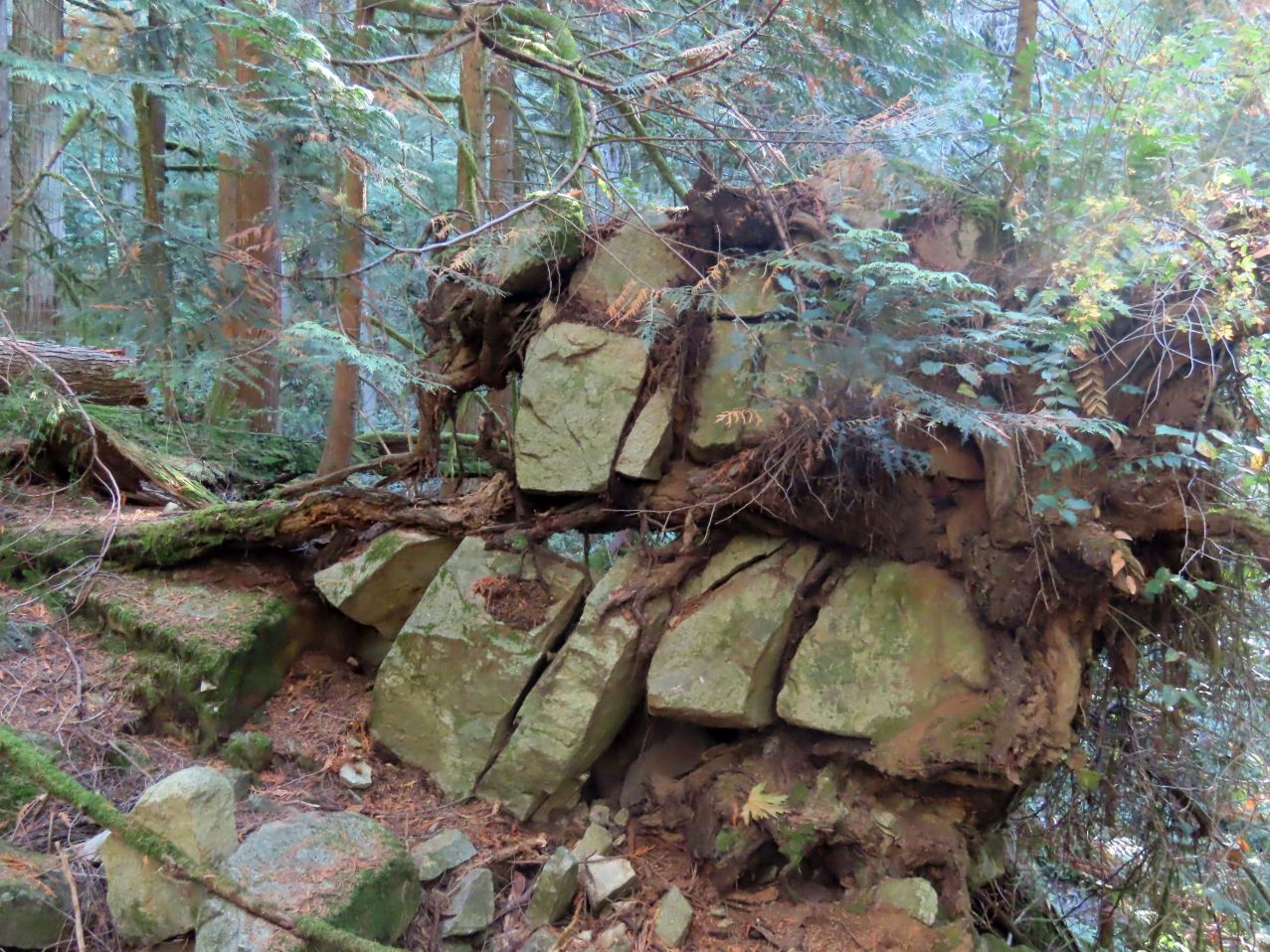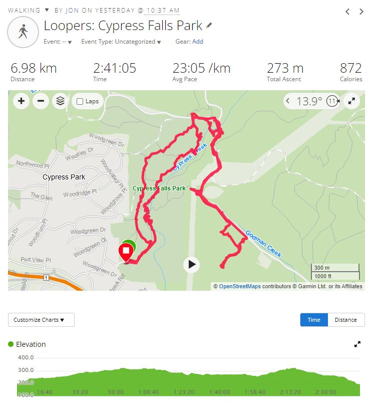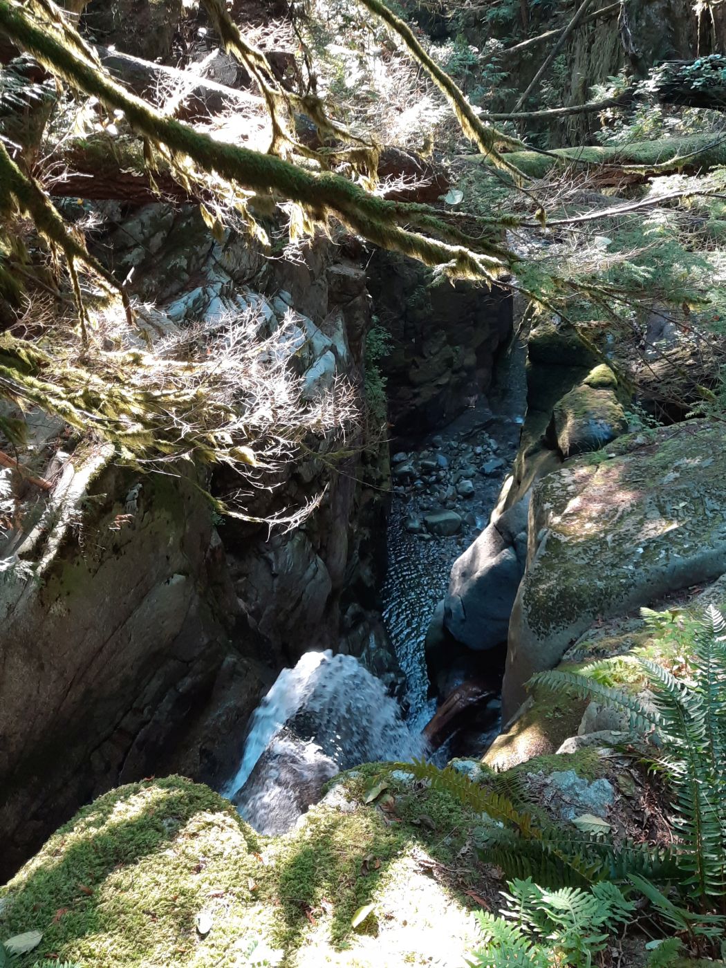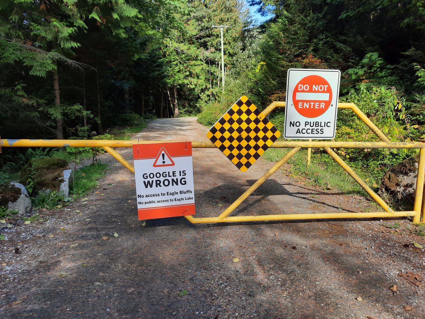 A somewhat smaller than usual group of eight Loopers met at the Cypress Falls parking lot on what was a fine Fall morning. After posing for the starting selfie, we plunged into the woods. A short way along we could see the first waterfall ahead. As we approached, there was a fence with dire warnings posted about not crossing it. This was the first of many warning signs observed during the day. Some were on protective fences, while others warned of steep drops and risks of injury. The trail runs back and forth between the park and the British Properties and at every boundary point was a large sign warning that we entered at our own risk and that any attempt to build a temporary or permanent structure would have serious consequences. Finally, there were more signs warning us to stay out of the Eagle Lake watershed. We took particular offence at an official looking sign on a road barrier stating that “Google is Wrong”. The sign claimed that the route did not provide access to Eagle Bluffs, which experienced hikers in the group knew was not true. Here endeth the rant about signs.