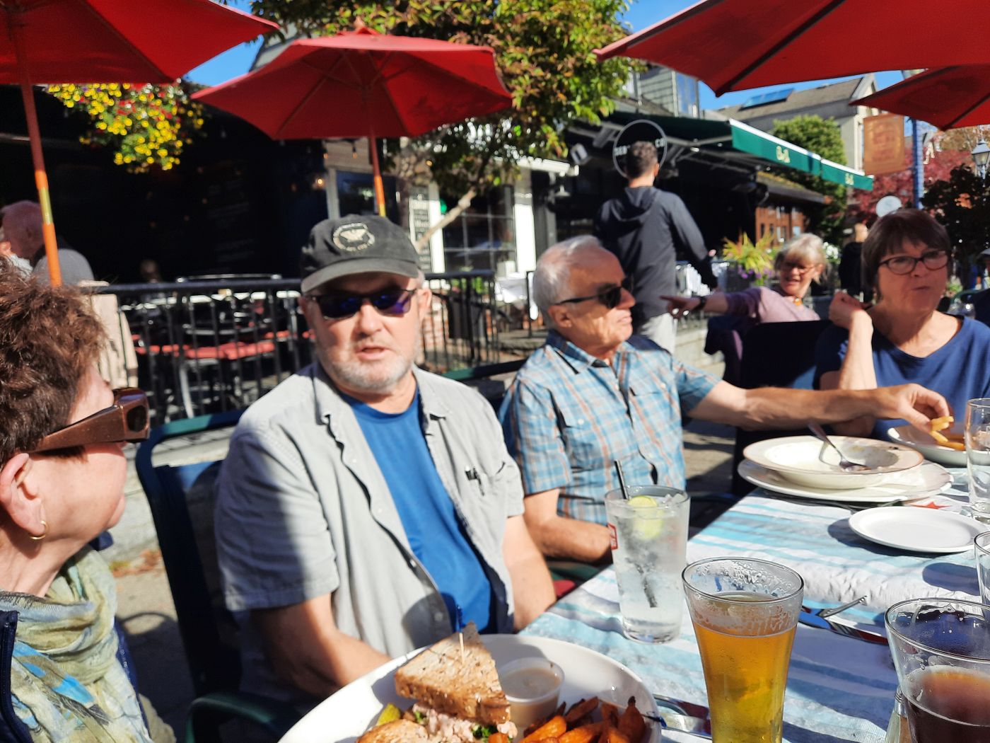 Afters were enjoyed at a sidewalk table outside the Red Lion pub in Dundarave, where we were joined by Julie and Sandy.