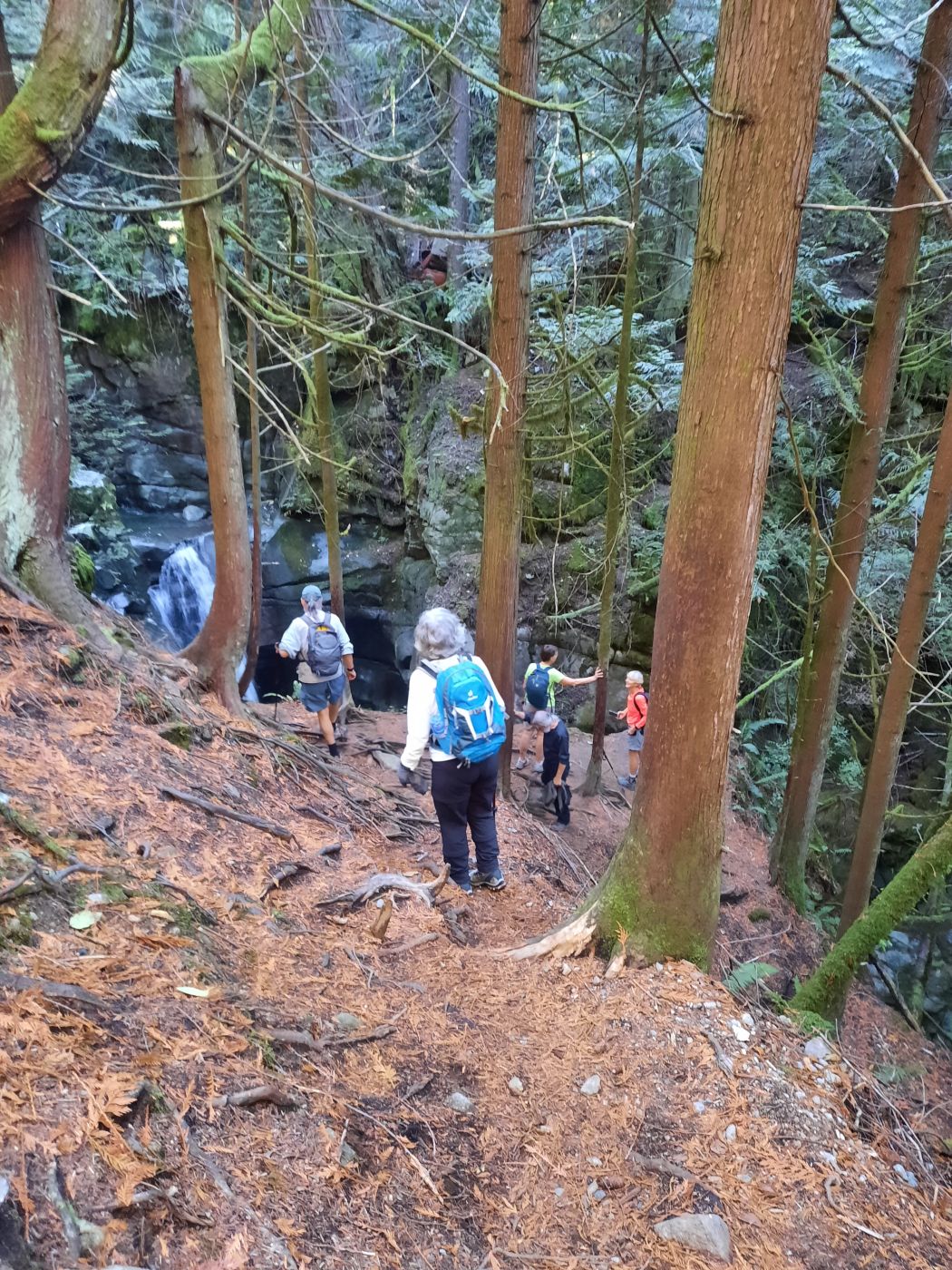 We reached a spot where we could see the upper falls across the canyon. Some descended part way down to get a better view.