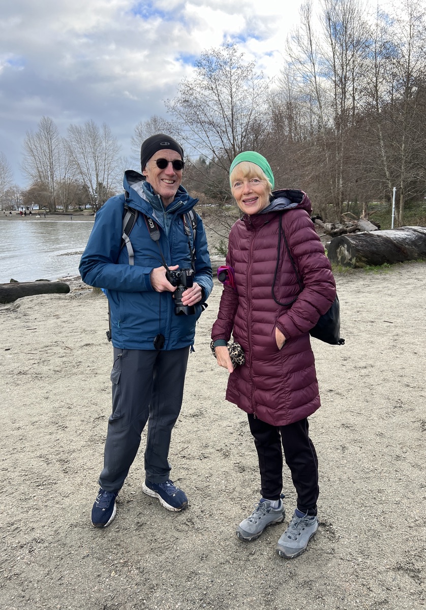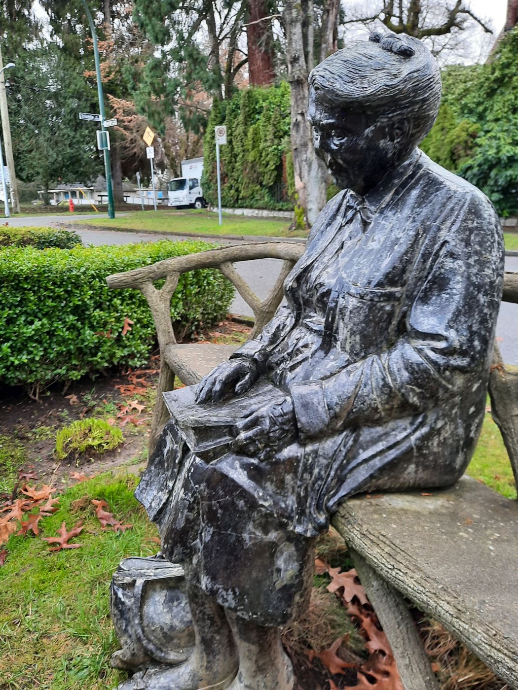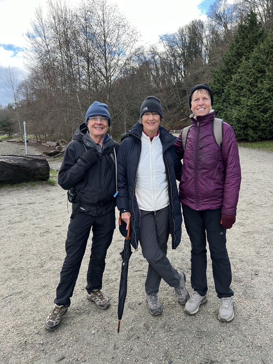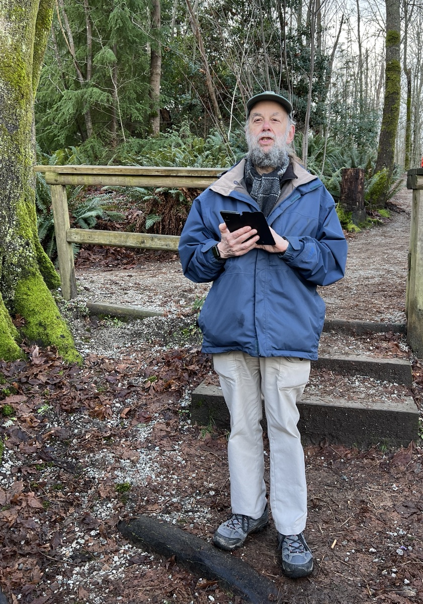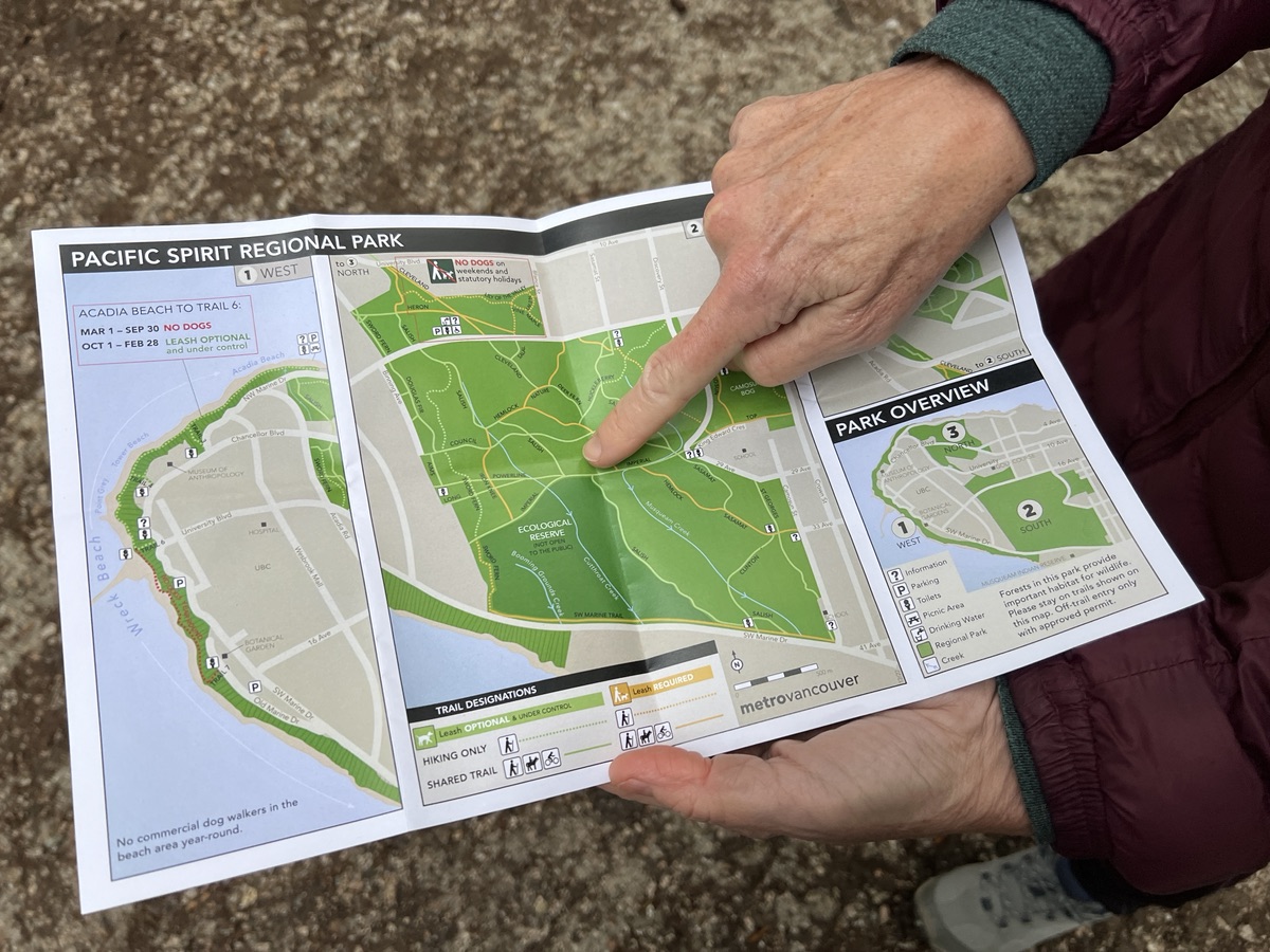 The meeting point was very familiar to those of us who’d spent time at the Vancouver Folk Music Festival at some point during its 46-year run, and the ghosts of Folk Festivals past were everywhere as we walked north from 4th Avenue towards the bridge for our starting selfie (above). The Festival’s main gate has always been at that south-east corner of the park; it was the starting point for each morning’s legendary “Birkenstock 500 Blanket Run” towards the Festival’s Main Stage; and Stage 3 was always in that grove of trees to our left. Post-selfie, Folk Fest regulars tried to visualize where they’d place their blankets for Folk Fest 2024, upcoming in mid-July: we imagined ourselves in warmer weather on our blankets somewhere in front of Main Stage, with our backs towards the glorious mountains of Vancouver’s North Shore and stars twinkling overhead. In the meantime, though, we had a walk to walk, a loop to Loop.