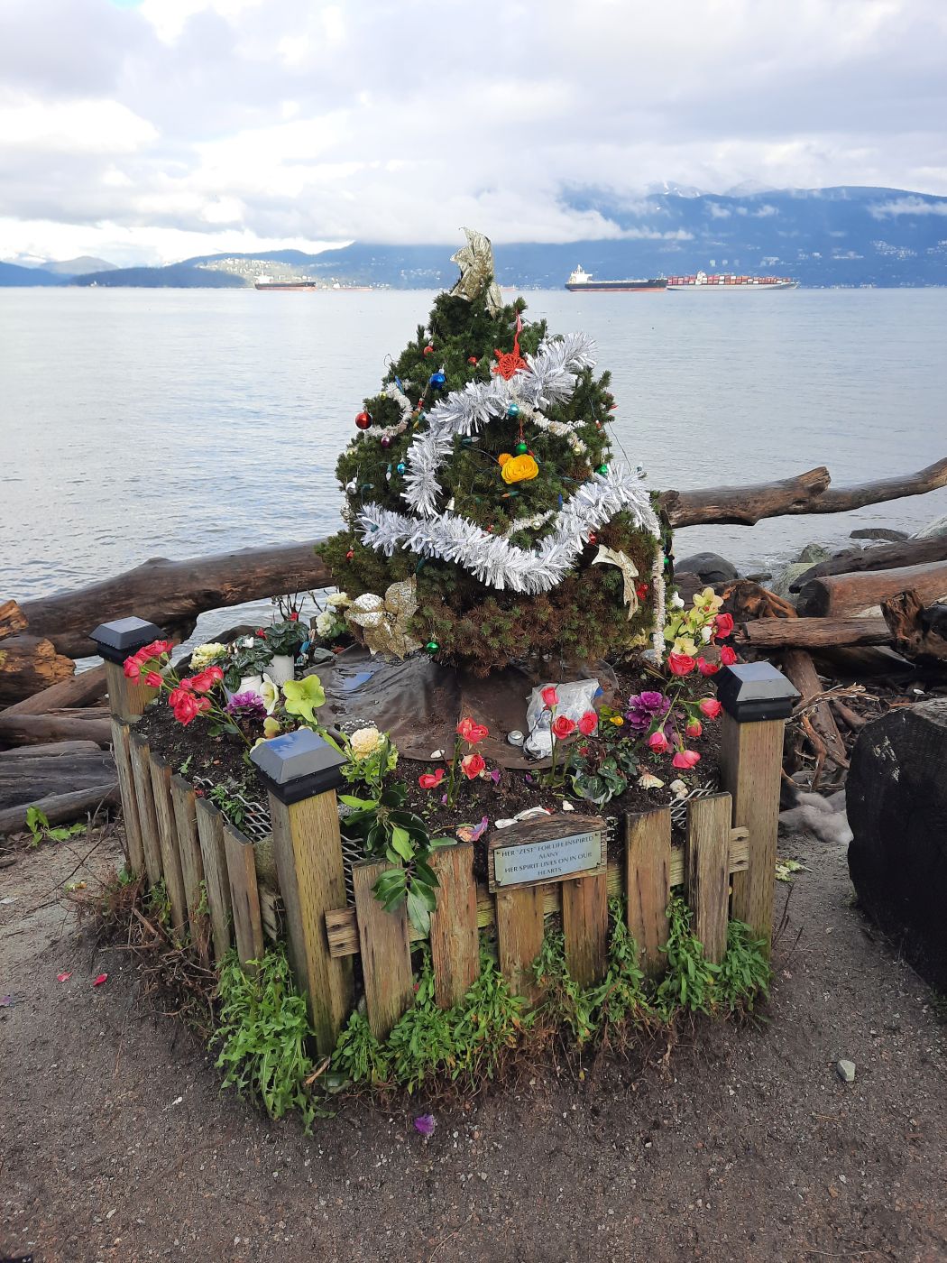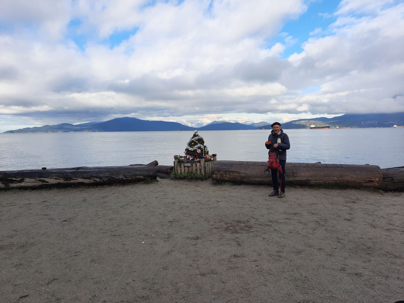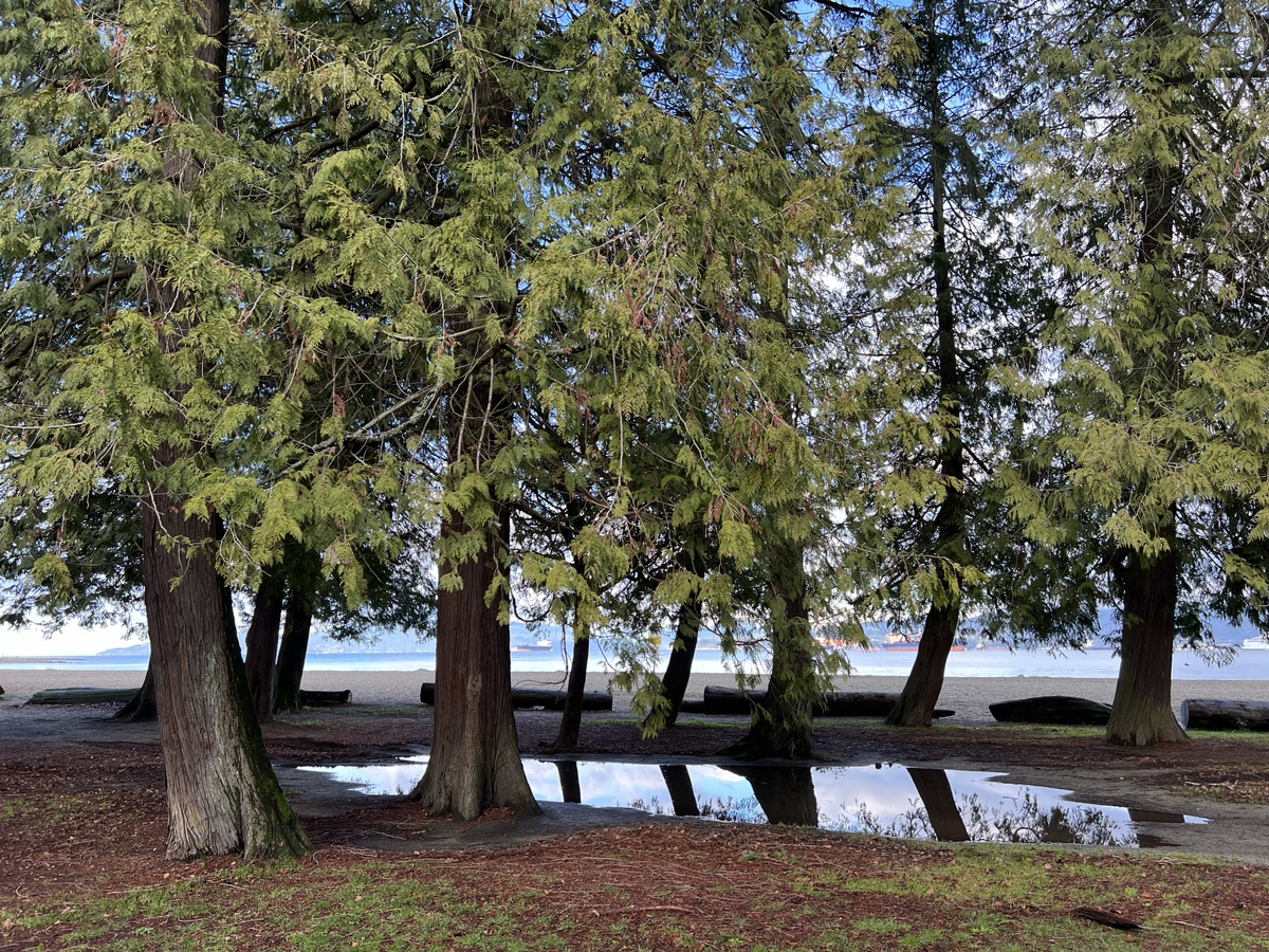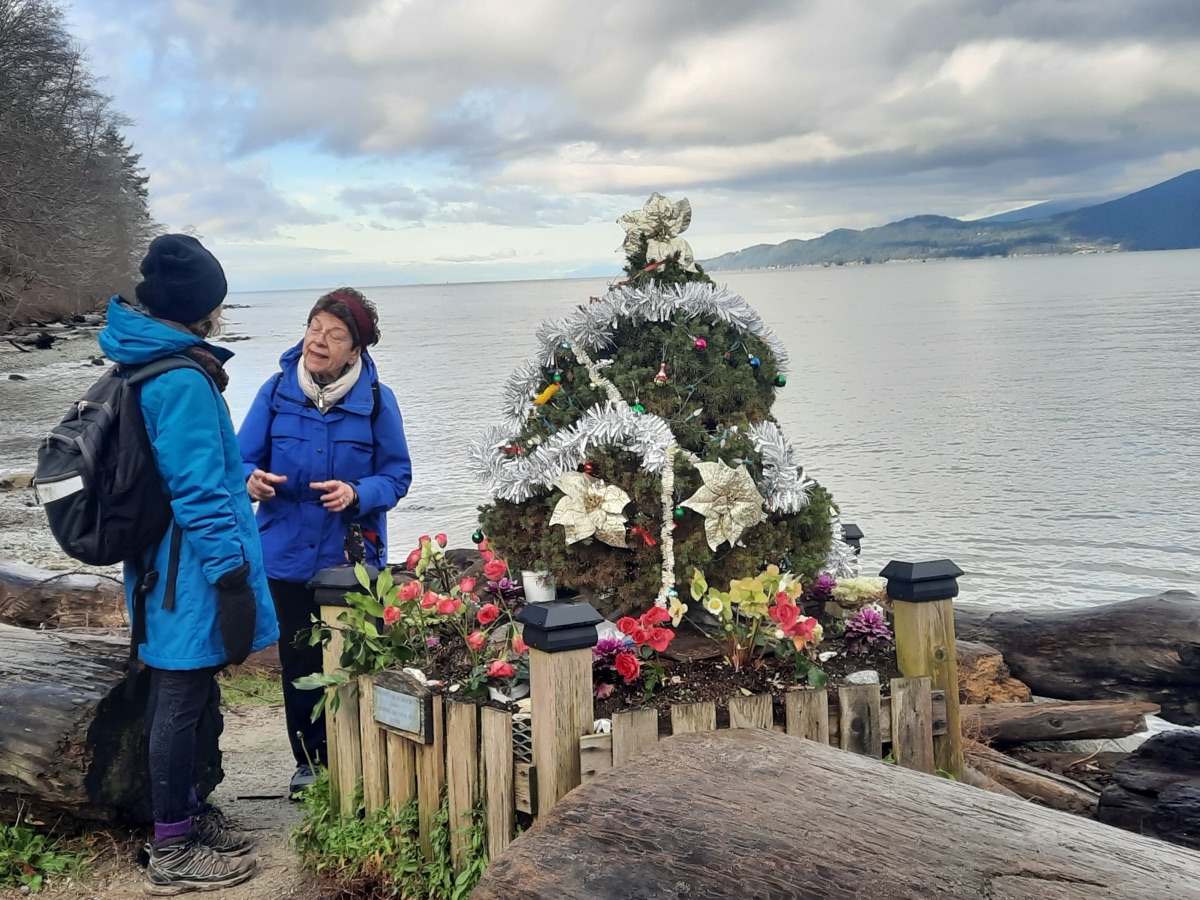 The meeting point was very familiar to those of us who’d spent time at the Vancouver Folk Music Festival at some point during its 46-year run, and the ghosts of Folk Festivals past were everywhere as we walked north from 4th Avenue towards the bridge for our starting selfie (above). The Festival’s main gate has always been at that south-east corner of the park; it was the starting point for each morning’s legendary “Birkenstock 500 Blanket Run” towards the Festival’s Main Stage; and Stage 3 was always in that grove of trees to our left. Post-selfie, Folk Fest regulars tried to visualize where they’d place their blankets for Folk Fest 2024, upcoming in mid-July: we imagined ourselves in warmer weather on our blankets somewhere in front of Main Stage, with our backs towards the glorious mountains of Vancouver’s North Shore and stars twinkling overhead. In the meantime, though, we had a walk to walk, a loop to Loop.