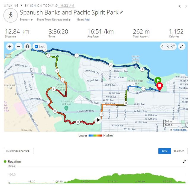 The trails of Pacific Spirit Park eventually released us at the corner of 12th Avenue and Blanca, where we turned north to head back towards our starting point, which we reached by following a random path through a West Point Grey neighbourhood that holds memories for several of us (one Looper’s first apartment was on West 11th between Sasamat and Trimble; another Looper’s first wedding took place at St. Helen’s Anglican Church; and two Loopers first lived together on the main floor of a small house on West 12th near Blanca. Please contact the author of this post to have your West Point Grey memories added to the list).