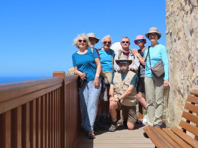 After visiting the caves, we found some more of the cart tracks and then continued a short distance before retracing our steps back to our starting point. We walked up the road, past a large radar dome, to a cliffside restaurant where we enjoyed afters.