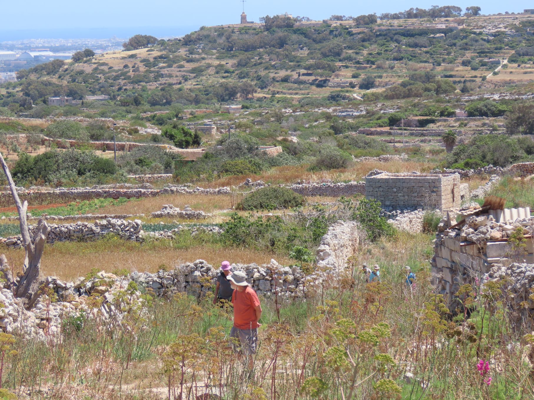 Nearby was a large depression in which there was a complex of caves called Ghar il Kbir. The caves date back to prehistoric times but were apparently occupied until the early 1800s. We spent a bit of time exploring the caves. Some had several rooms, while others had rock walls that had been constructed by the occupants.