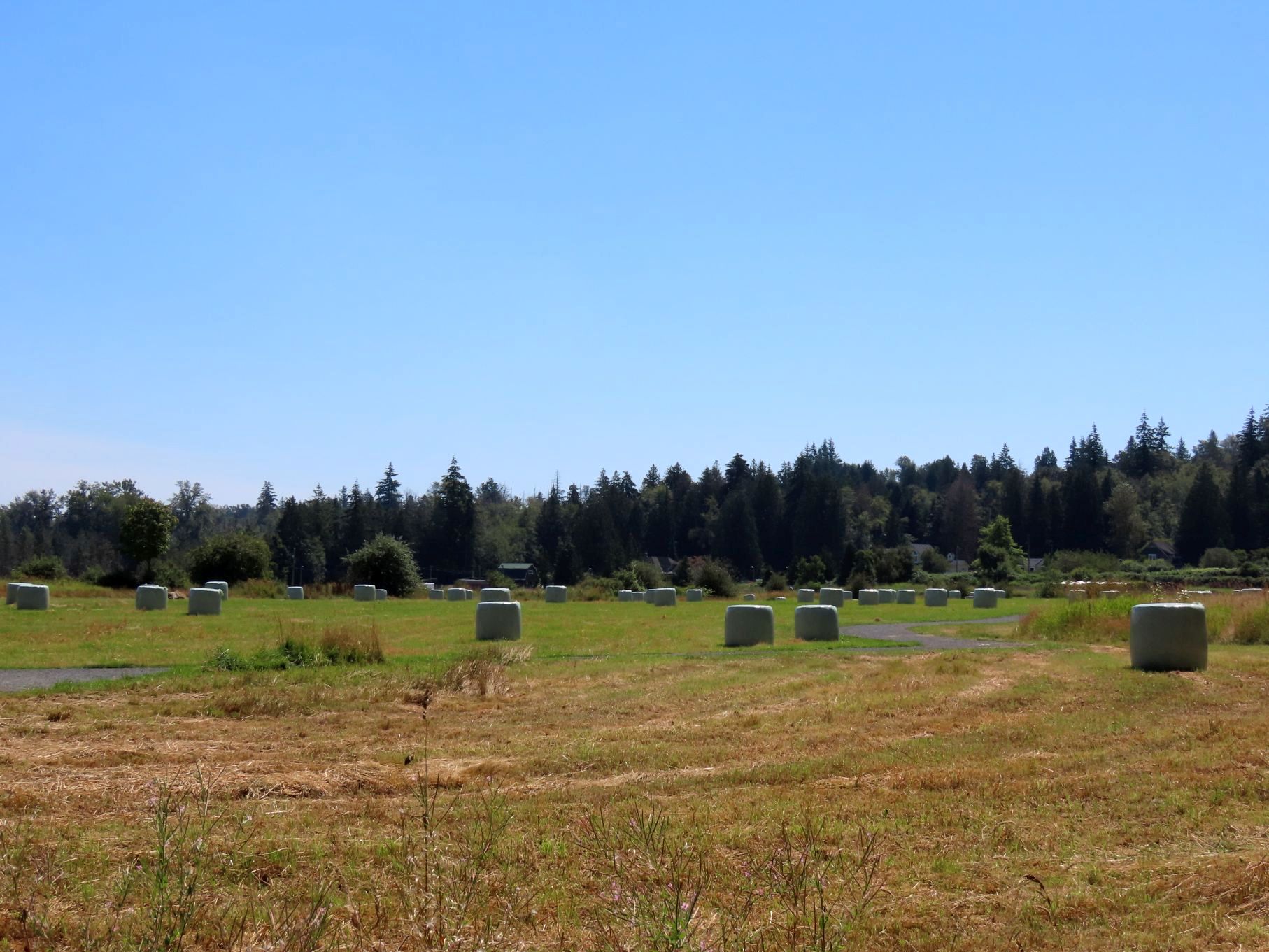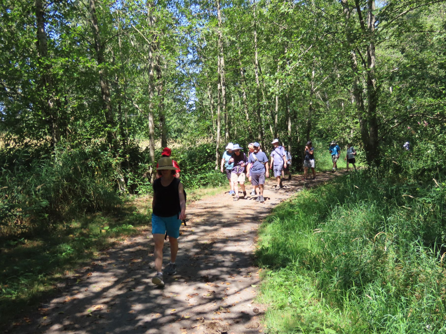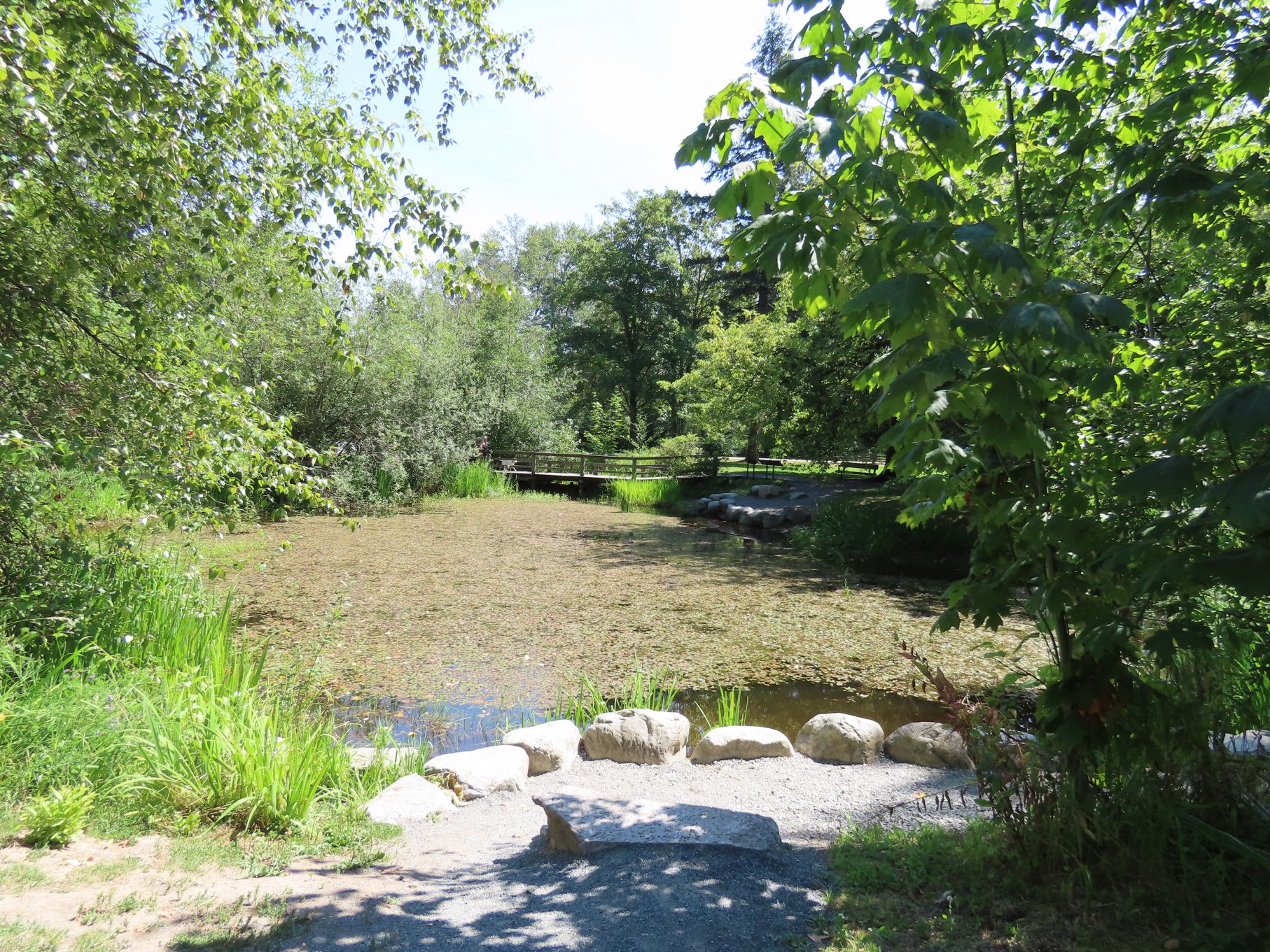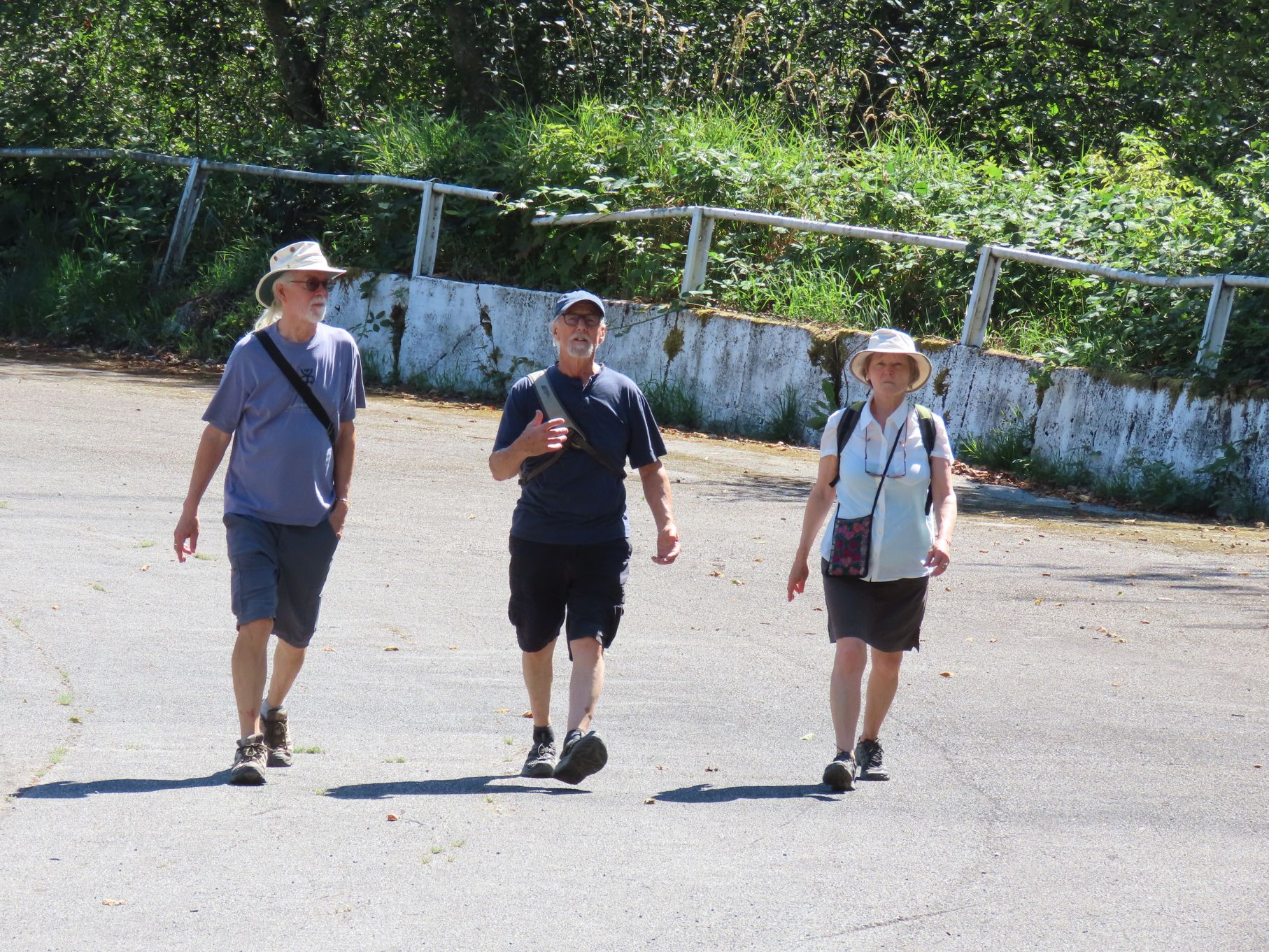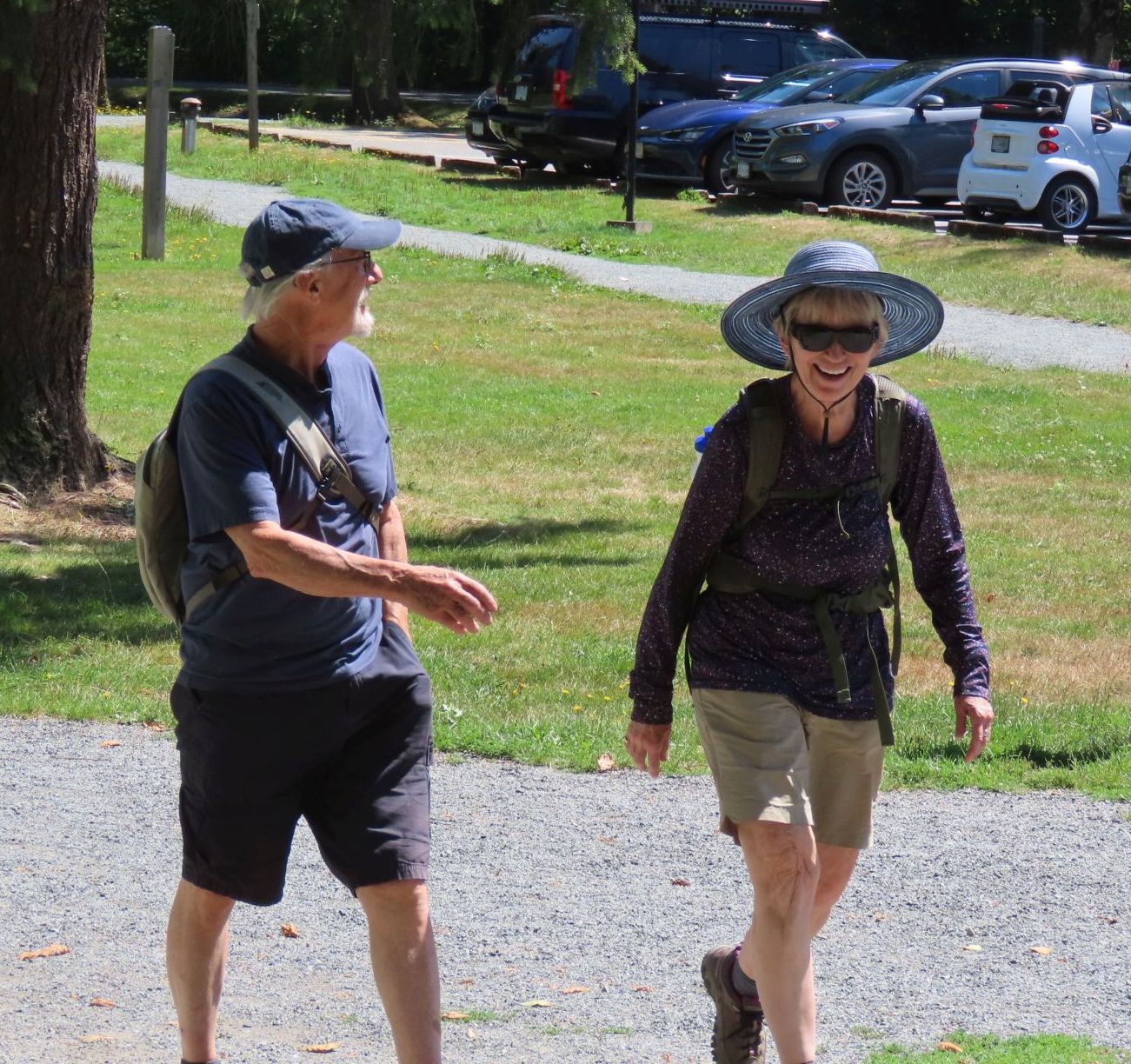The August walk was organized and led by Jon, who had selected the labyrinthine trails of the Campbell Valley Regional Park as our August destination. Two routes were on offer: an 11 km loop, and a 5.5 km loop, for those who preferred to loop in moderation. Since our traditional annual BBQ was to follow the walk, we’d first met up at the home of Ralph, Tina, and Maki in Walnut Grove, so that pot-luck contributions could be spared the blazing sun. From there we car-pooled to the Campbell Valley Regional Park, a 25 minute ride due south, which resulted in an actual start time of approximately 11:19.