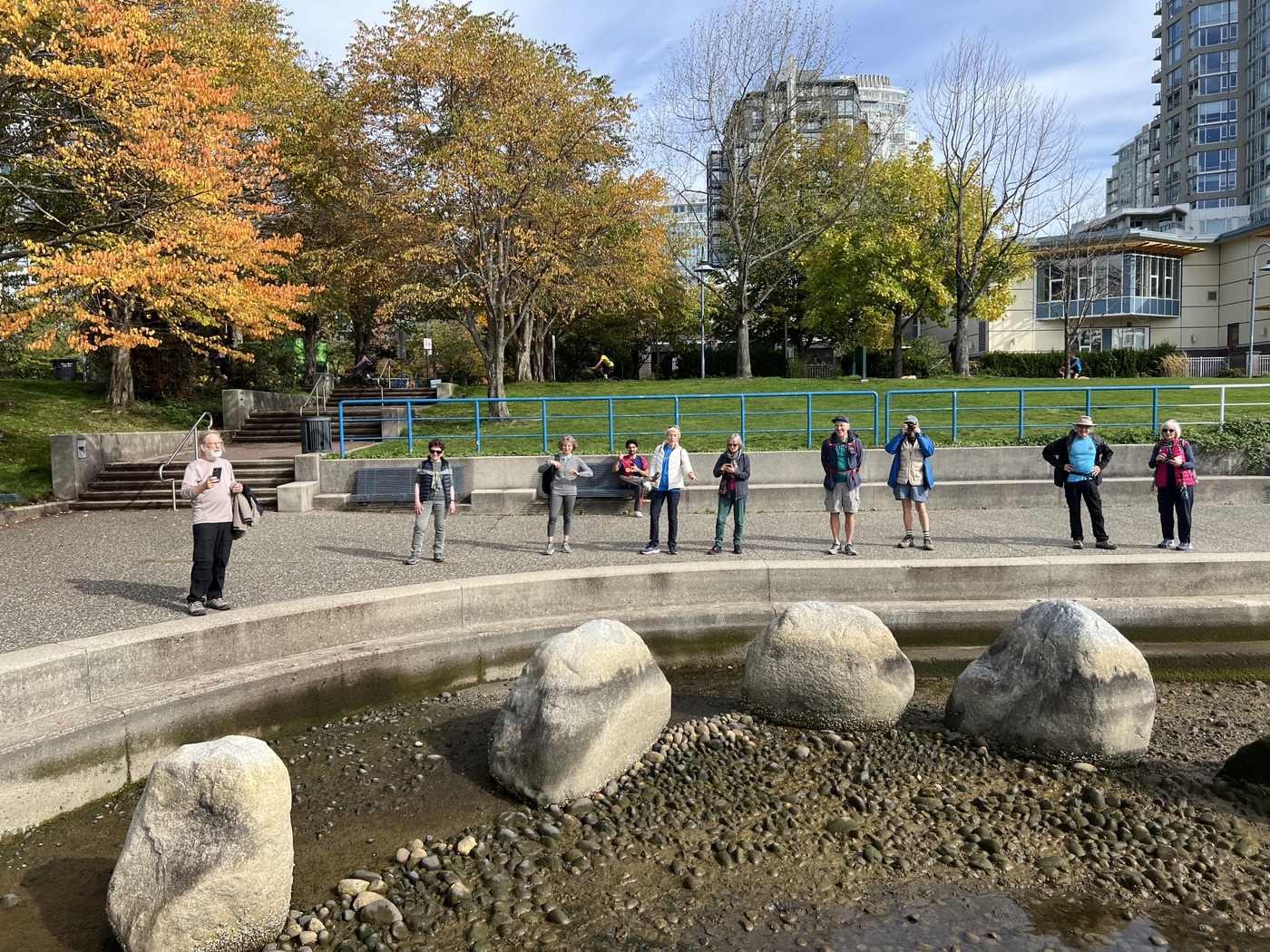 Twelve people assembled in North Vancouver at Semisch Park and 2nd Street East for something a little different: an urban walk taking in public art and a few other sights of interest. Public transit also featured on this occasion, as we travelled to the Vancouver side and back via the SeaBus and SkyTrain.