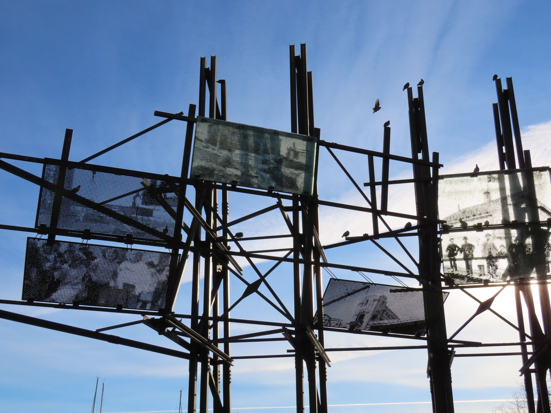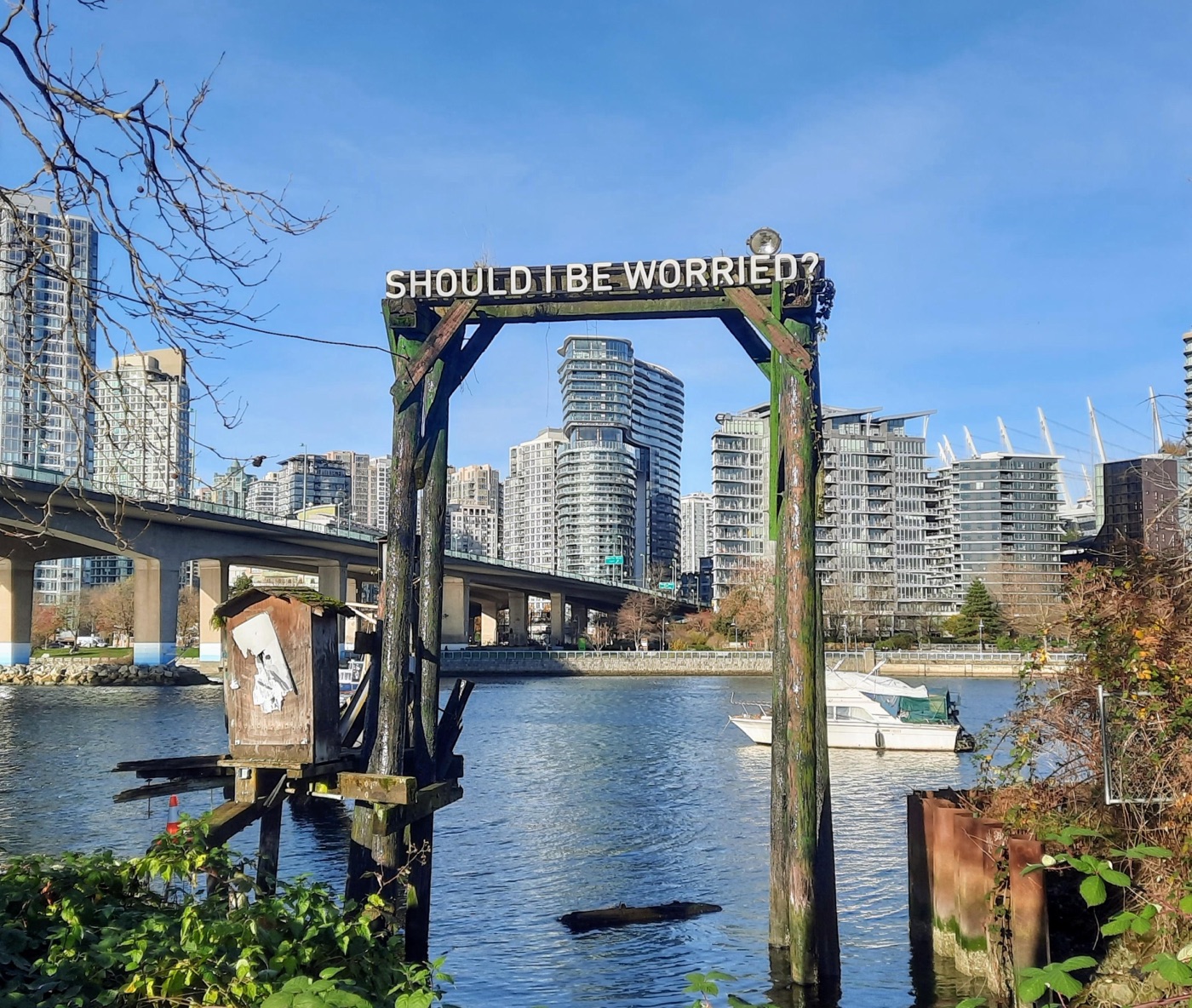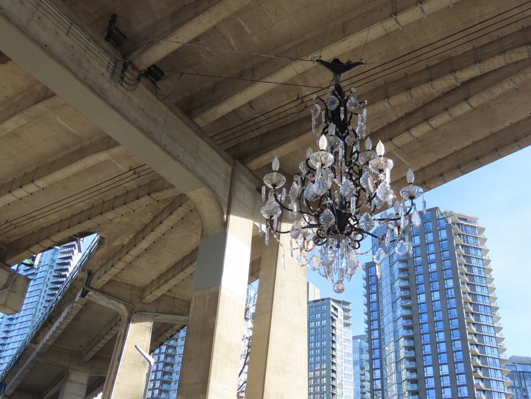 We continued our clockwise walk along the False Creek seawall, passing beneath the Cambie Bridge, the Granville Bridge (resisting the temptations of Granville Island, including Lee’s Donuts, which has been “serving handmade, quality, classic donuts since 1979”) and the Burrard Bridge, where we contemplated the mysterious stones and plaques which constitute the Cultural Harmony Grove.