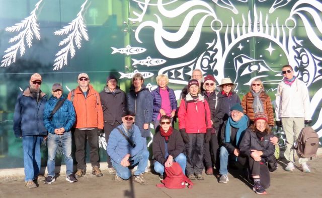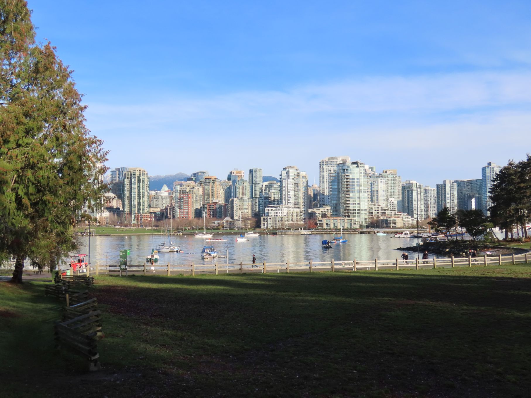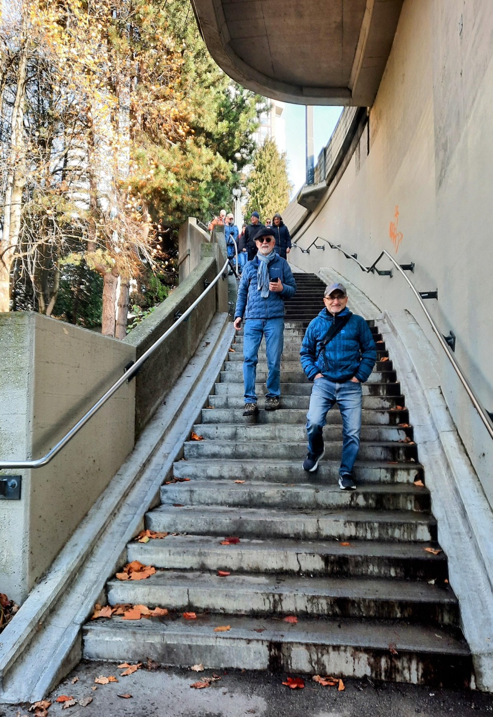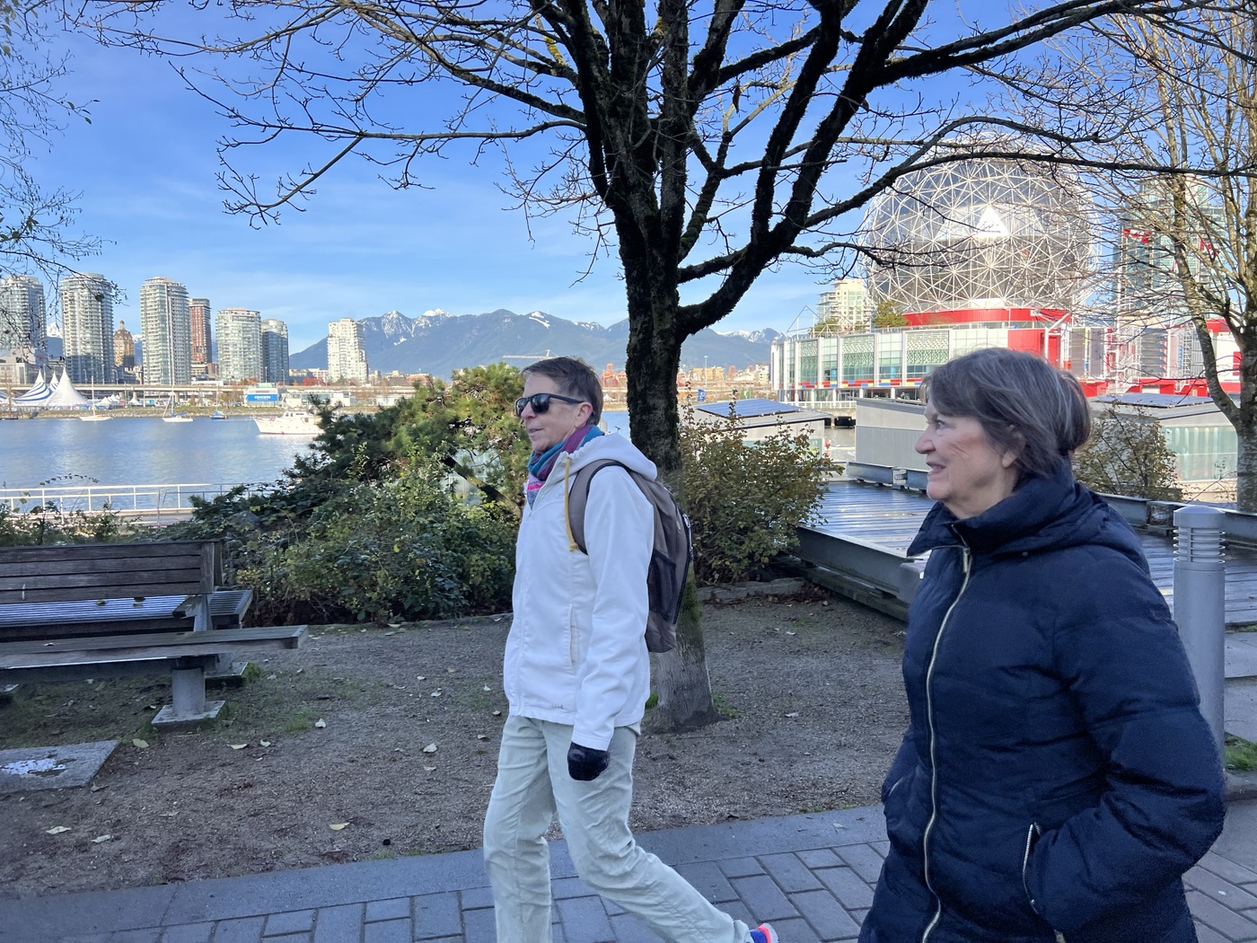 It was a perfect day for our final walk of 2024, and sixteen Loopers gathered just outside the Olympic Village Skytrain station at Cambie and West 2nd Ave at 10:30 am. Dave was the leader of this month’s walk, and the route he’d selected took us clockwise around False Creek.