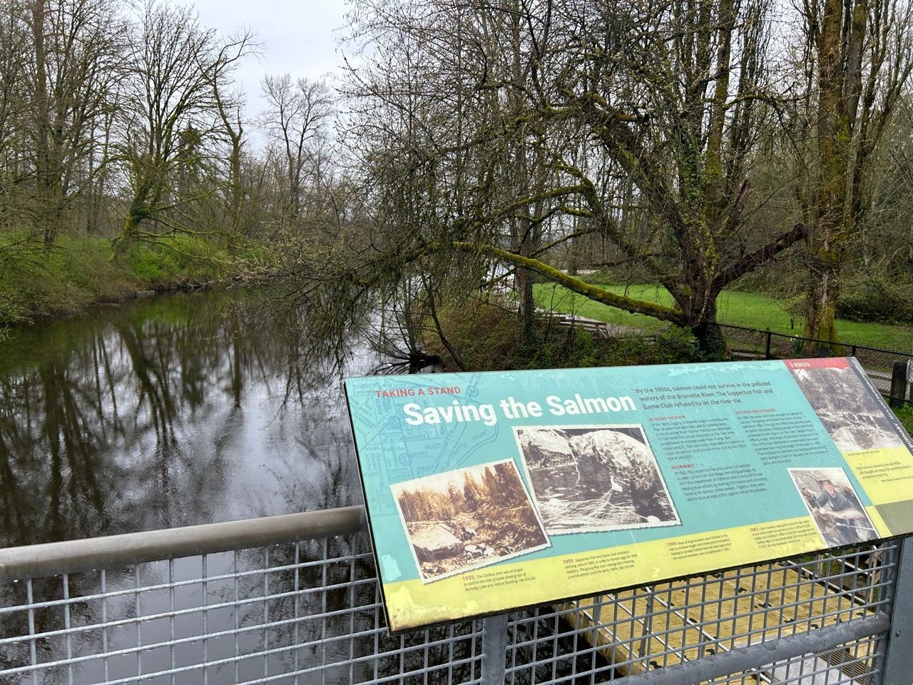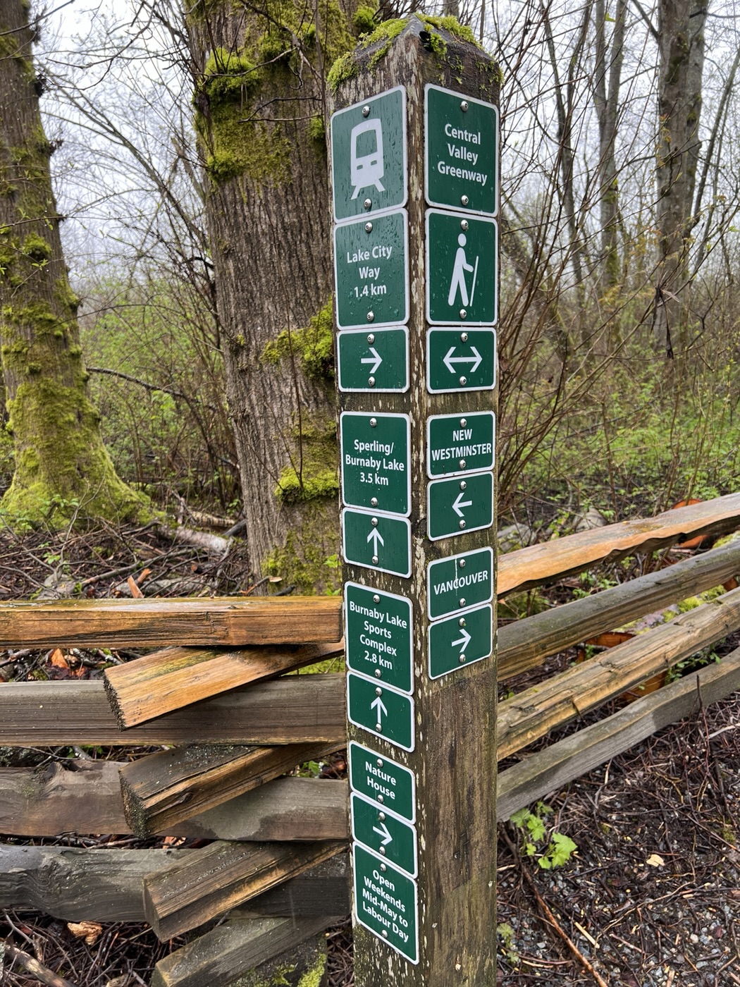 Undaunted (a favourite adjective in Looper blogs), we posed for the starting photo in front of the Burnaby Lake Regional Nature Park sign and set off northeastwards to cross the Brunette River via the Cariboo Dam – which controls the level of the lake. From here we turned sharp left to start our long westward trek, the first leg of our counterclockwise loop, which is on the north side of the lake, from the Brunette River on the east to Still Creek on the west.